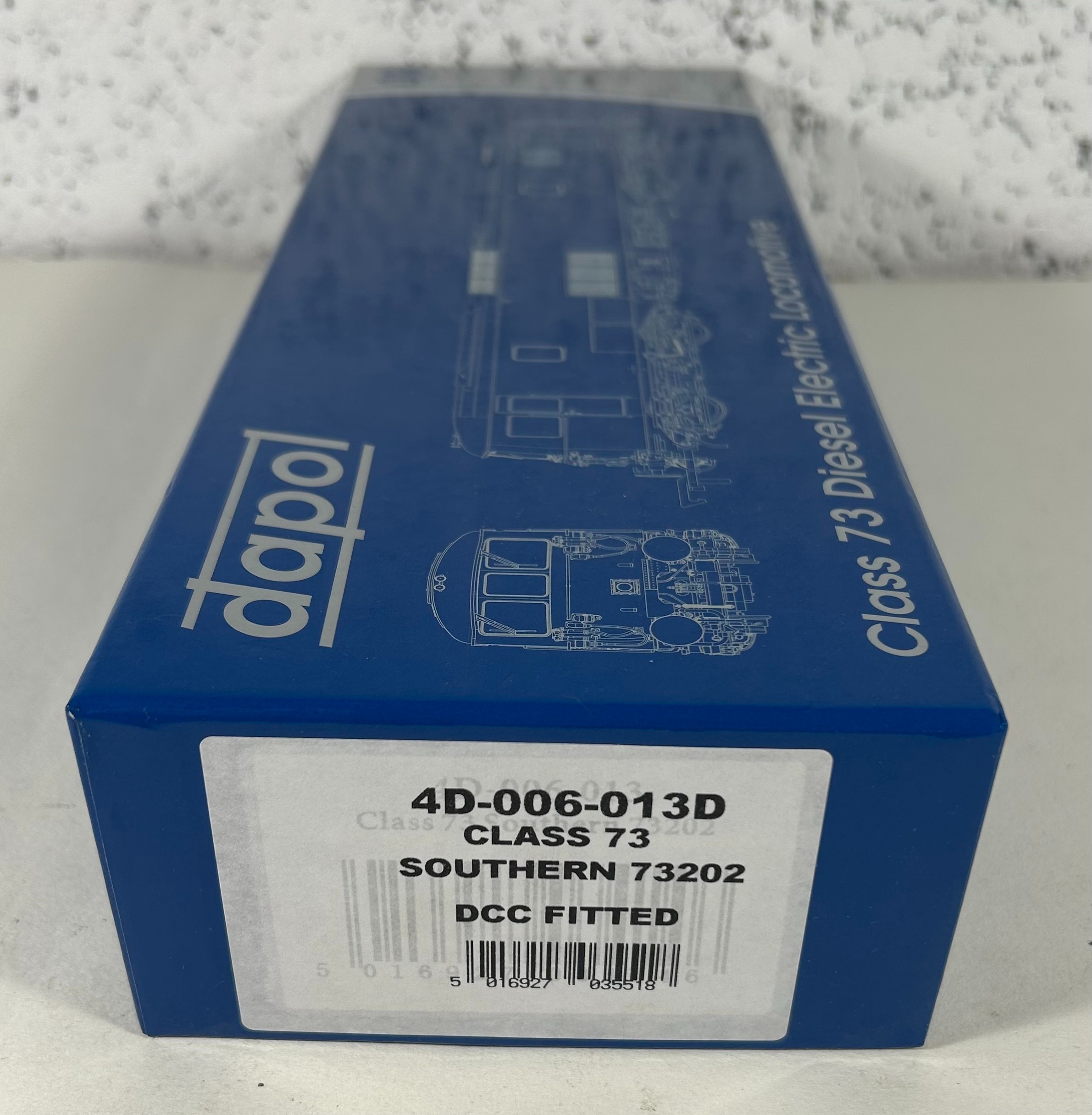 Dapol OO Railway Diesel Electric Locomotive A Class 73 Bo-Bo 73202 (4D-006-013D), 'Gatwick Express'. In Southern Railway white/green/red livery. Boxed, with packing and paperwork. Contents Mint.