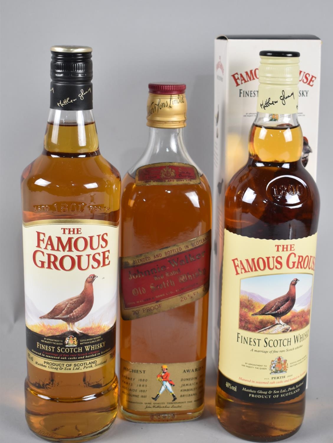 Two 70cl Bottles of Famous Grouse Blended Scotch Whisky and a Single Bottle Johnny Walker Red Label
