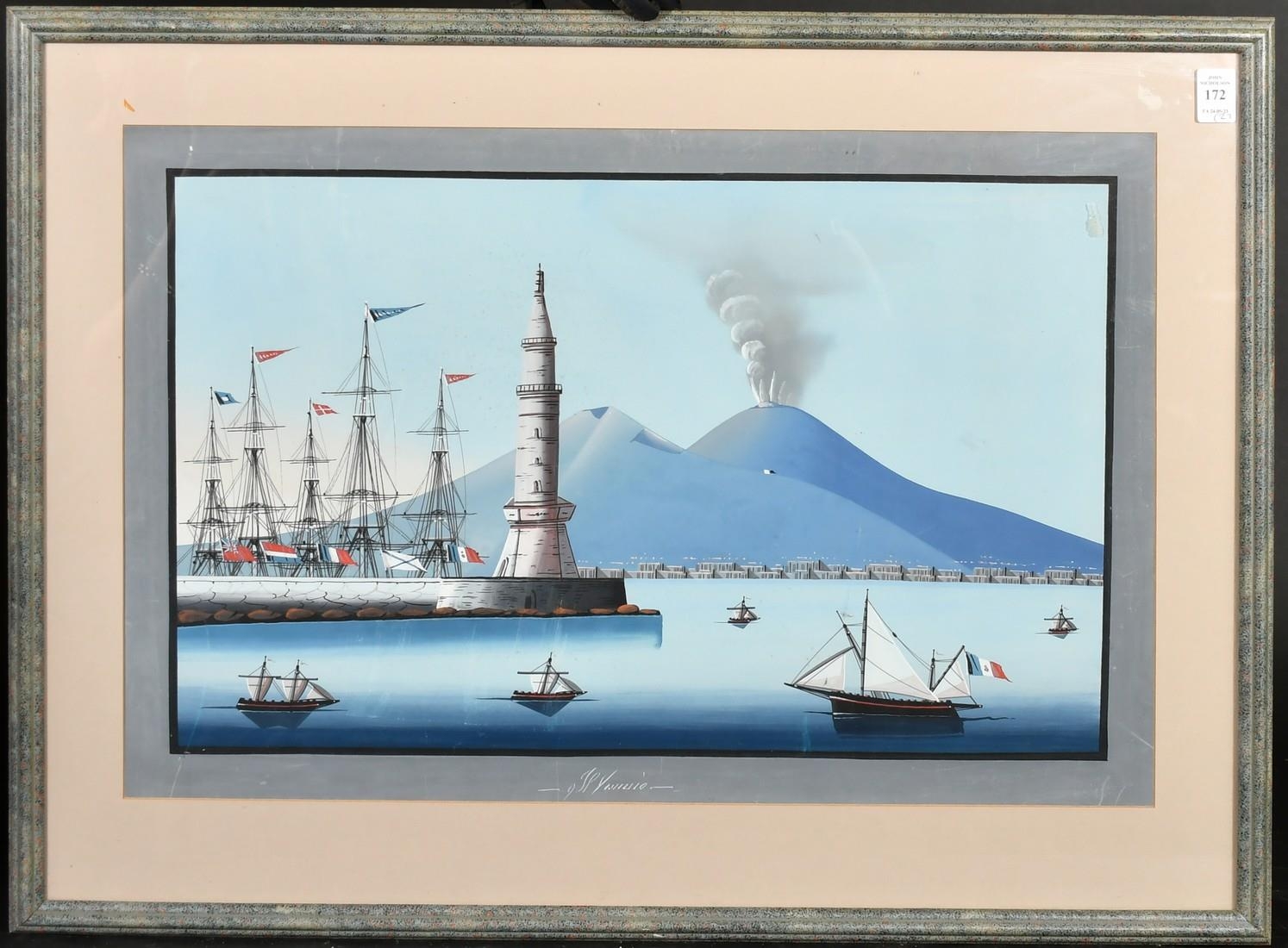 Neapolitan School, A pair, Vesuvius from the harbour, gouache, both inscribed, each 15.25" x 23.25", (38.5x59cm) (2).
