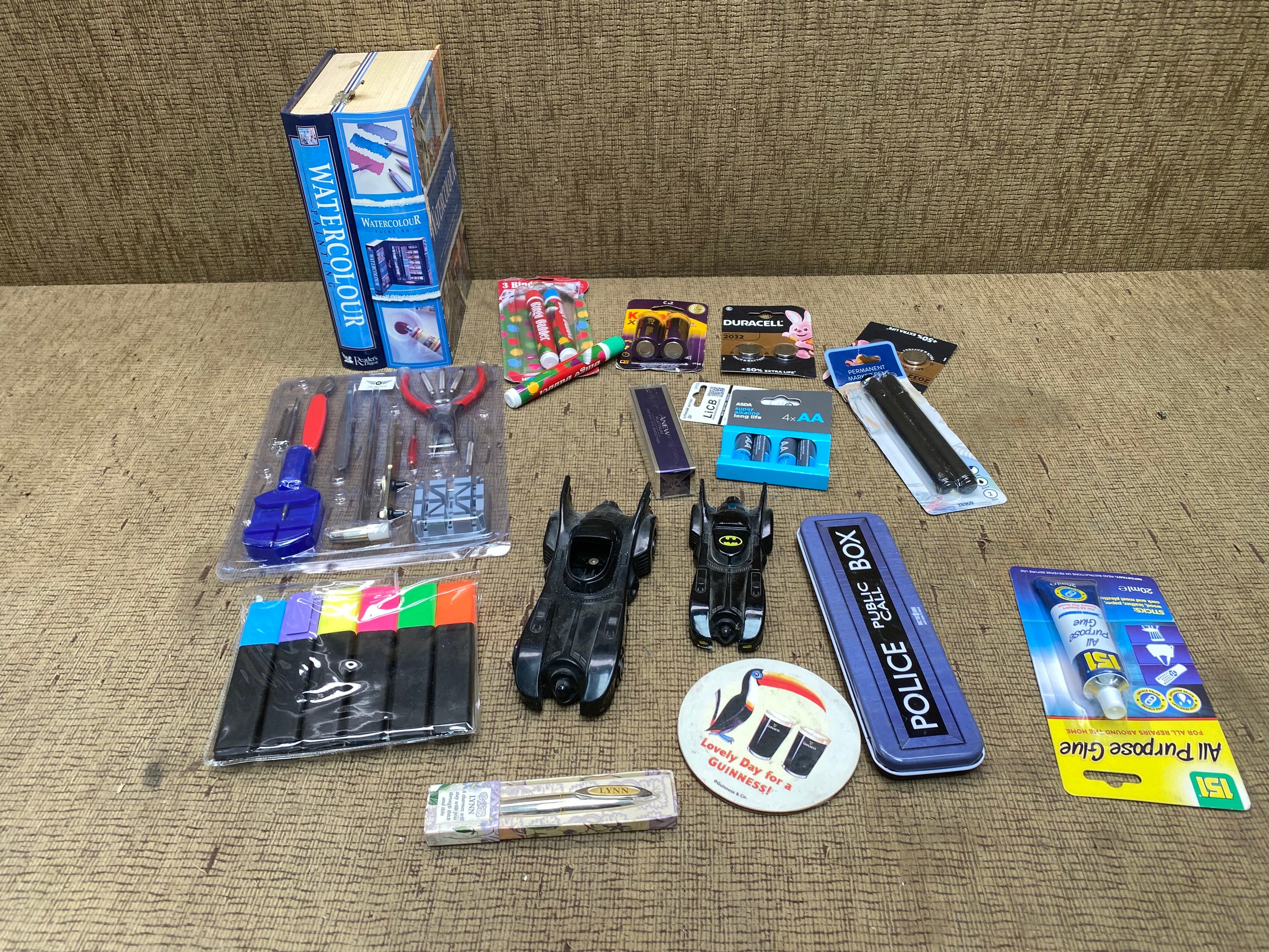 Mixed items including: Pens, Watercolour and.