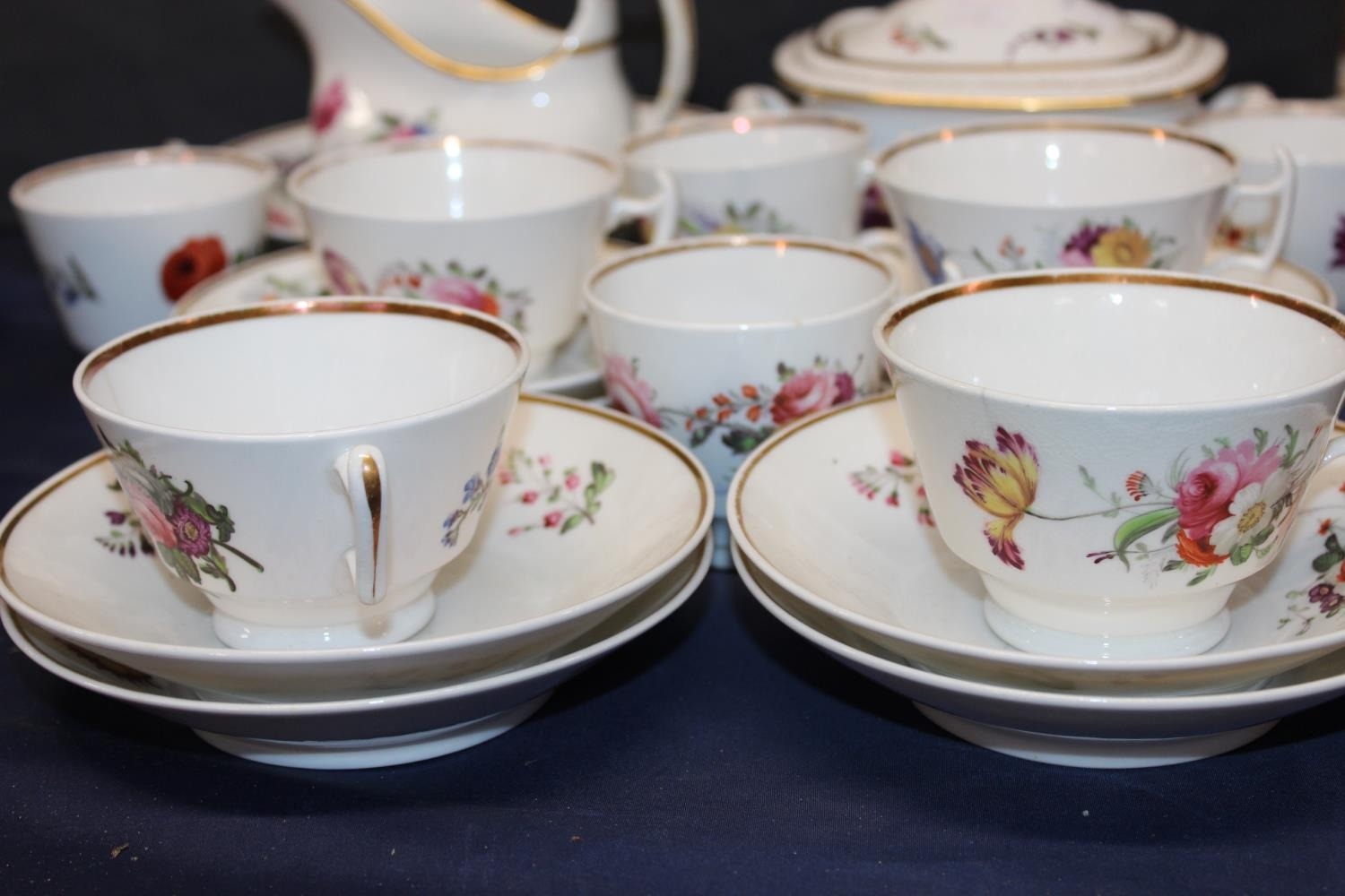 Antique floral and gilt decorated teaset.