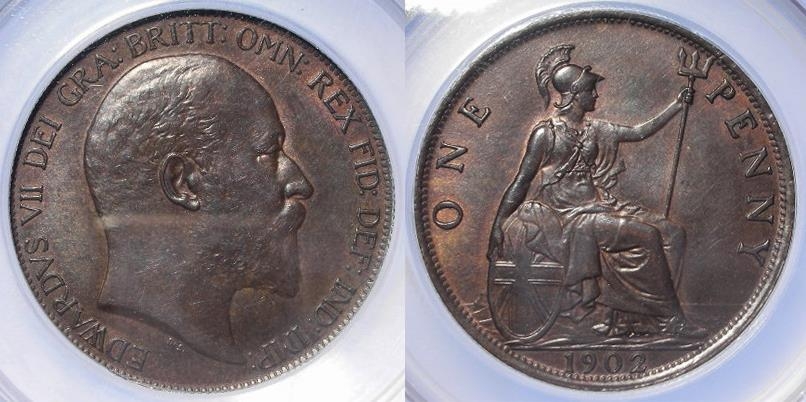 Penny 1902 low tide, Freeman 156, slabbed CGS (UK) 65, toned EF