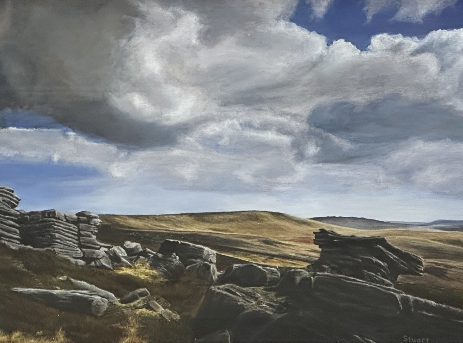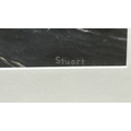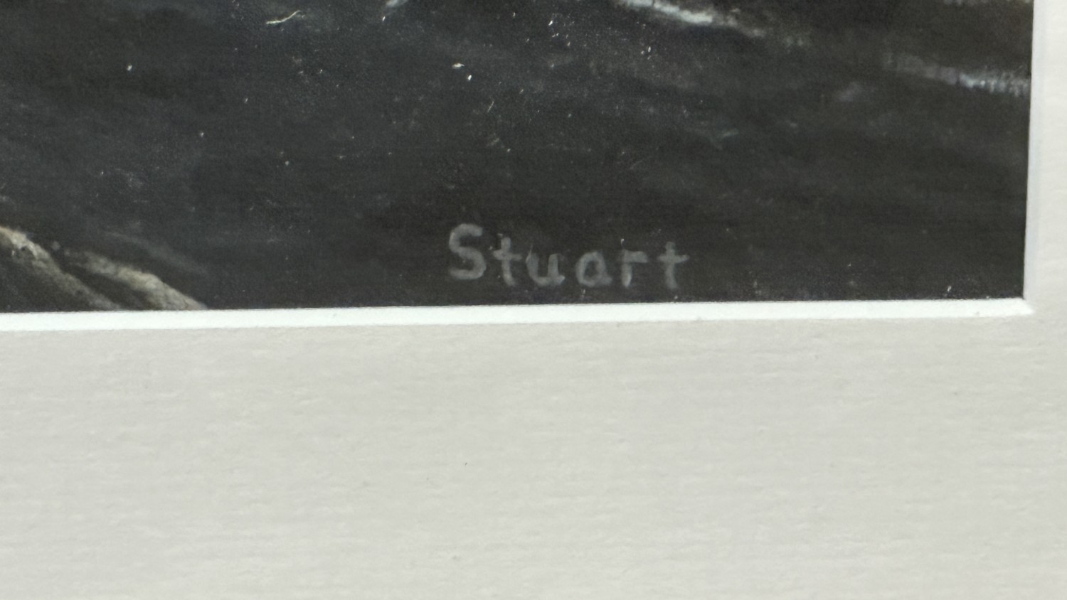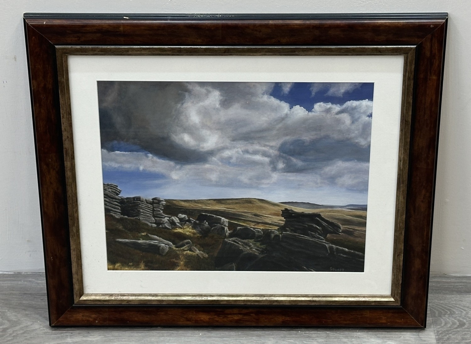 A framed oil painting of a landscape scene, signed lower right Stuart - approx. 56cm high x 66cm wide