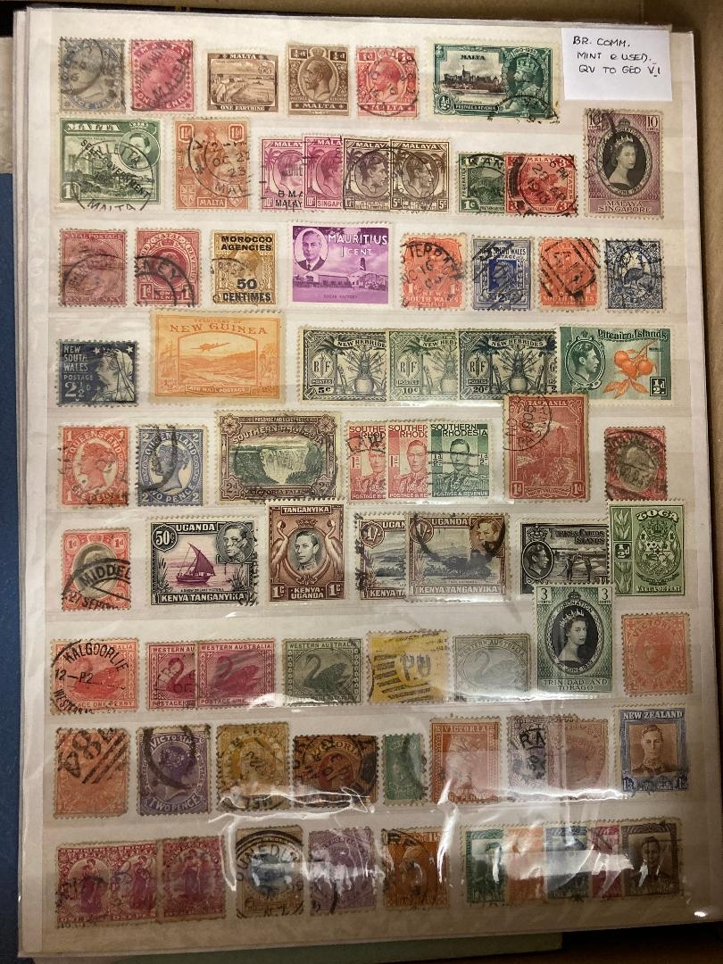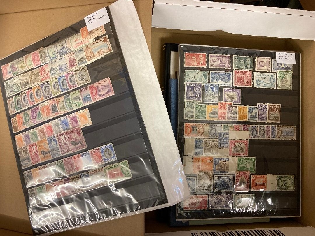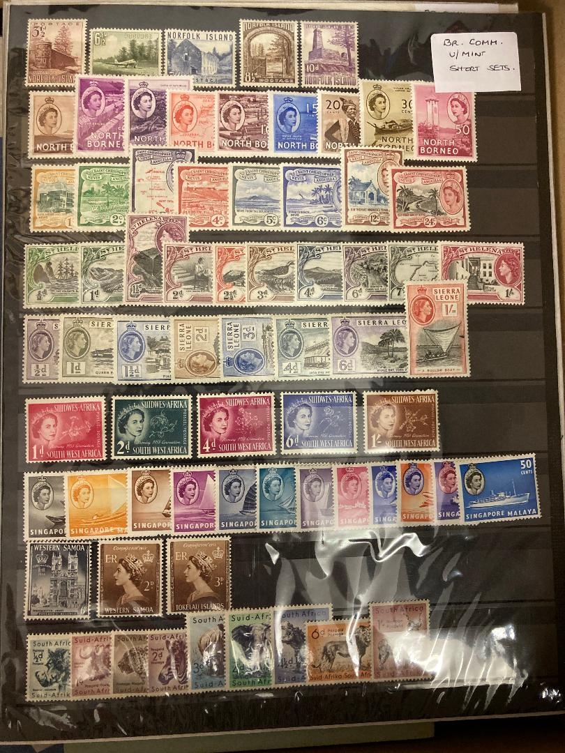 STAMPS BRITISH COMMONWEALTH, various mint & used on stockpages, in two stockbooks. Mostly U/M QEII with a number of short sets, also 1953 Coronation omnibus series etc. Some useful material.