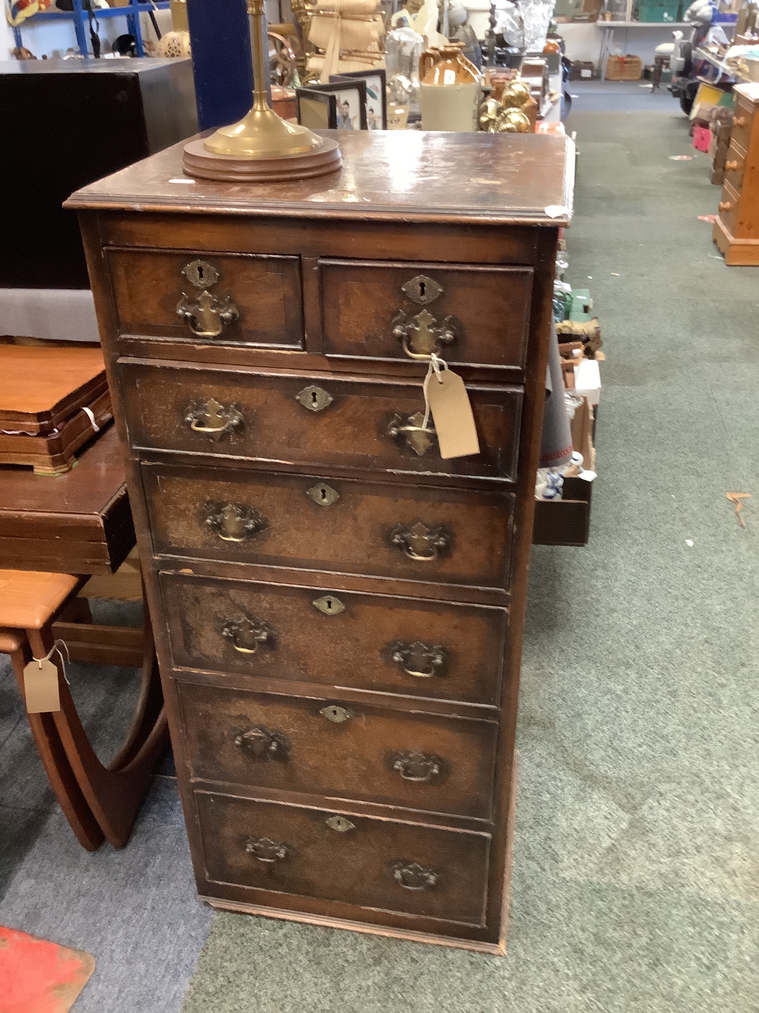 A burr walnut crossbanded chest of two small and five small drawers a/f