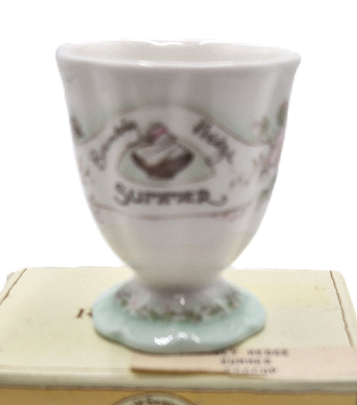 ROYAL DOULTON CHINA EGG CUP "SUMMER" FROM THE BRAMBLY HEDGE SERIES-JILL BARKLEM'S SUMMER COLLECTION (Made In England 1990) (Original Box)
