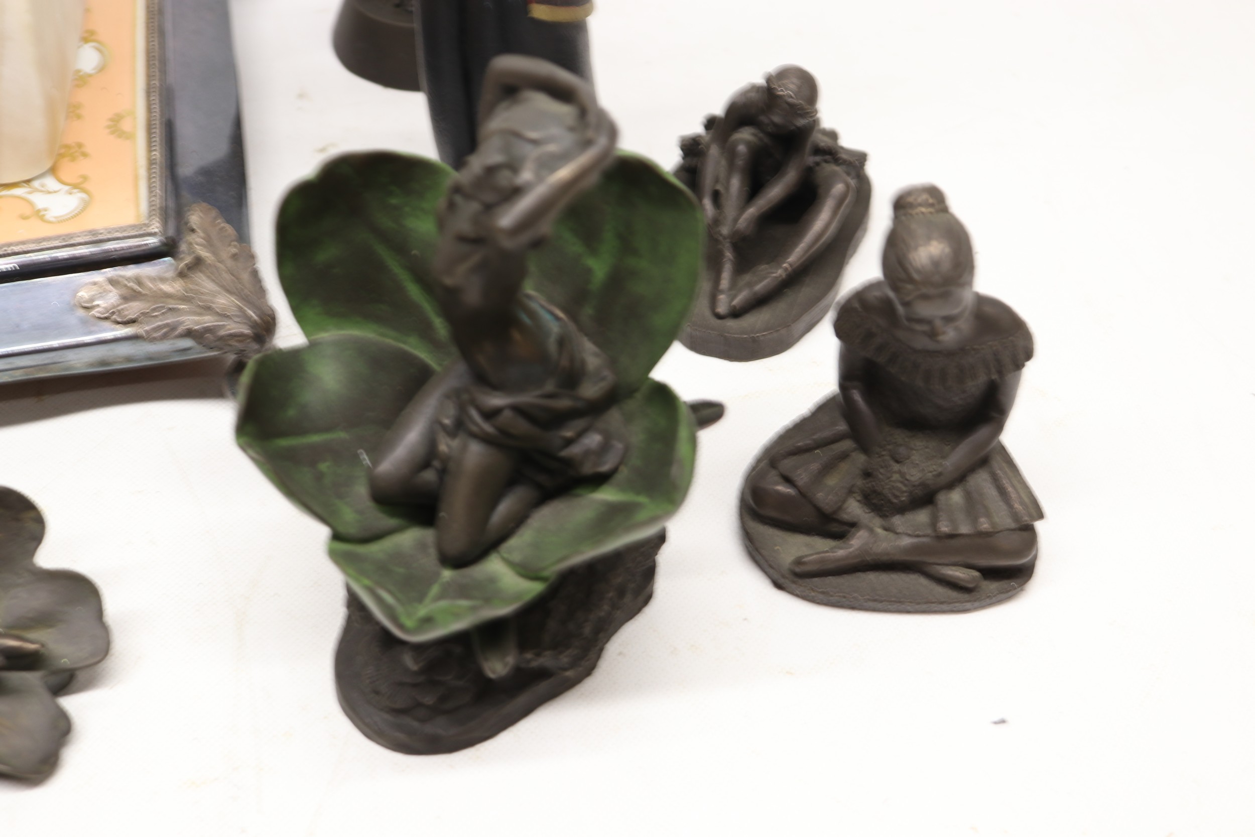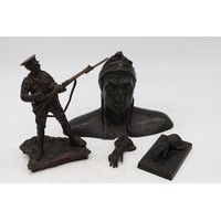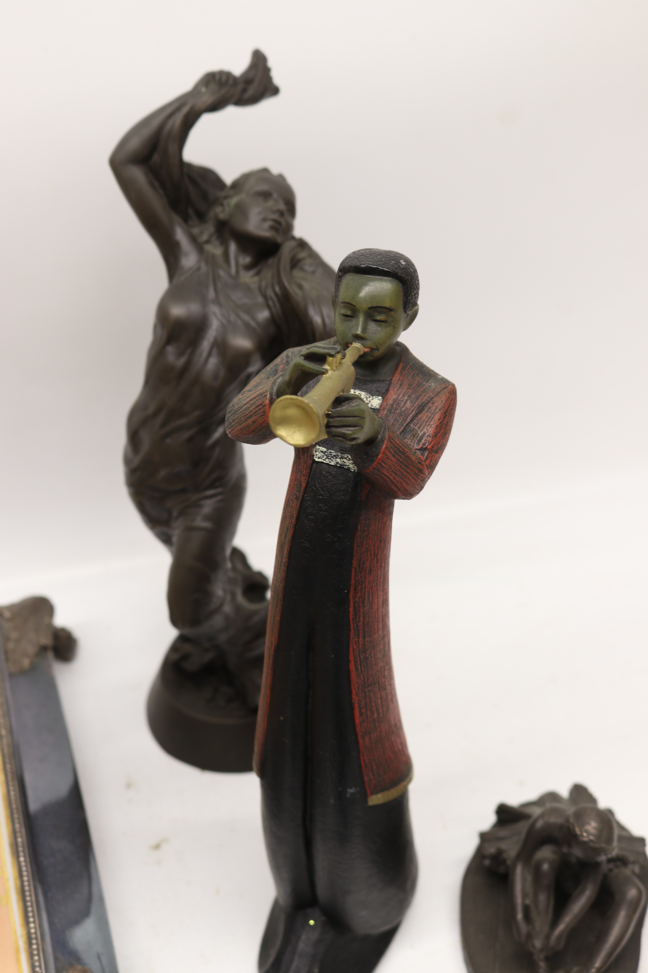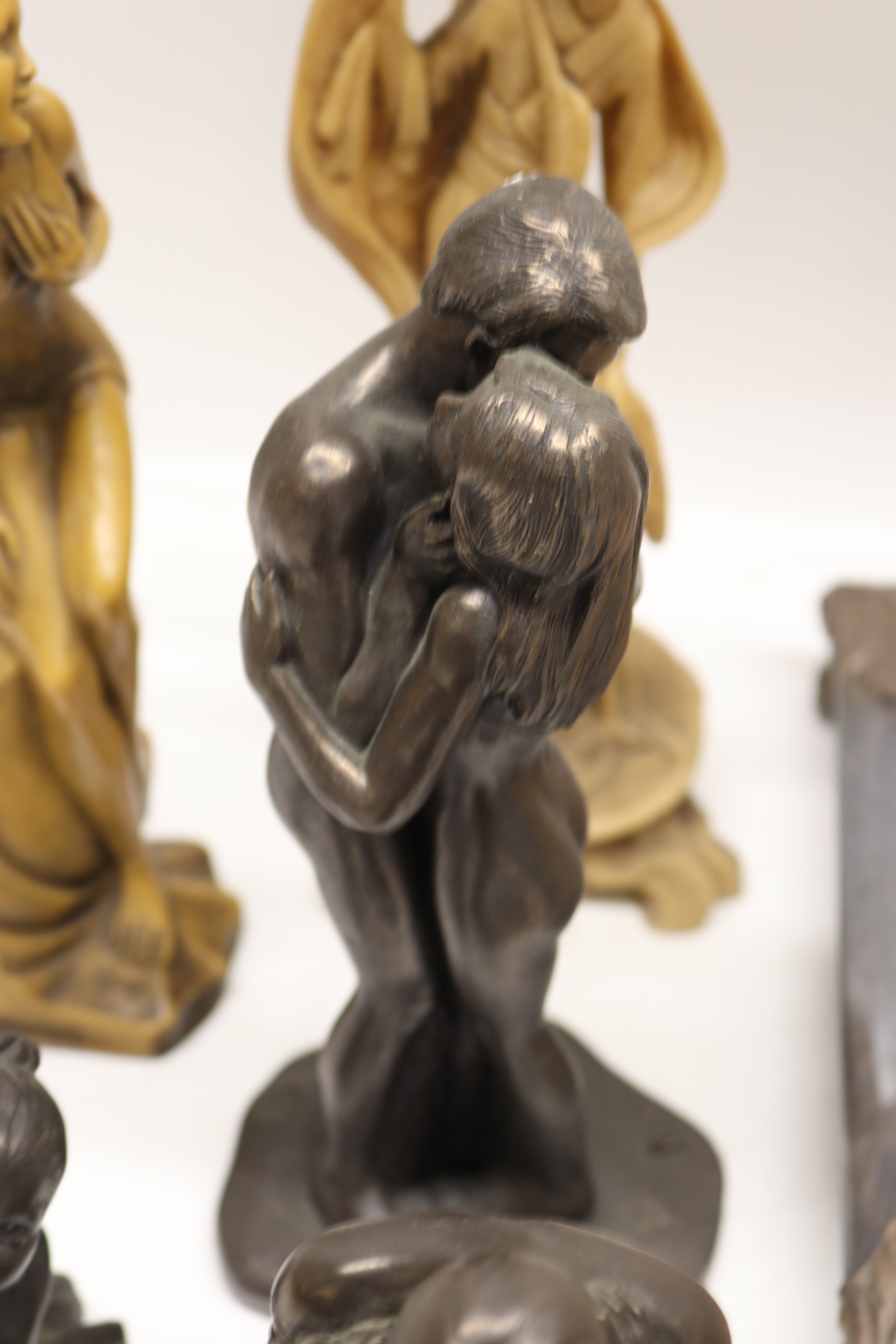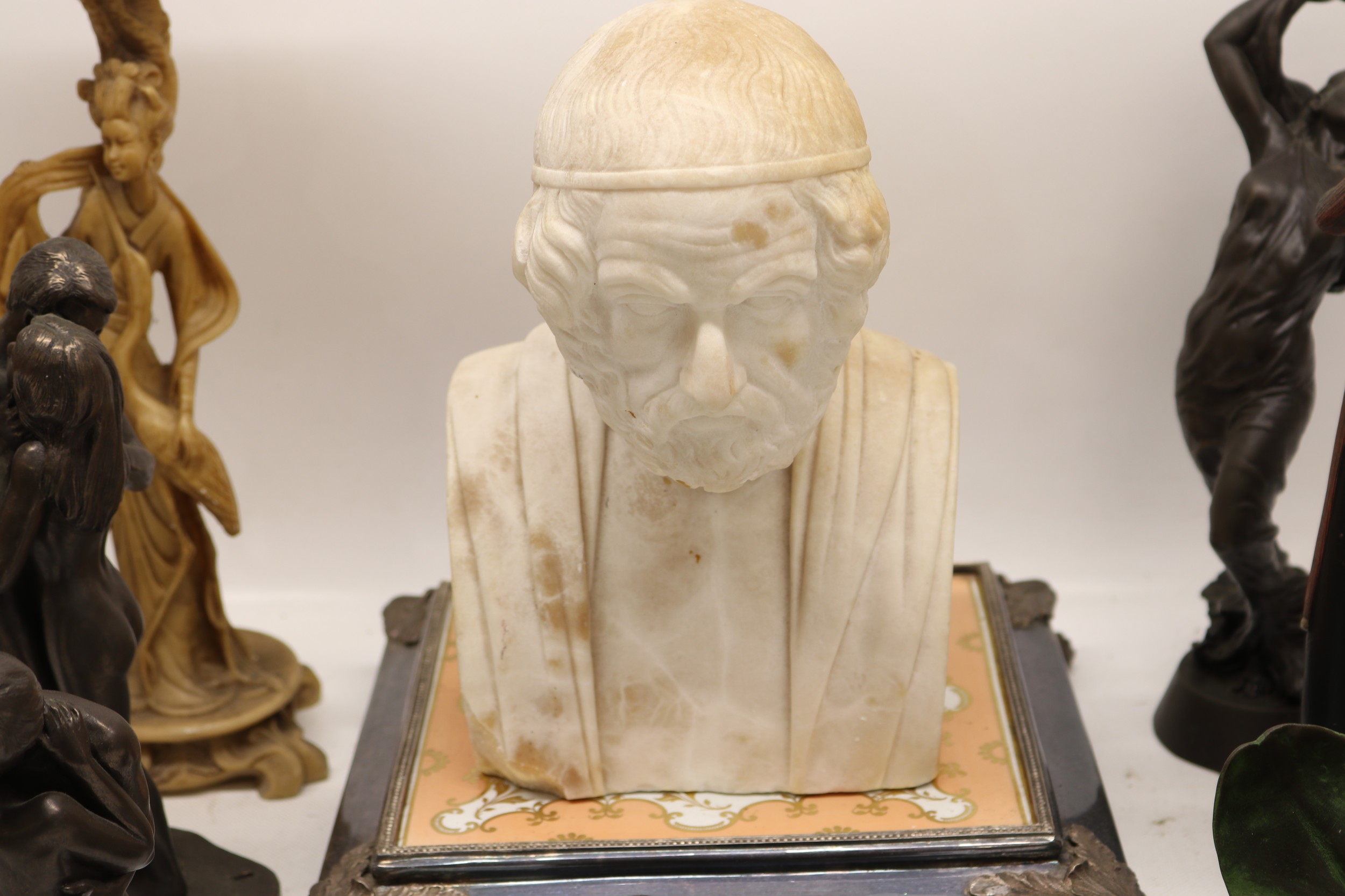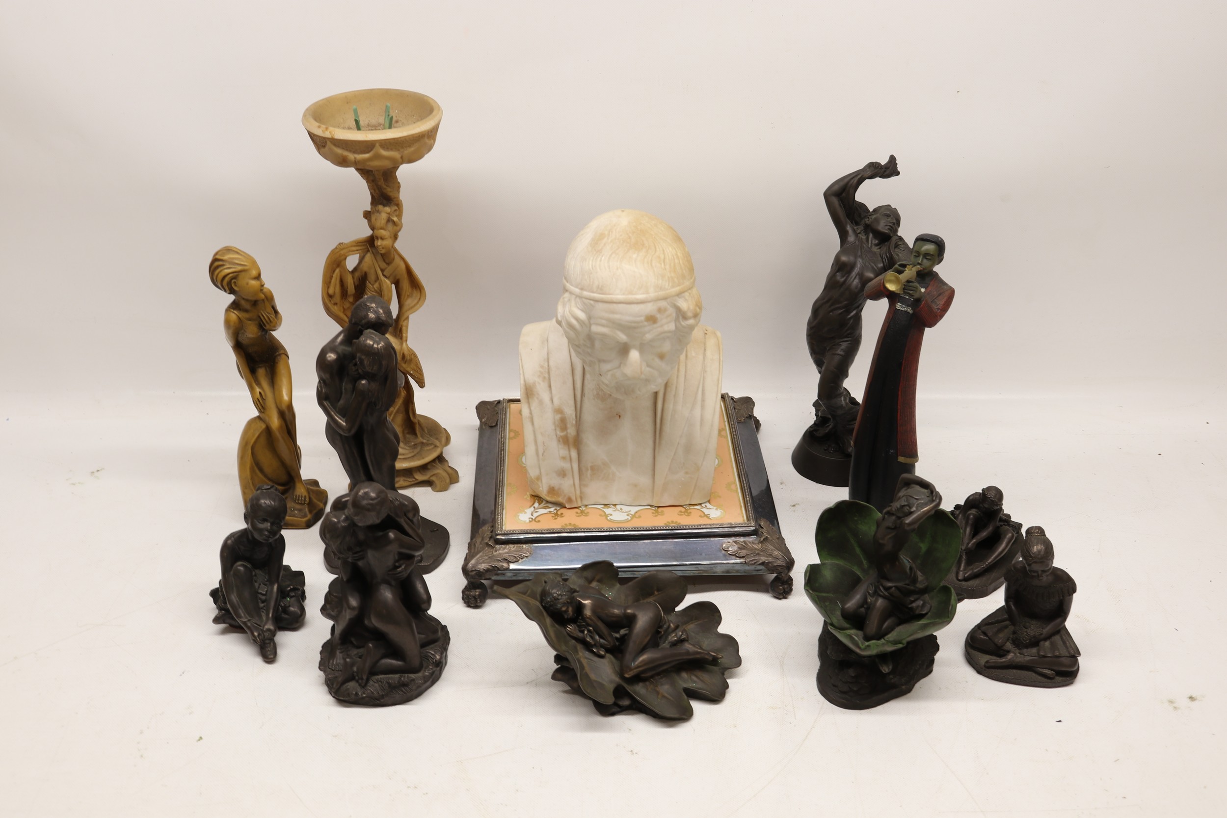 Collection of bronzed figures, busts, etc., incl. plaster bust of Homer, A/F