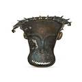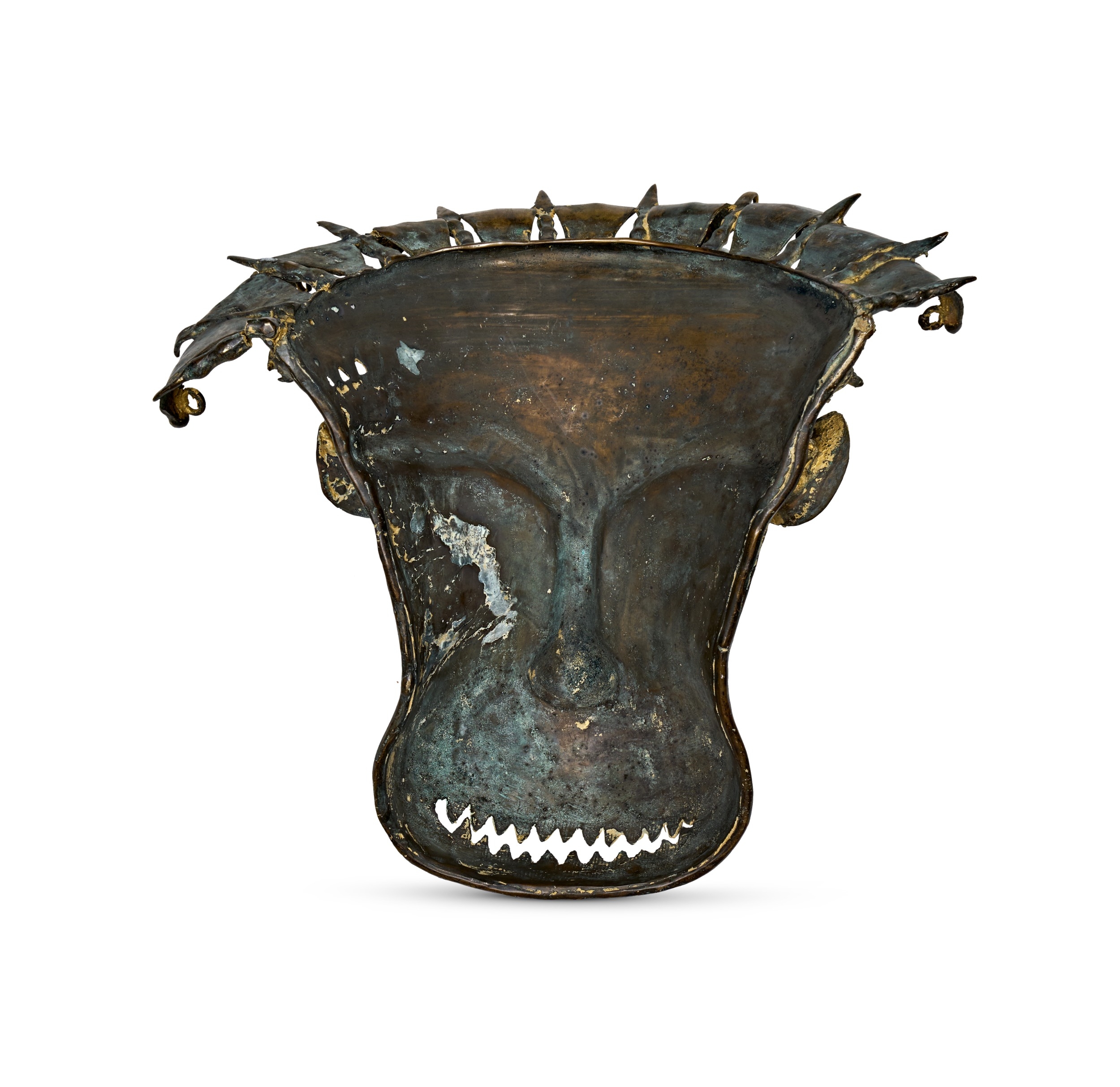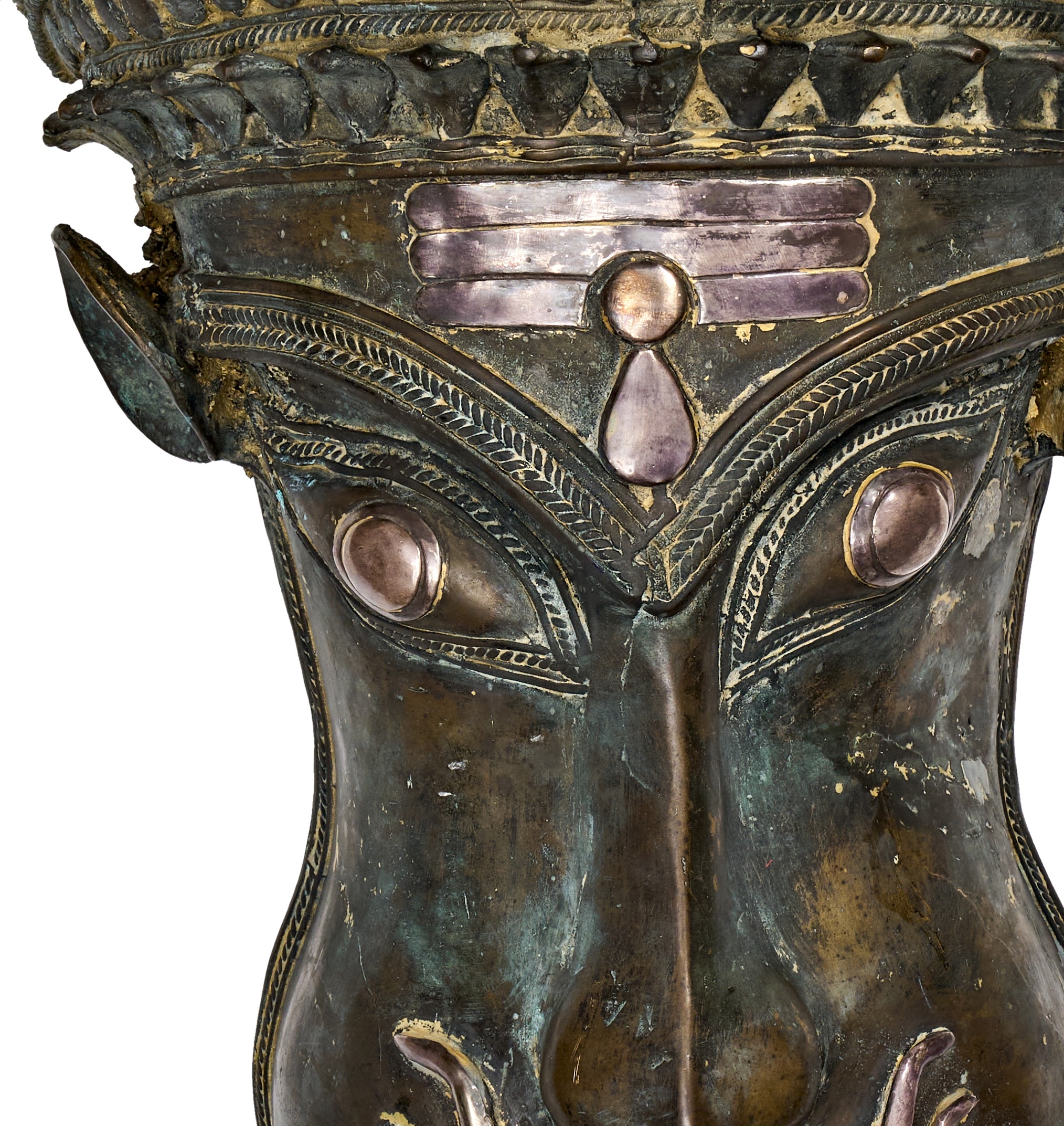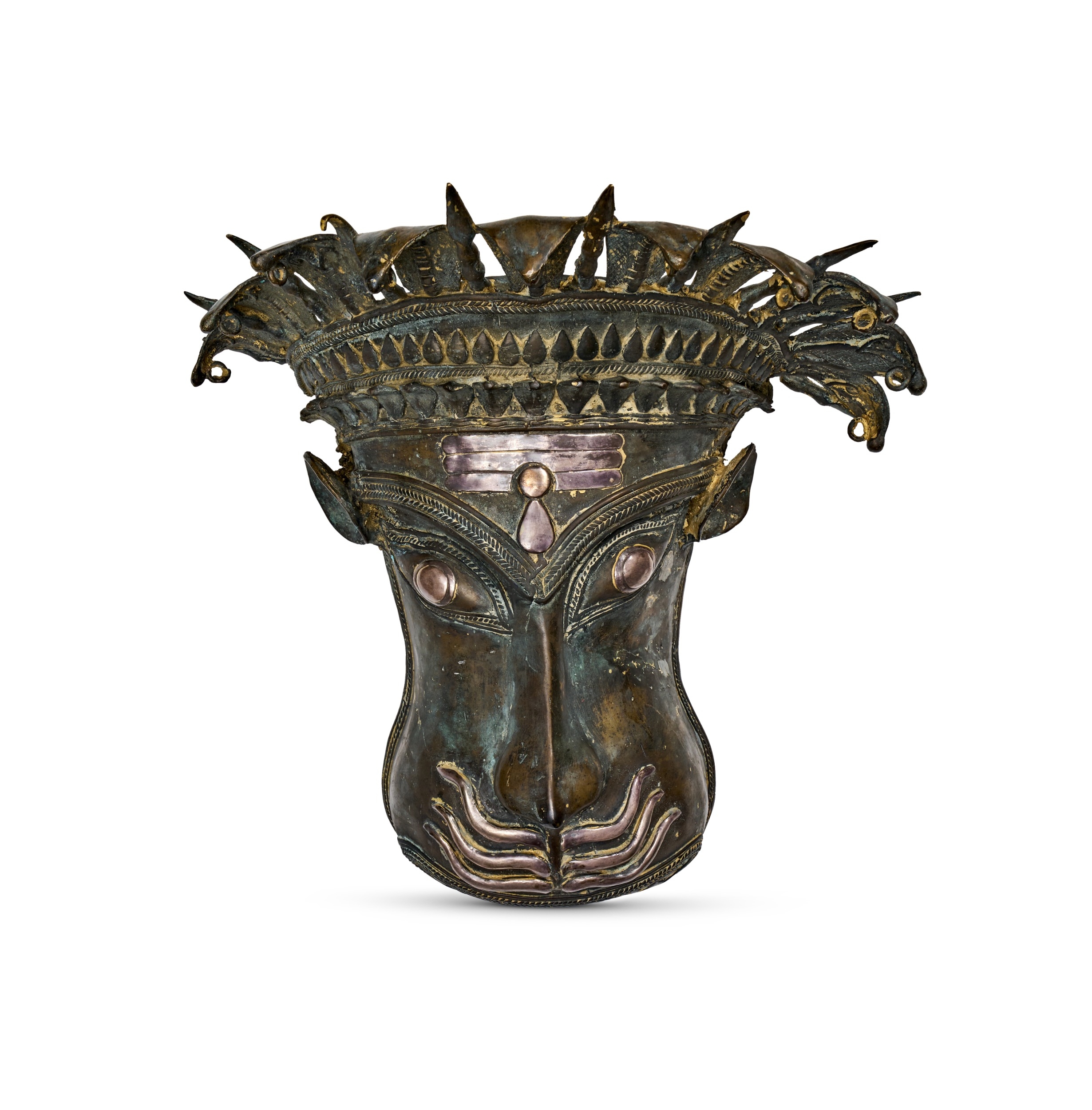 A LARGE SILVER INLAID BRONZE RITUAL MASK OF SHIVA, SOUTH INDIAN, 18TH CENTURY