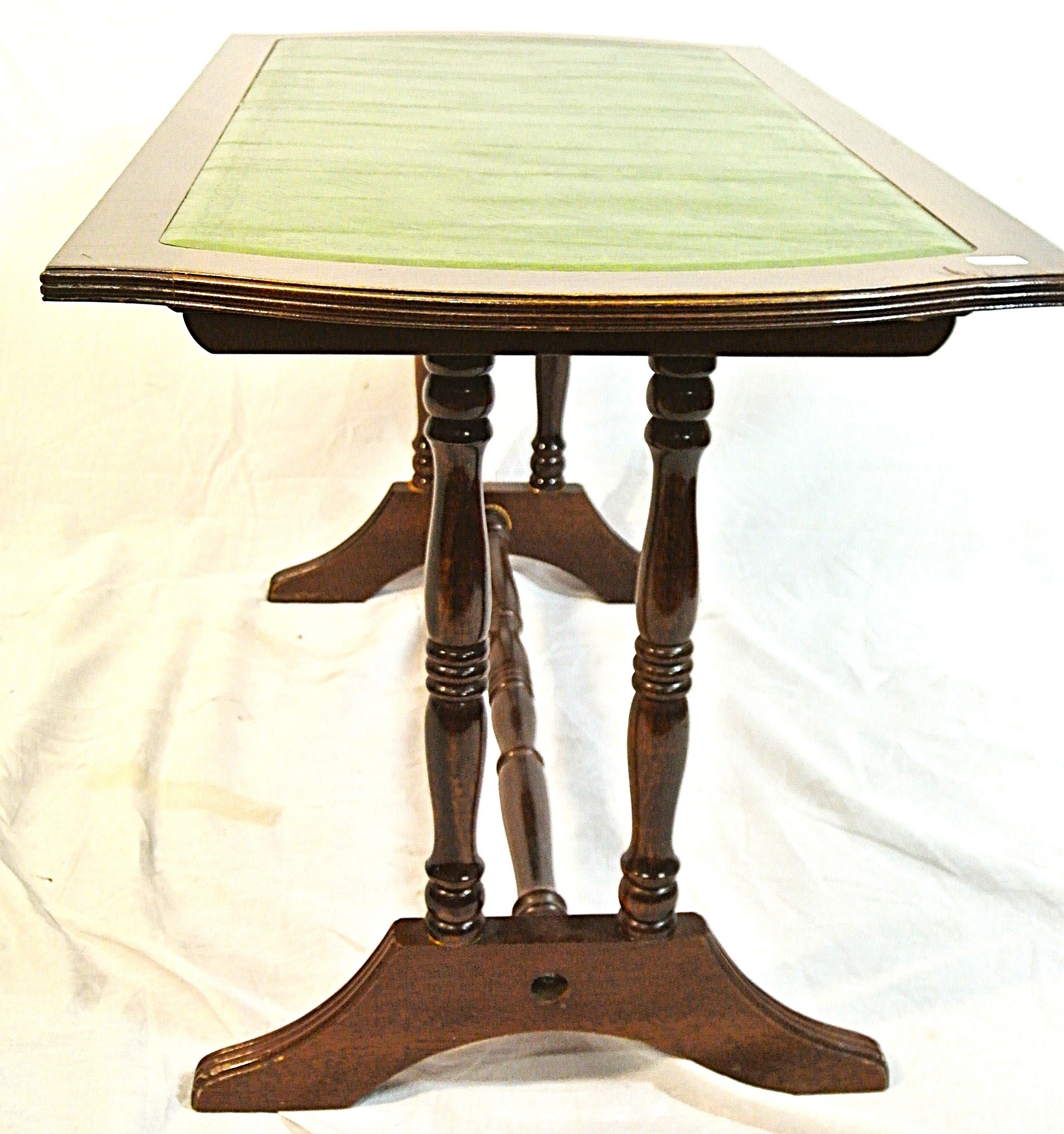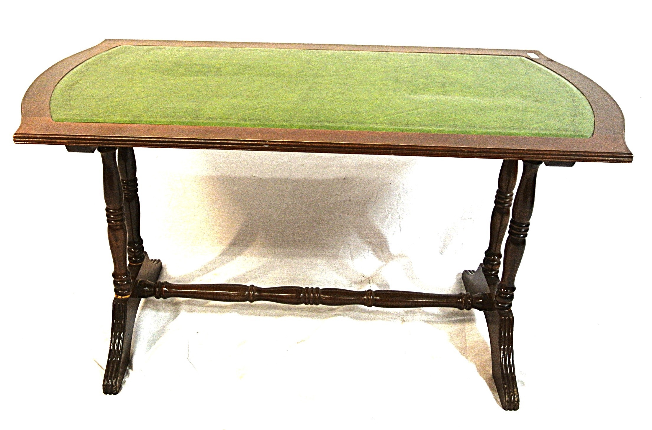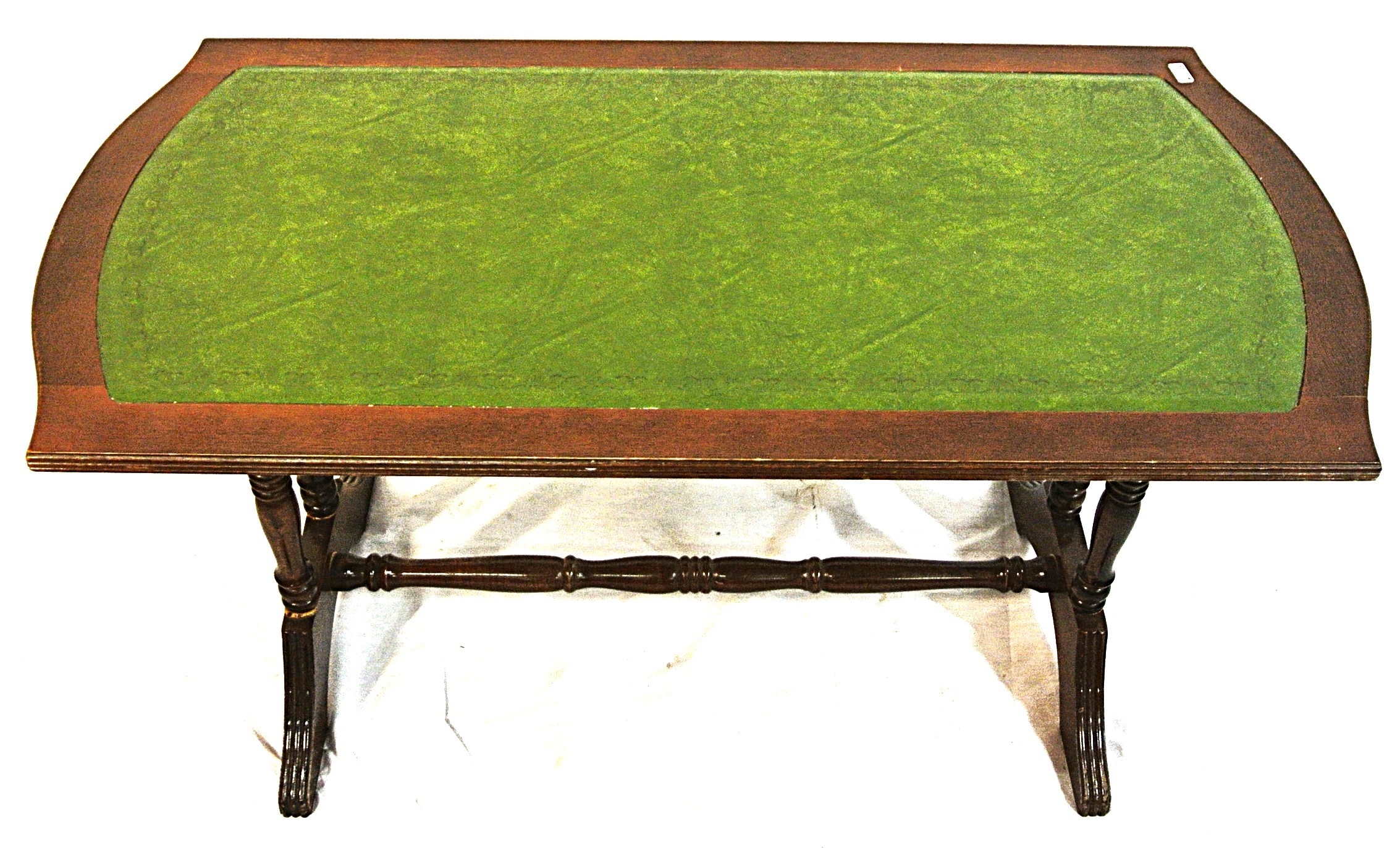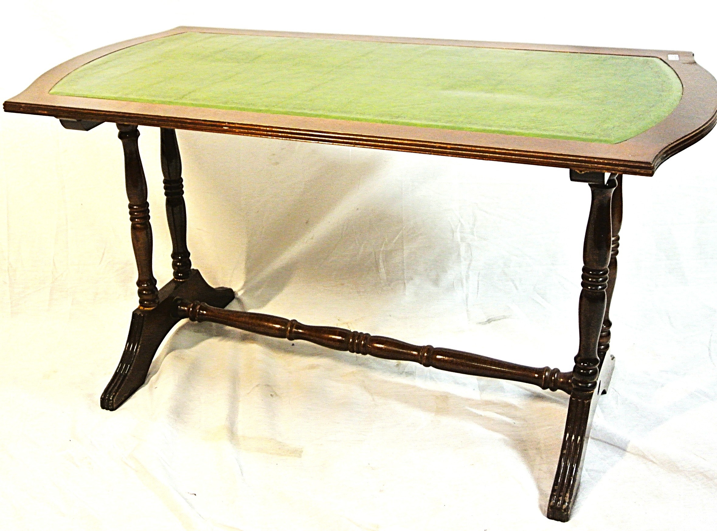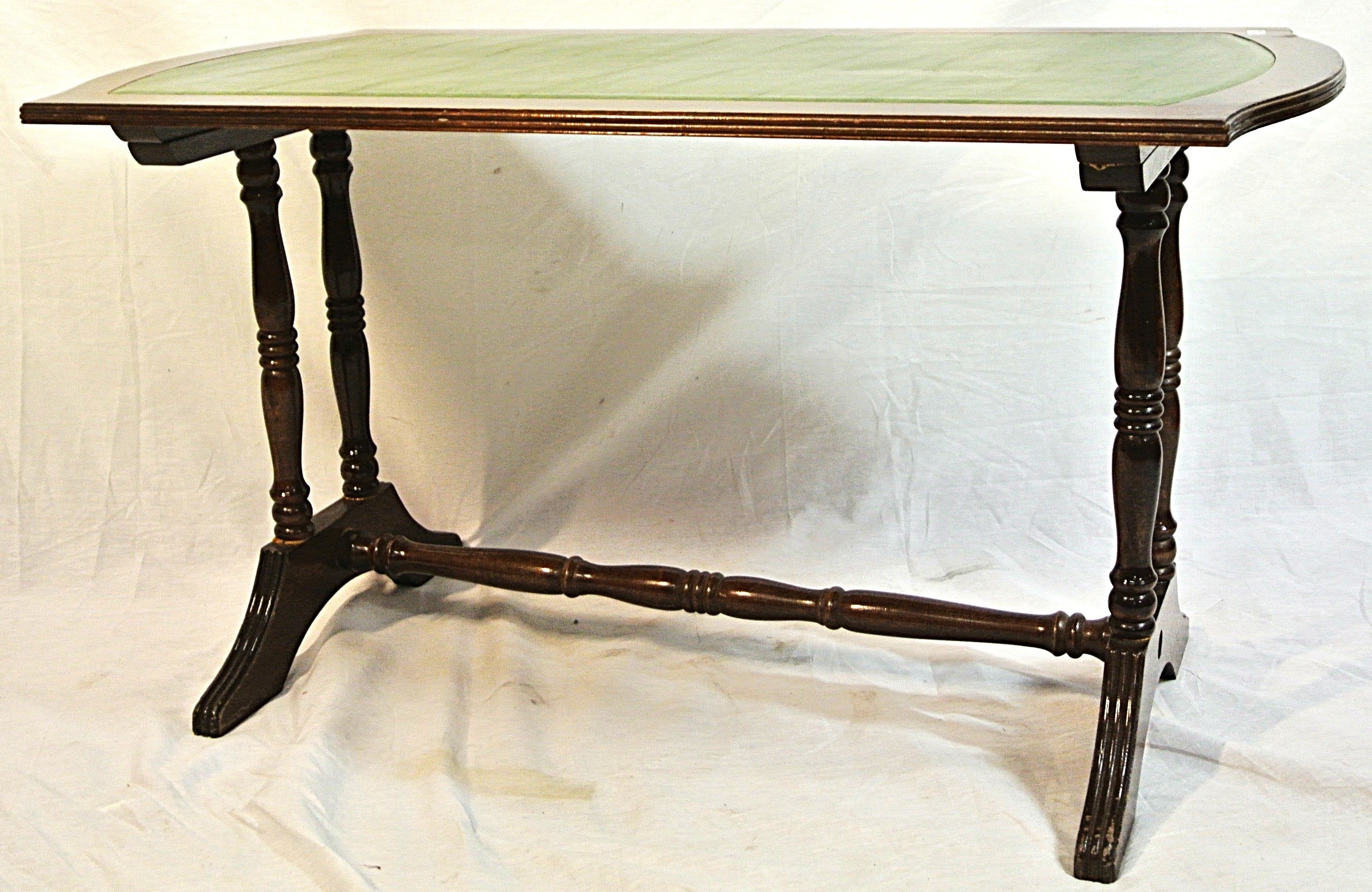 Edwardian style oblong coffee table with bowed ends, and leatherette inset