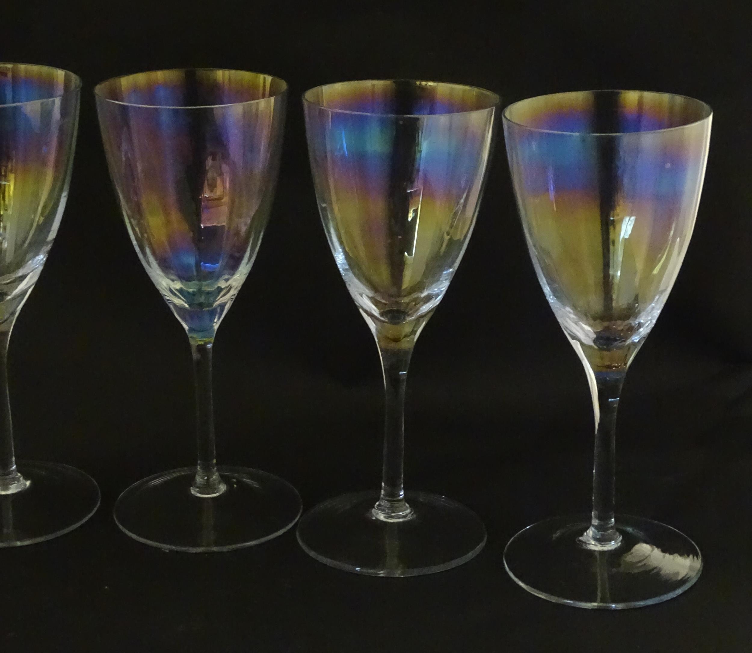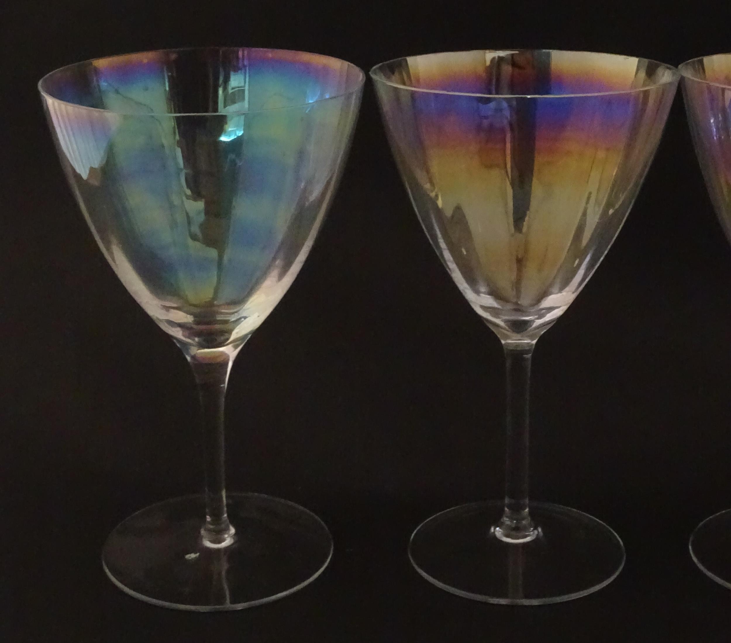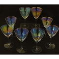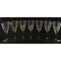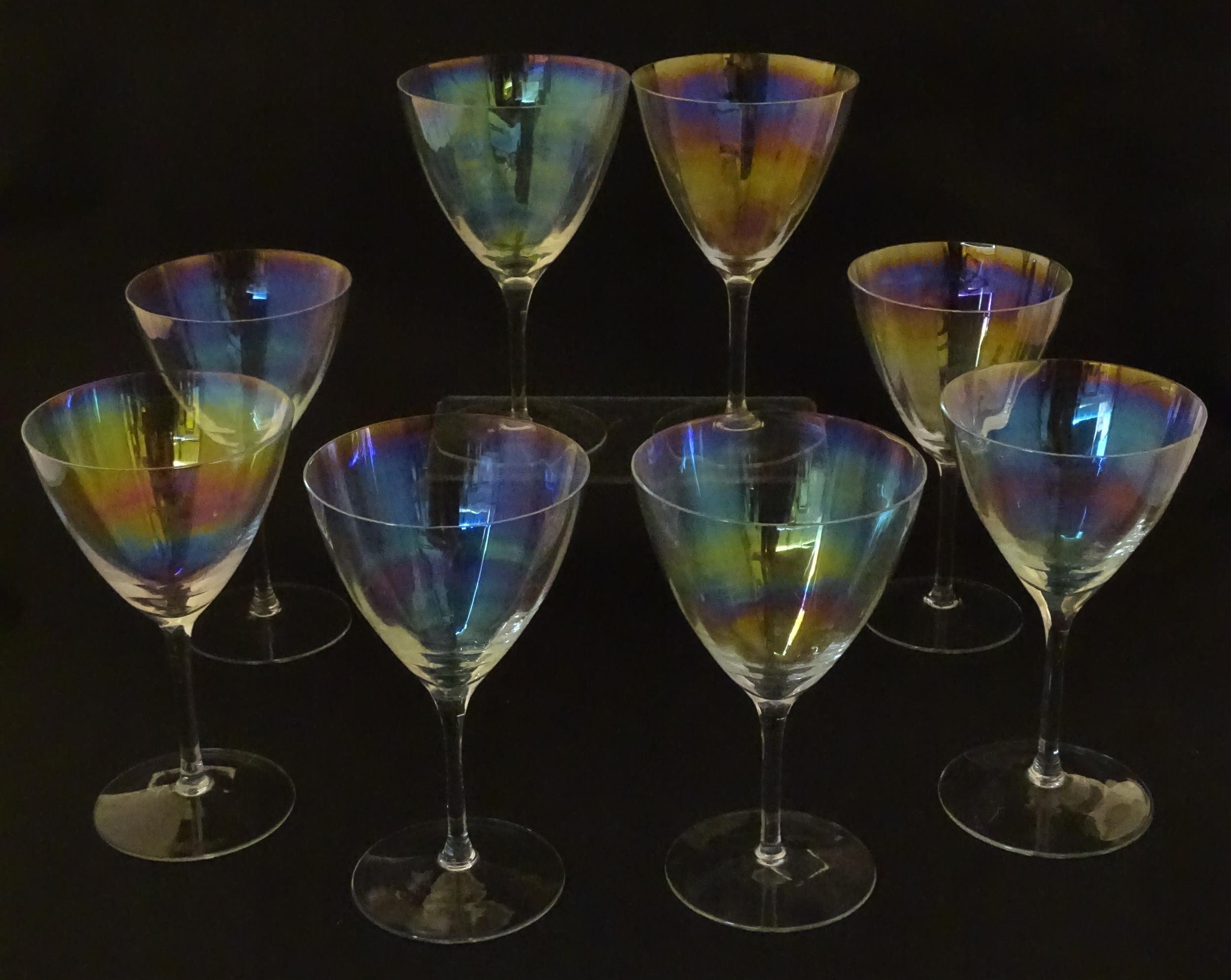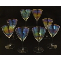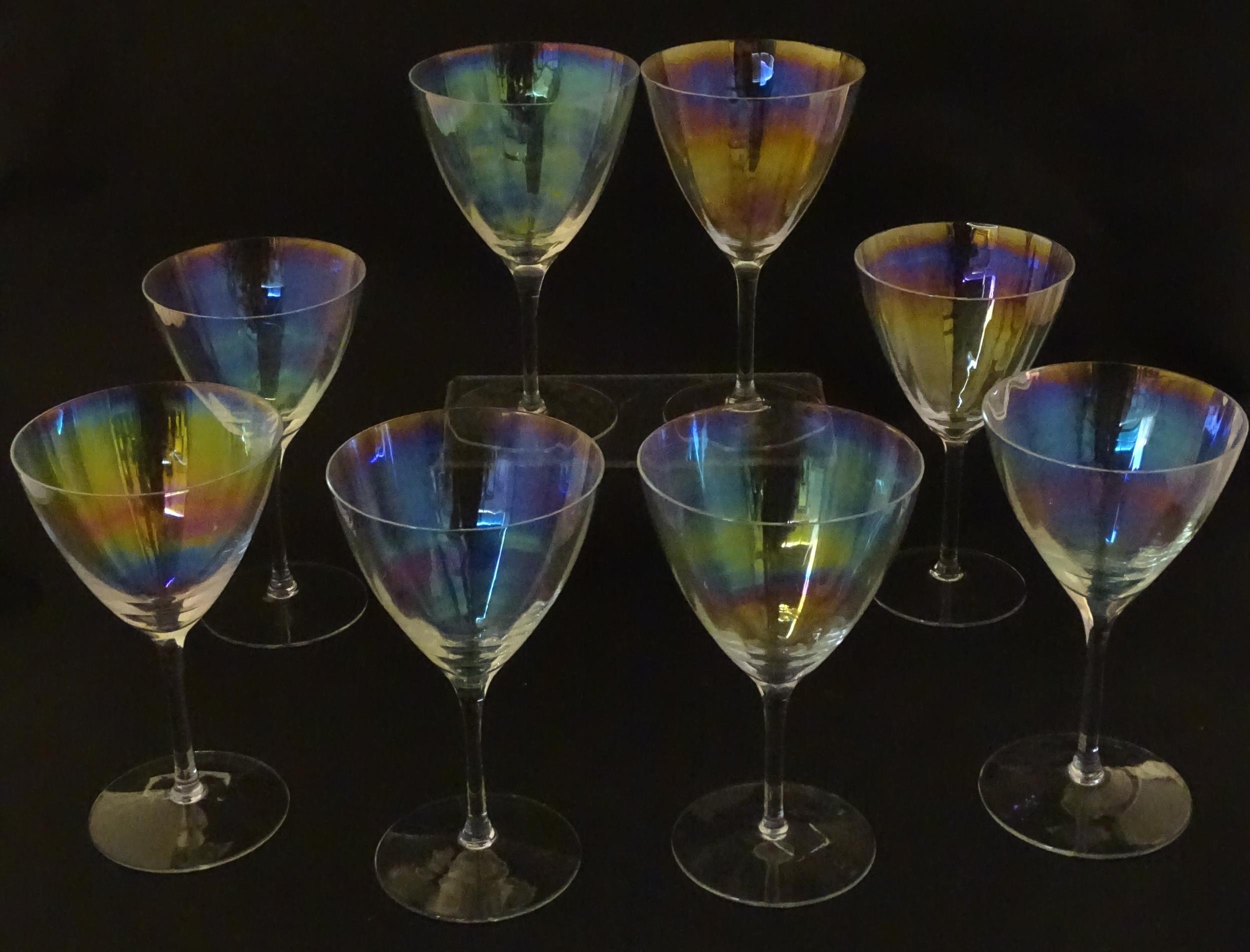 Fifteen iridescent glass wine glasses. Largest approx. 7" high (7+8)