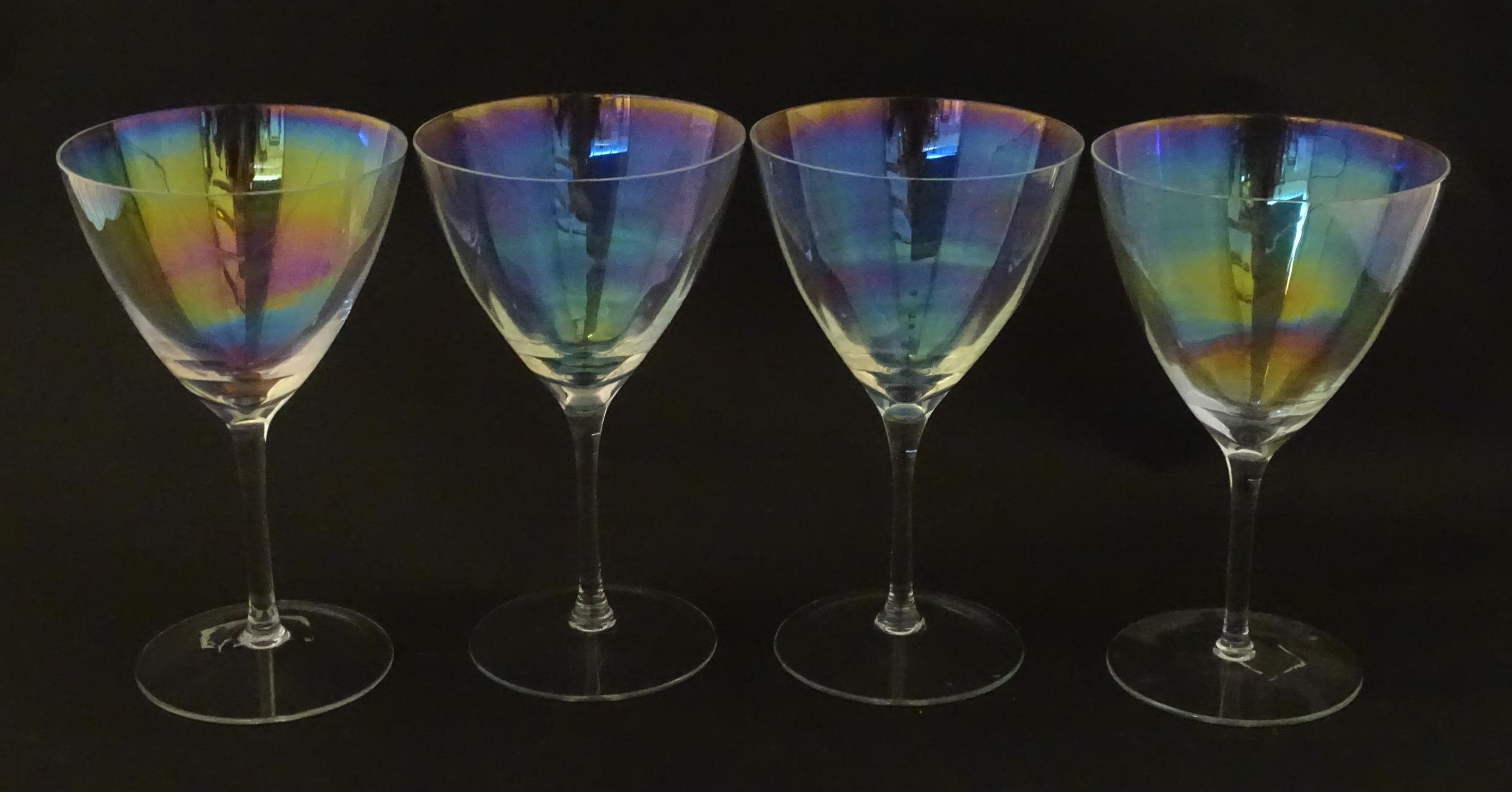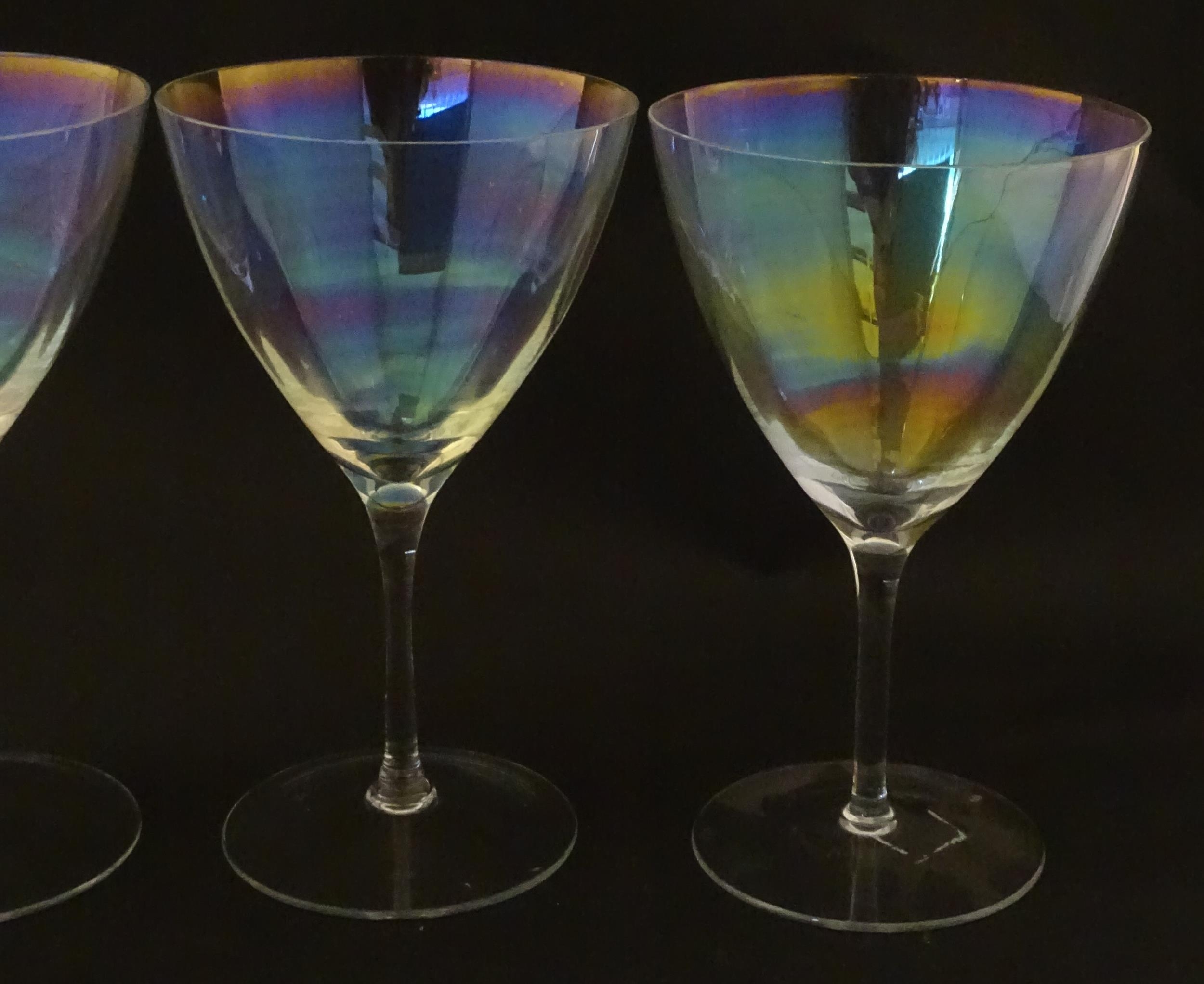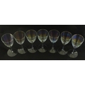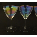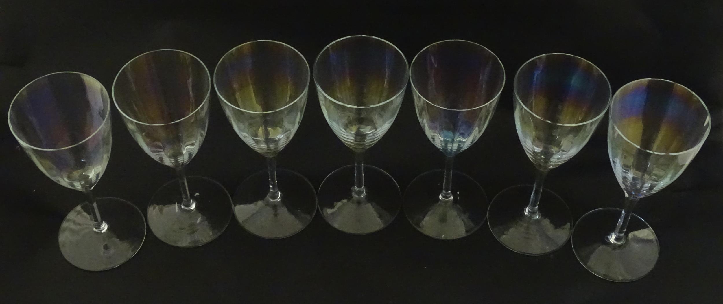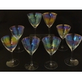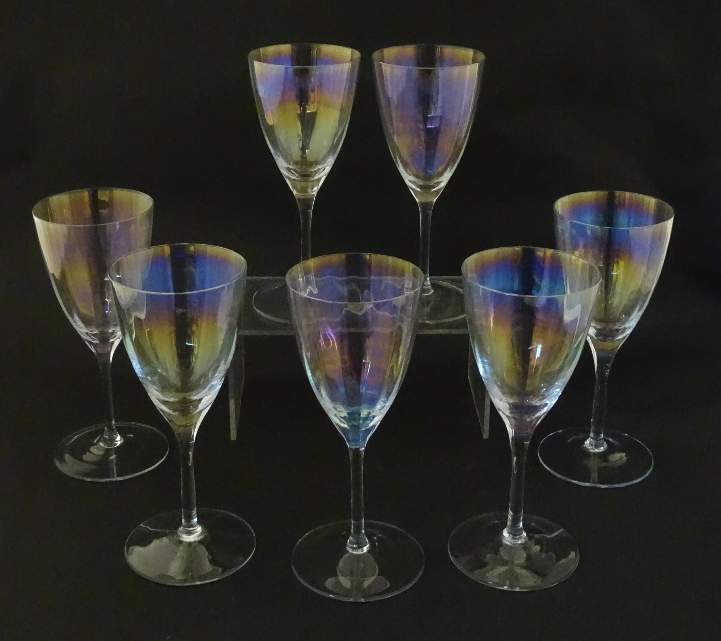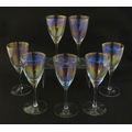 Fifteen iridescent glass wine glasses. Largest approx. 7" high (7+8)