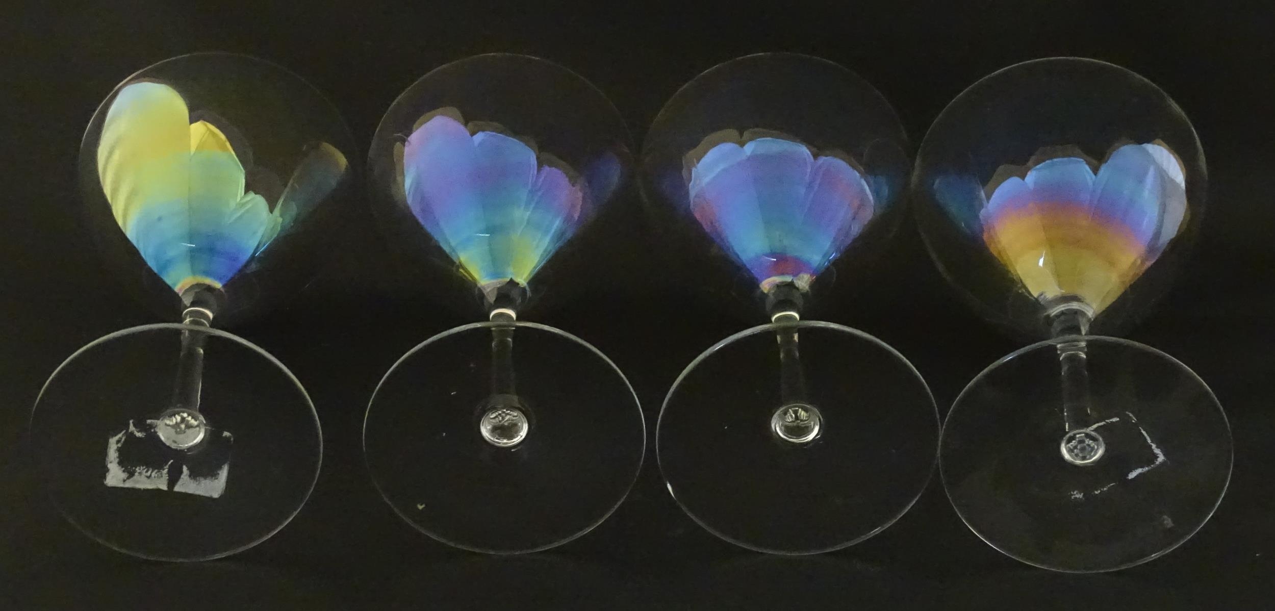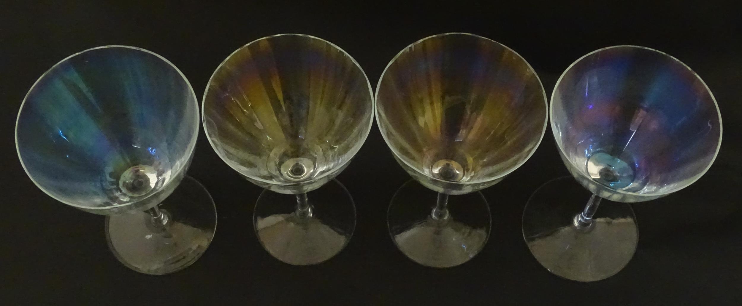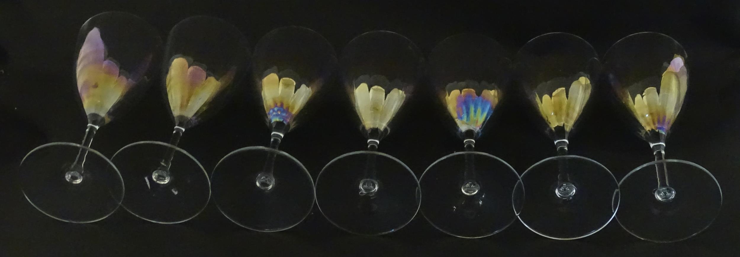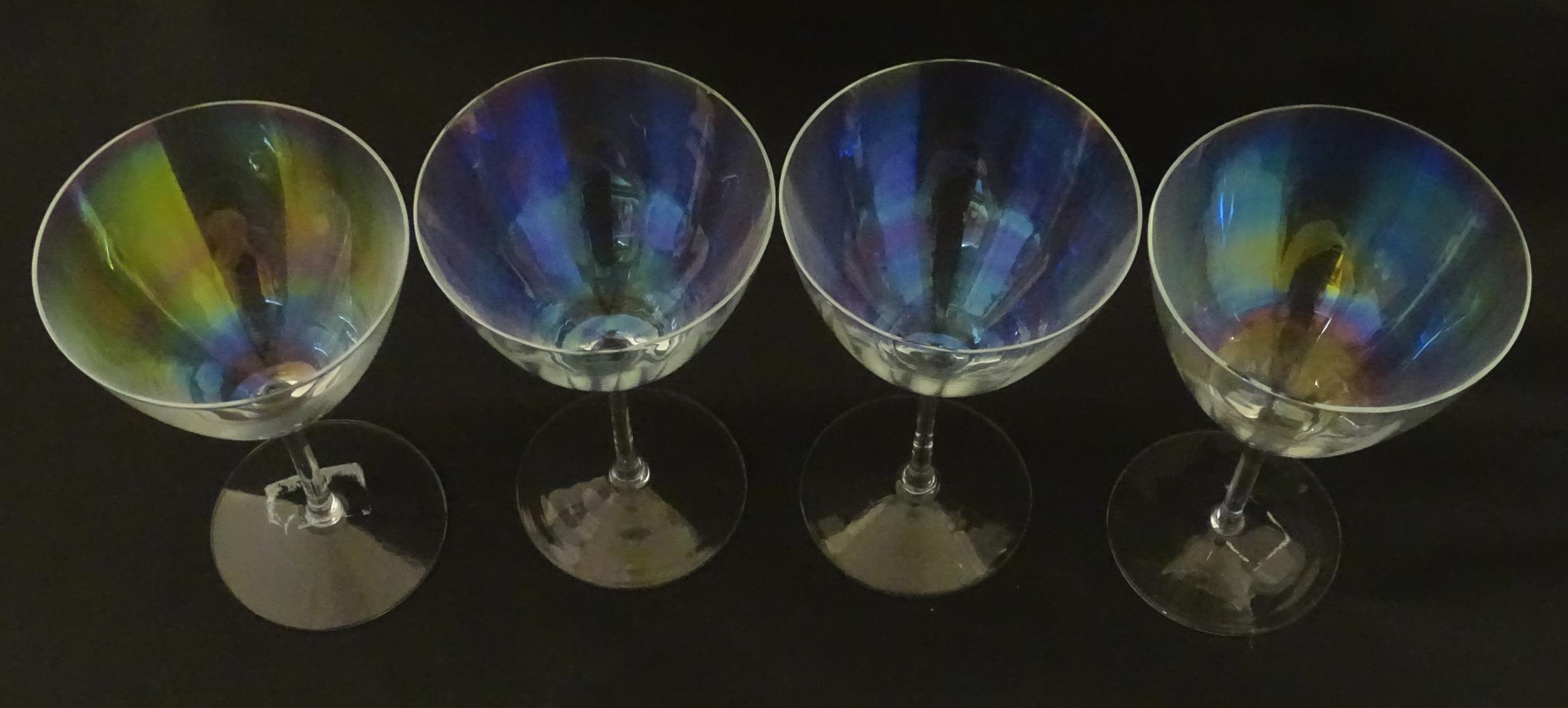 Fifteen iridescent glass wine glasses. Largest approx. 7" high (7+8)