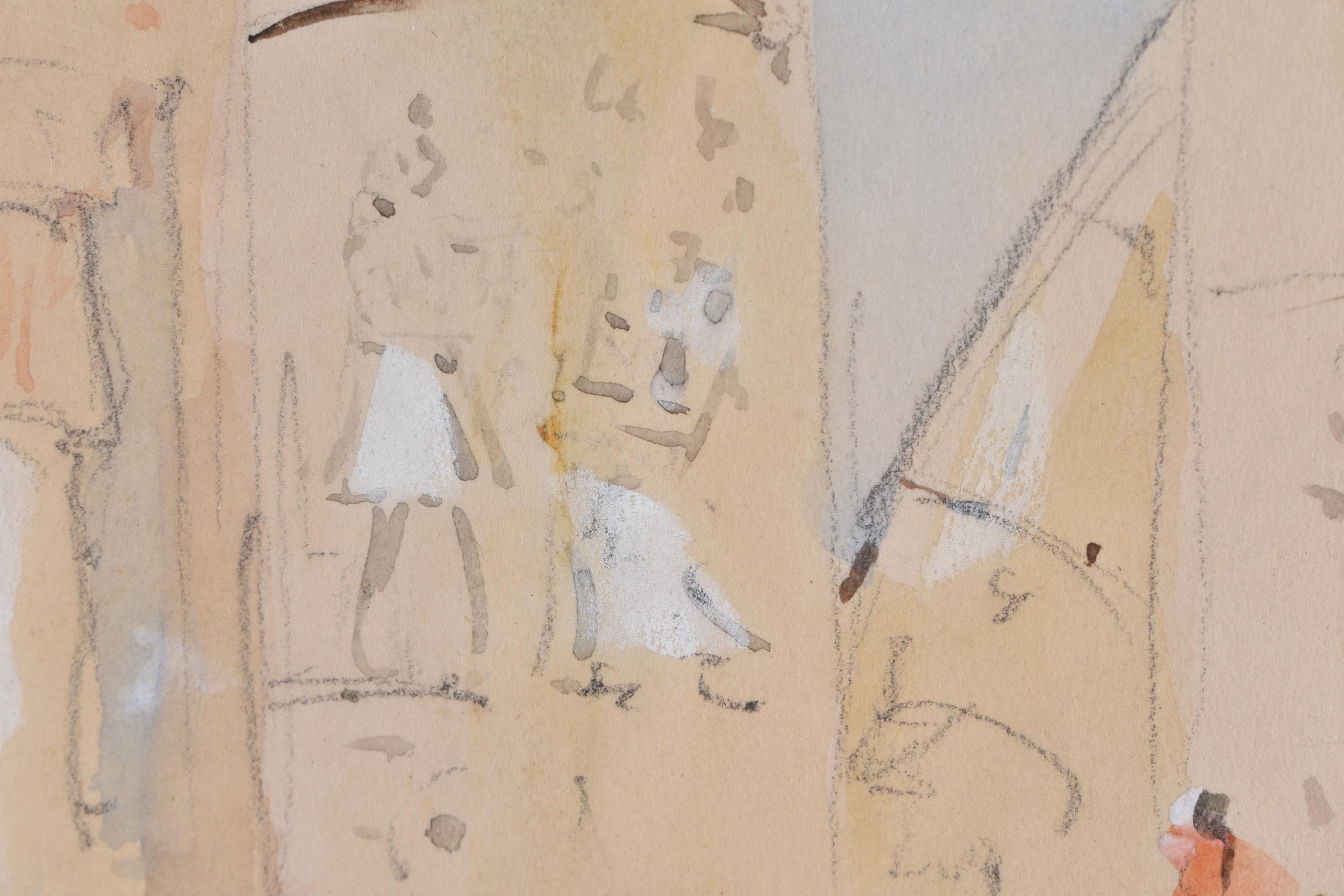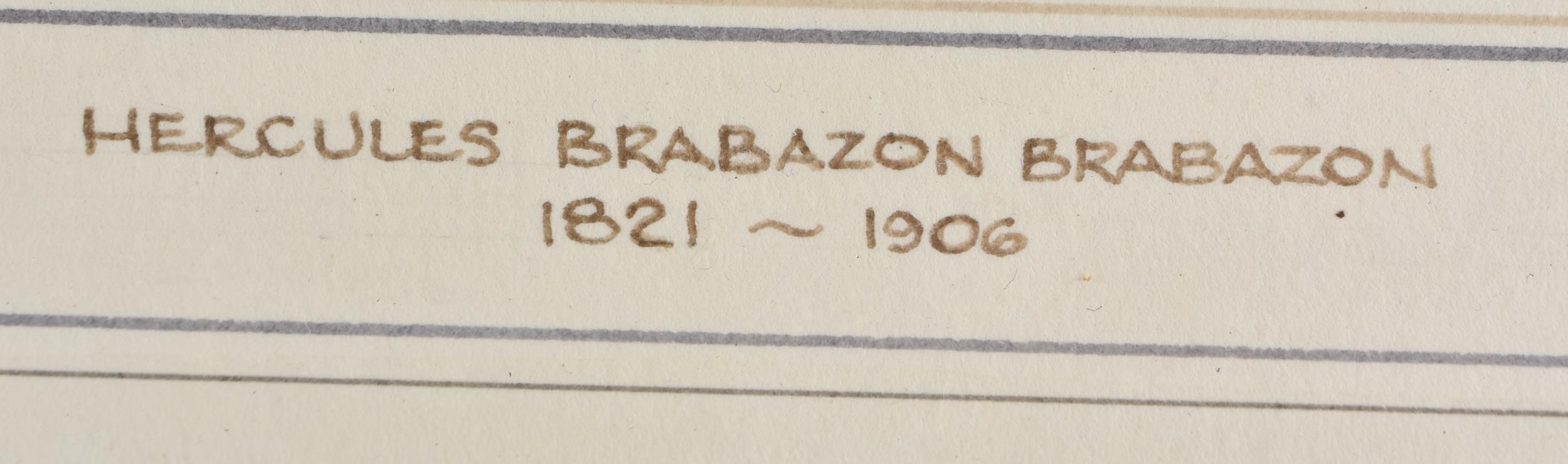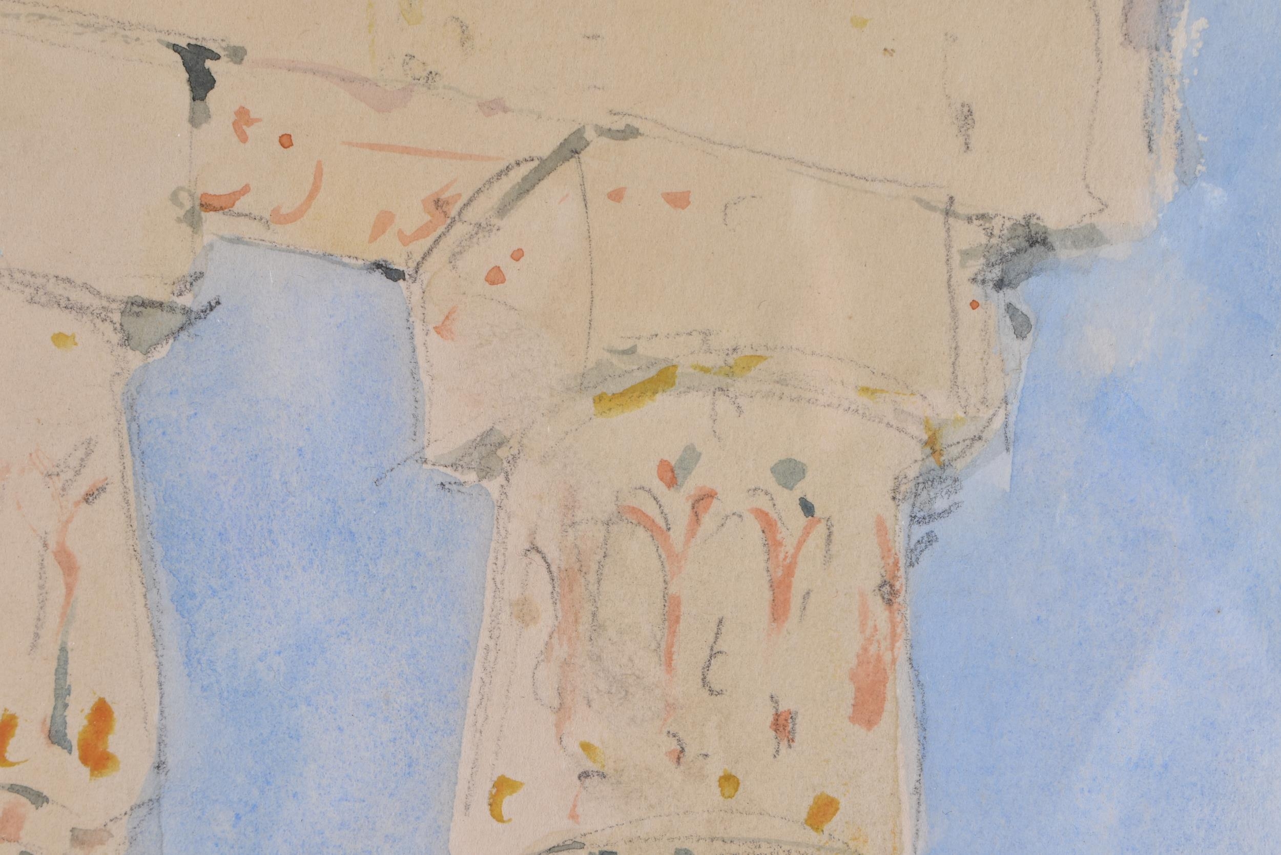 A FRAMED WATERCOLOUR BY HERCULES BRABAZON BRABAZON (1821-1906). Ruins of Temple of Amon, Karnak, Egypt. Signed with HBB initials bottom right. Size: 33.5cm x 24.7cm. Total size (framed and glazed): 57cm x 46cm. Old Christies and Chris Beetles labels to front and back. In excellent condition. PROVENANCE: sold by The Albany Gallery, London at Christies on 7th April 2000 for £4,700 Lot 100: (https://www.christies.com/lot/lot-1749780). Exhibited: London, Leighton House, Hercules Brabazon Brabazon, 1971, no. 31. Hastings, Hastings Museum and Art Gallery, The Wide World of Hercules Brabazon Brabazon: A Retrospective Exhibition of his Art, 17 July-12 September, 1976, no. 23//London, Campbell and Franks, Hercules Brabazon Brabazon: A Retrospective of his Art, 1976, no. 61.//London, Chris Beetles, Hercules Brabazon Brabazon (1821-1906): Exhibition of Watercolours and Pastels, 12 November-18 December 1982, no. 176.