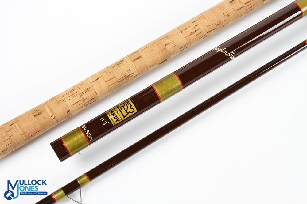 Hardy Richard Walker Fred Taylor Trotter Fibalite rod 11ft 3" 2pc, 24" detachable handle with alloy sliding reel fittings, red agate butt/tip stand off rings, light use, MCB