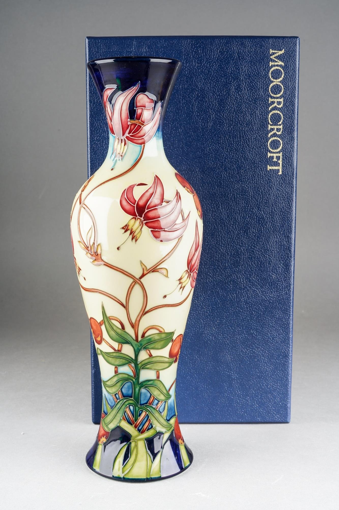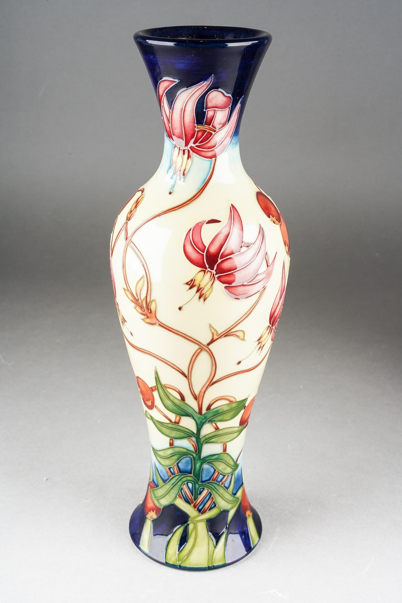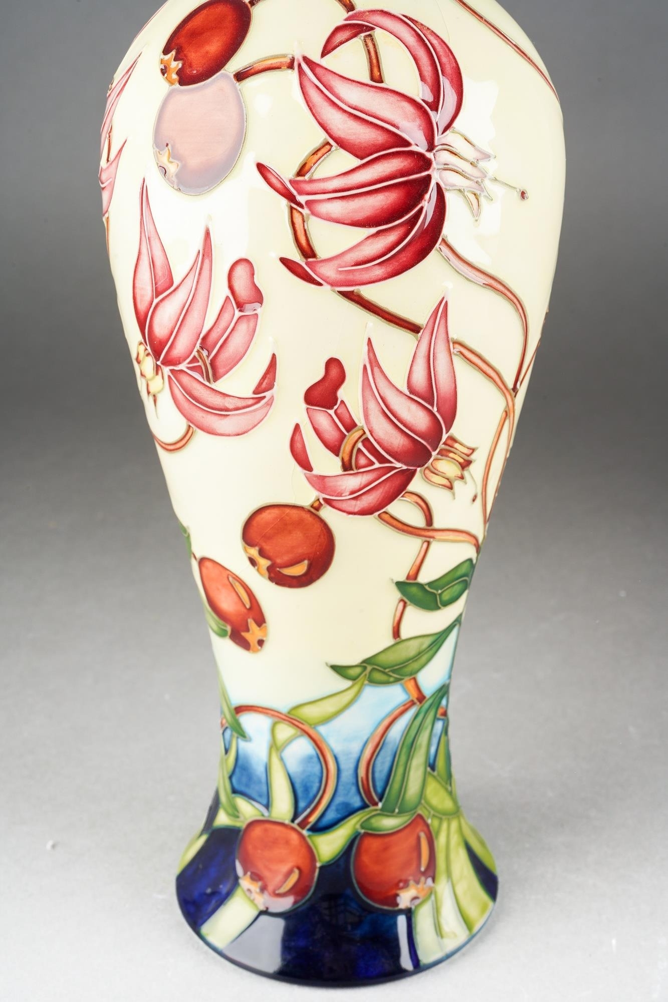 A Moorcroft Party Piece elongated vase, designed by Sandra Dance, limited edition 82/200, 2003 date code cypher, printed and painted marks, signed by the designer, approx 31cm tall, boxed