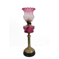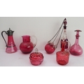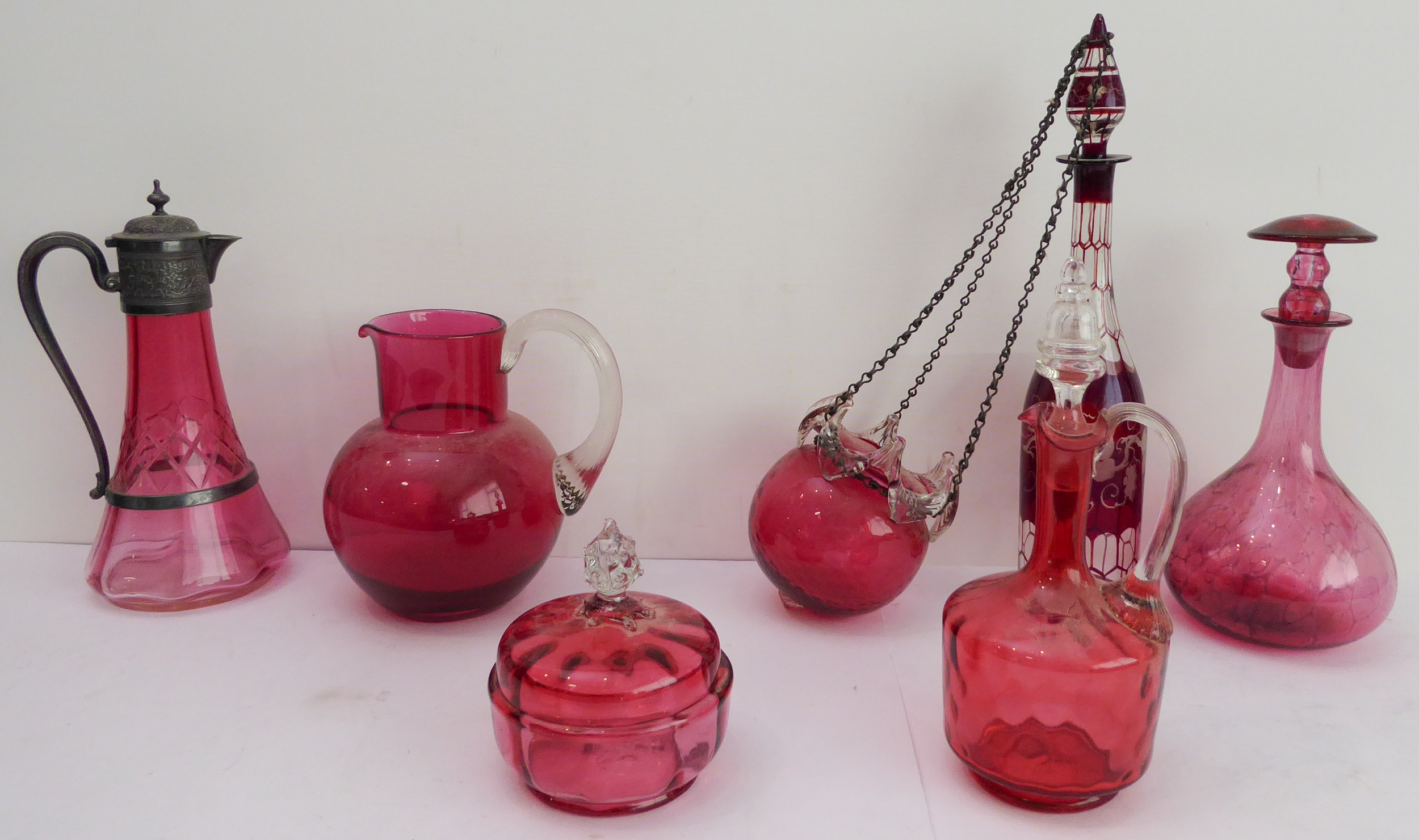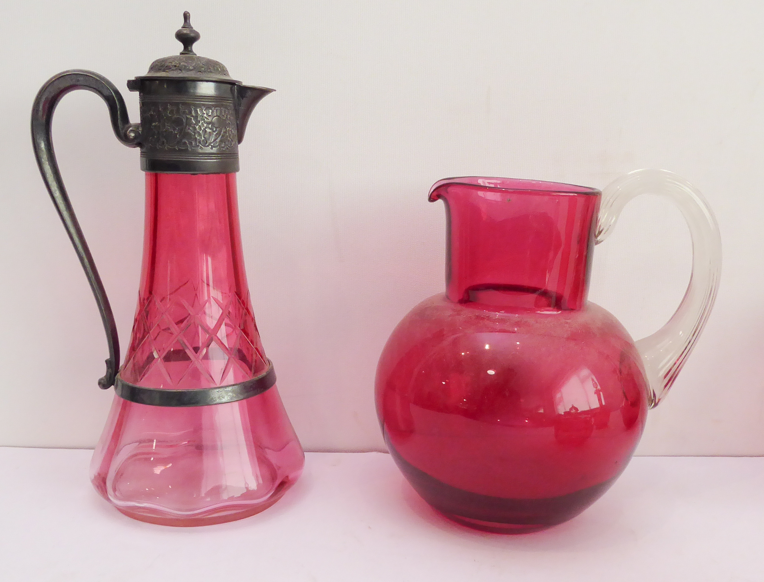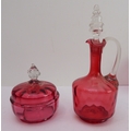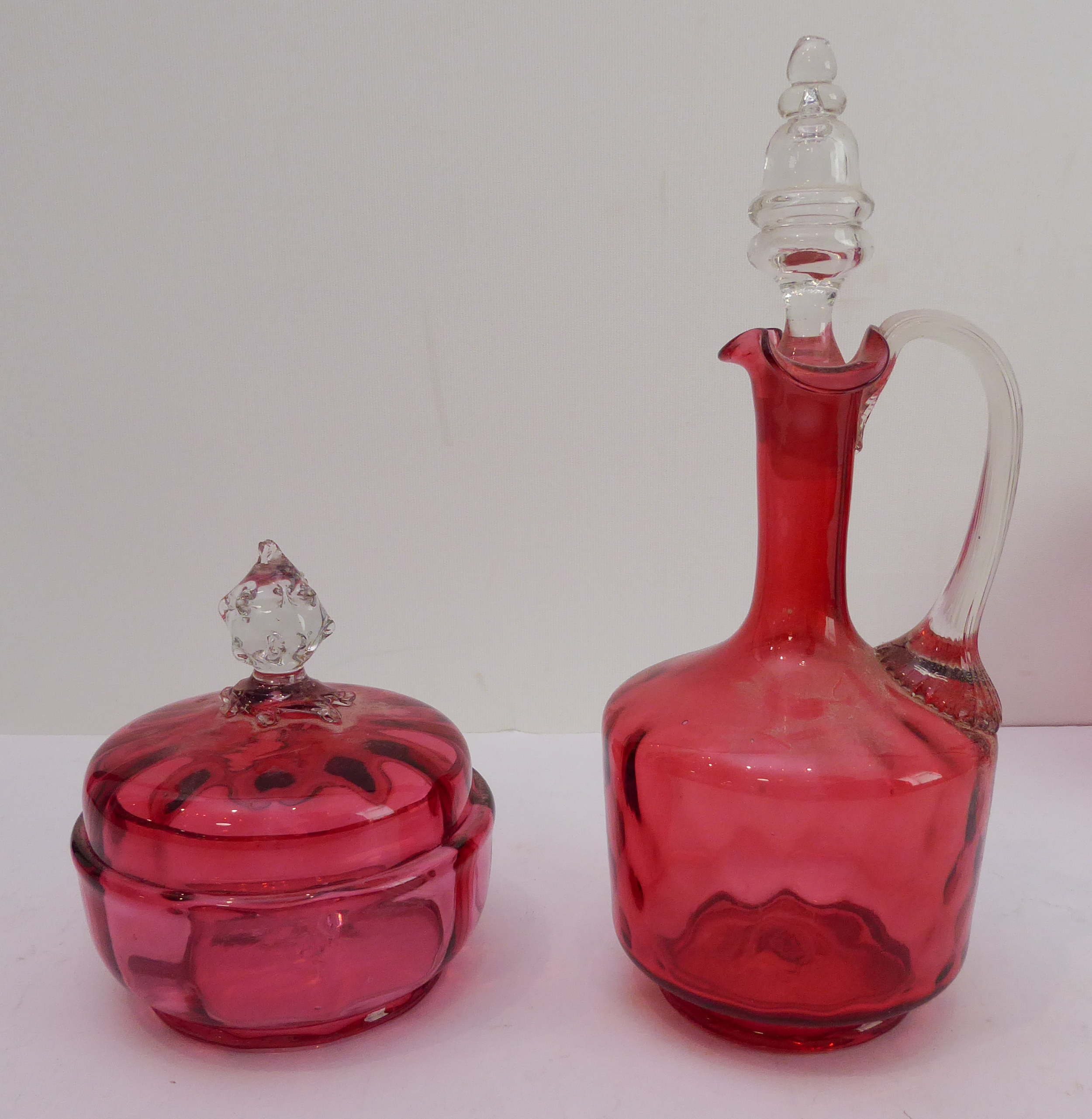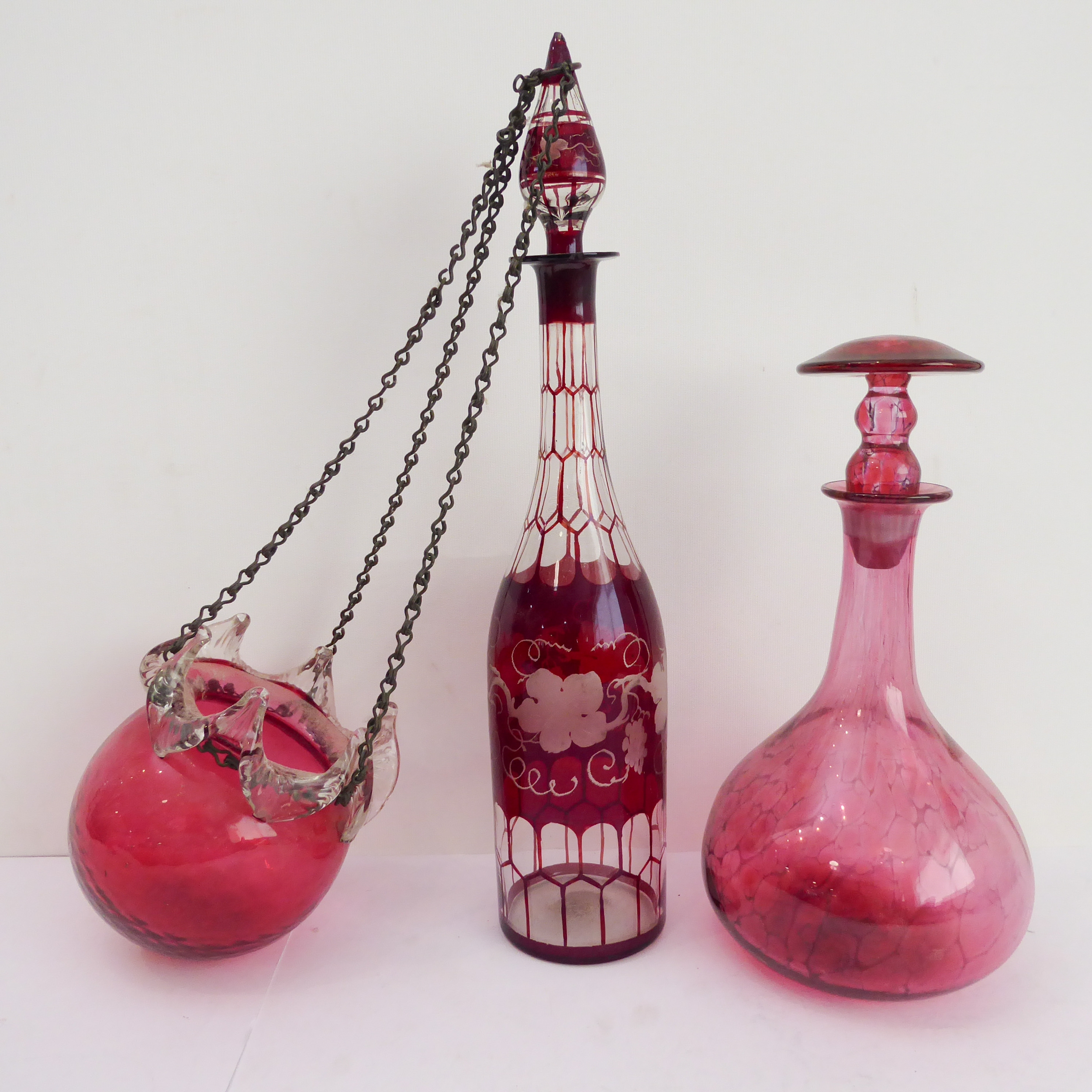 a tall flash-cut decanter and spire stopper (damage to decanter and stopper).
