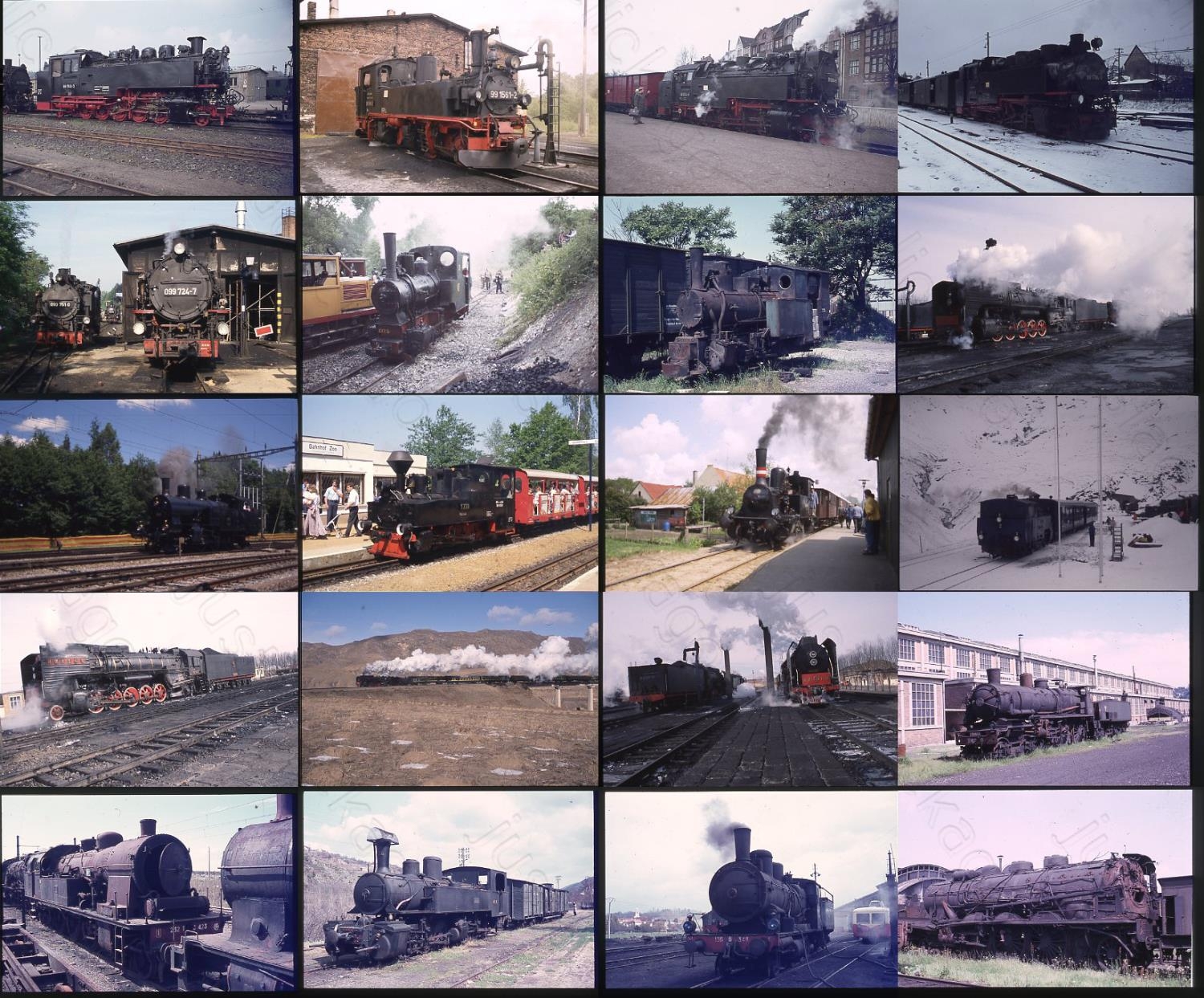 Railway. World Steam. Approx. 170 x 35mm colour slides, on mostly Agfa film stock with some Fuji, housed in a plastic slide storage box. The slide box isn't marked, however the slides identified include GERMANY and FRANCE. There may be other countries not identified. Including working steam, around a third of the box probably late 1960's early 1970's the rest are 1990's and early 2000's. There are some captions and they aren't very legible! Sold with copyright, sample illustrated.