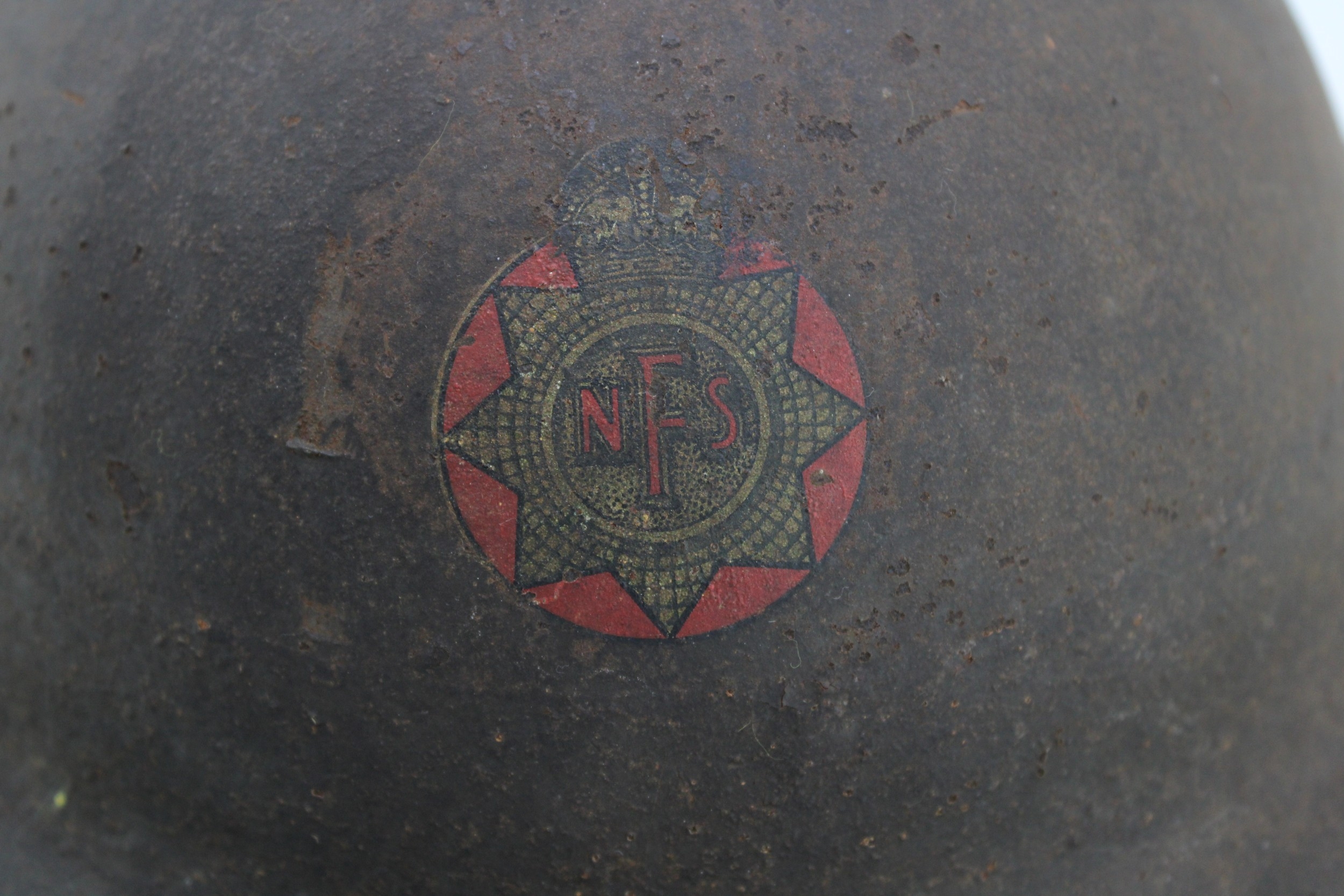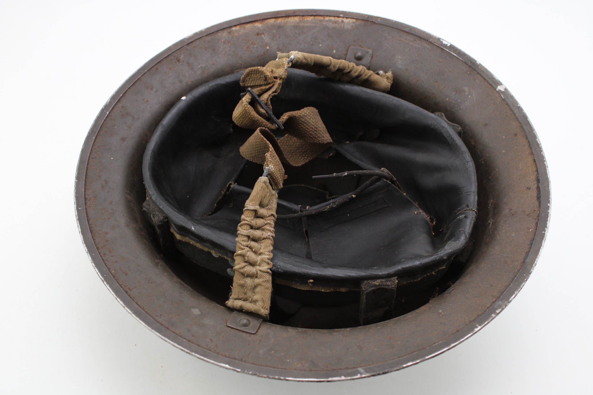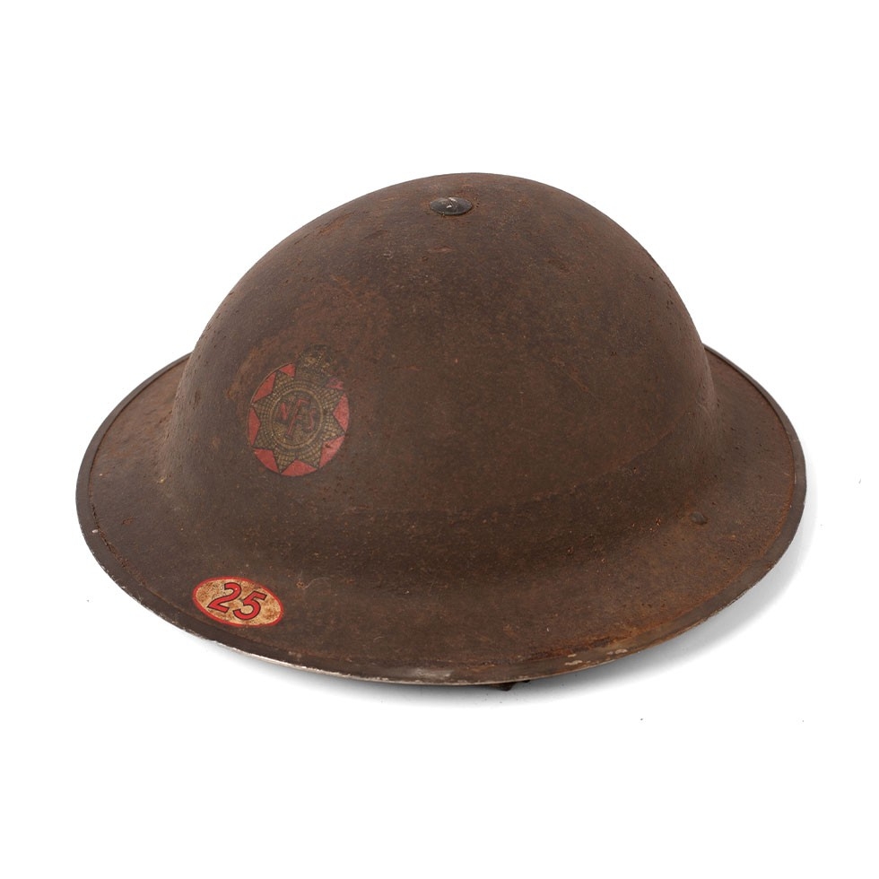WW2 National Fire Service MK2 Brodie helmet with original liner & chinstrap both 1939 dated with NFS area code 25 for Stone in Staffordshire