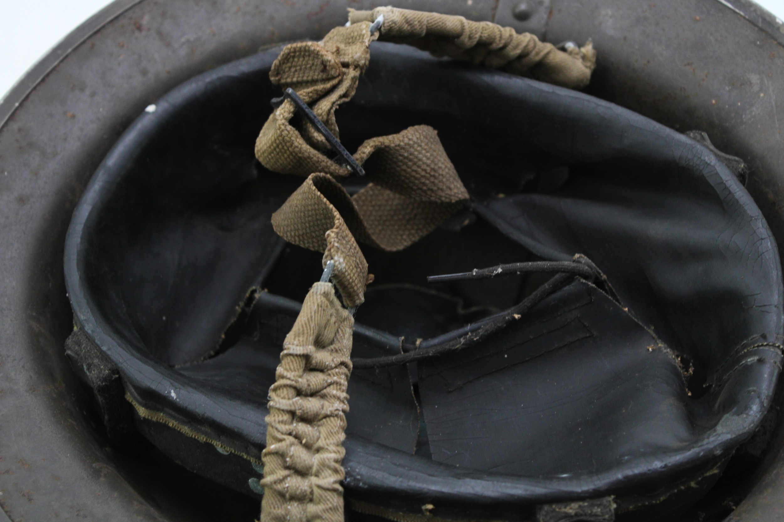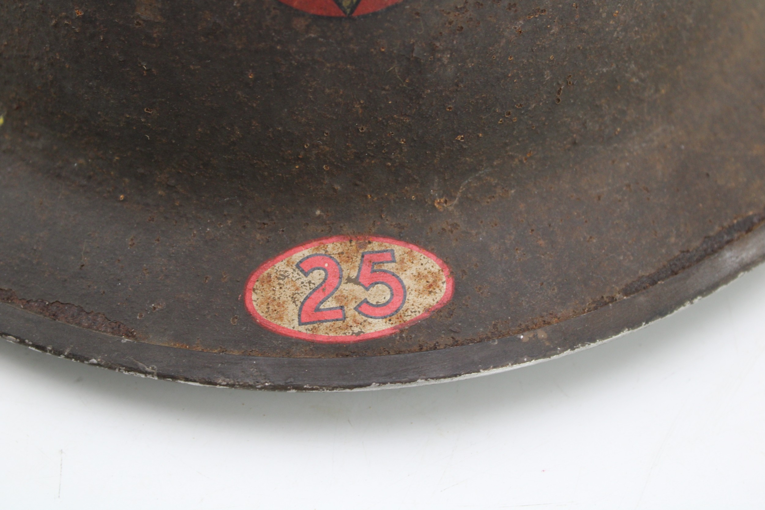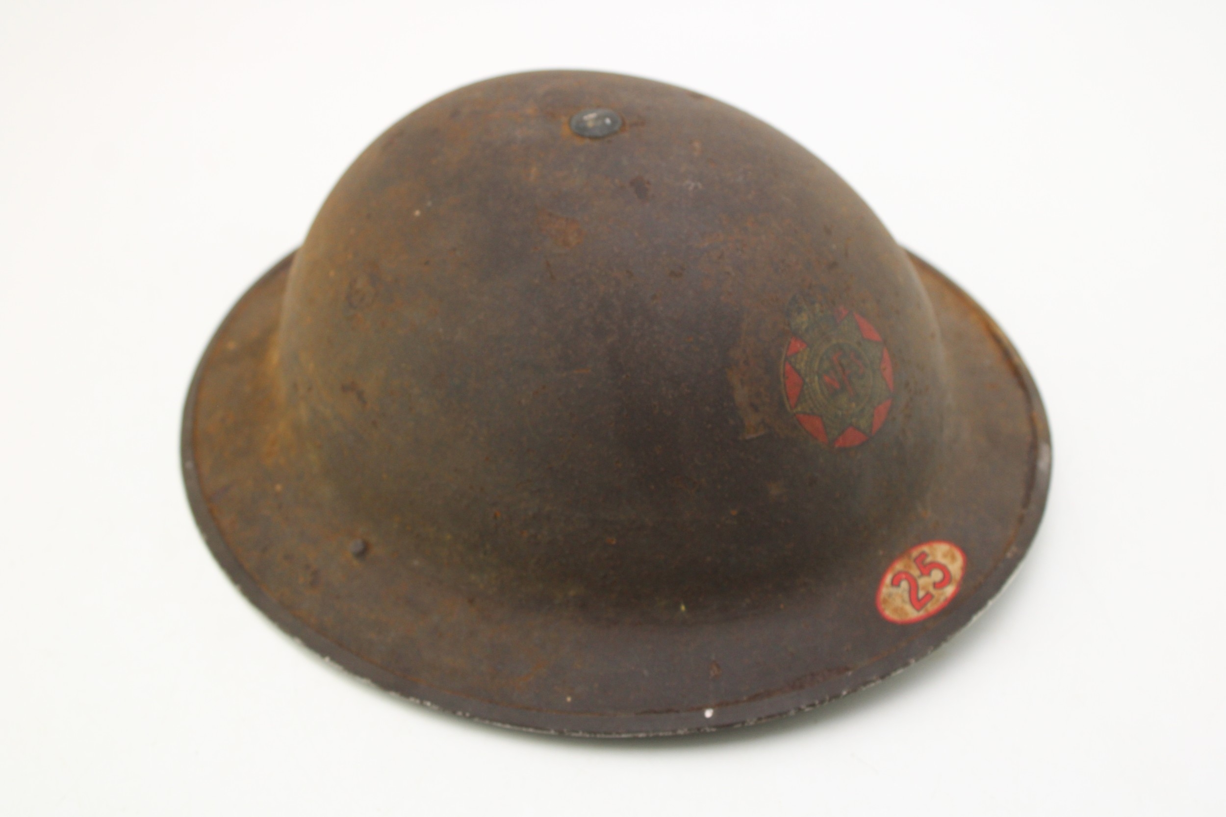 WW2 National Fire Service MK2 Brodie helmet with original liner & chinstrap both 1939 dated with NFS area code 25 for Stone in Staffordshire
