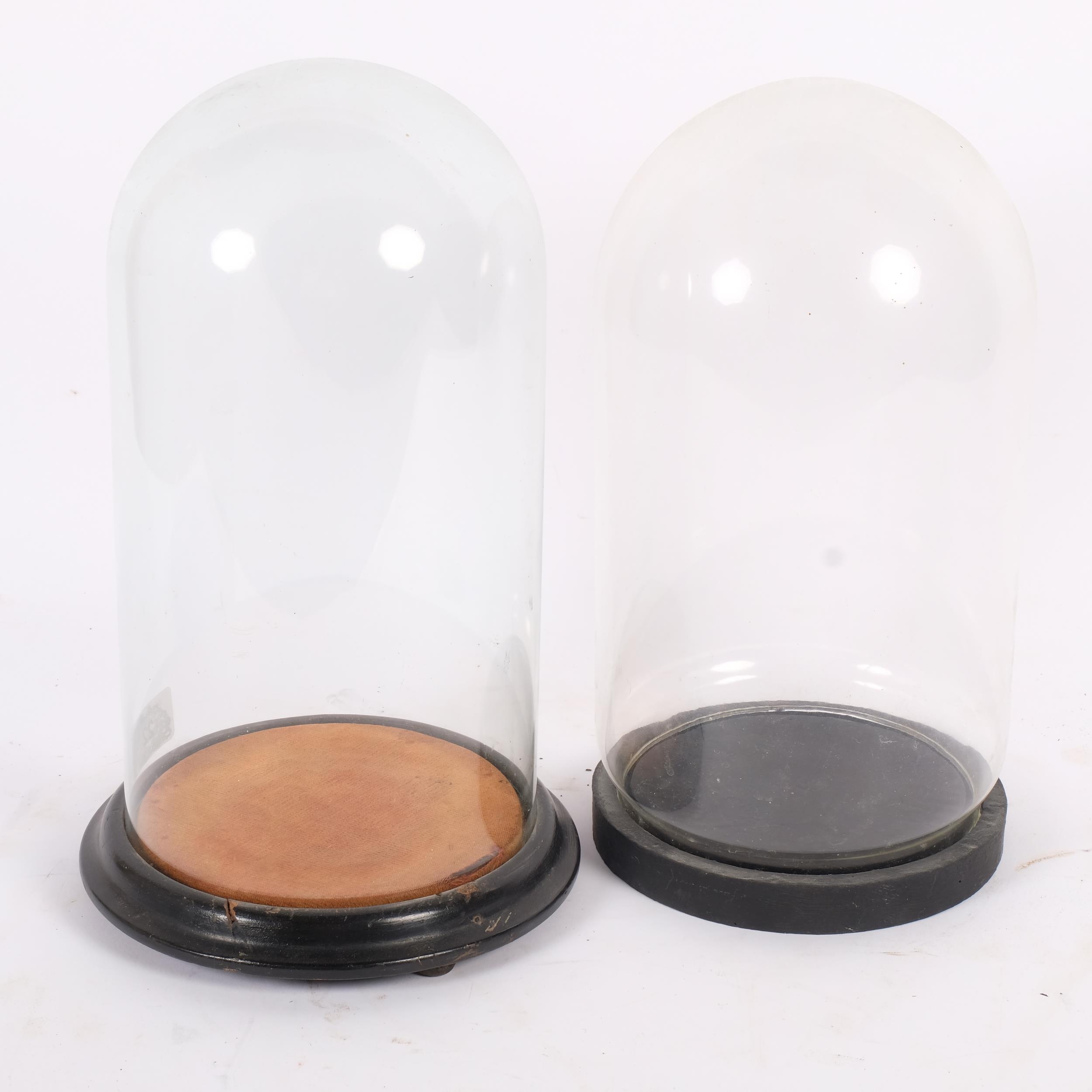 A Victorian glass dome on wood base, H29cm, and a modern glass dome (2)