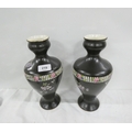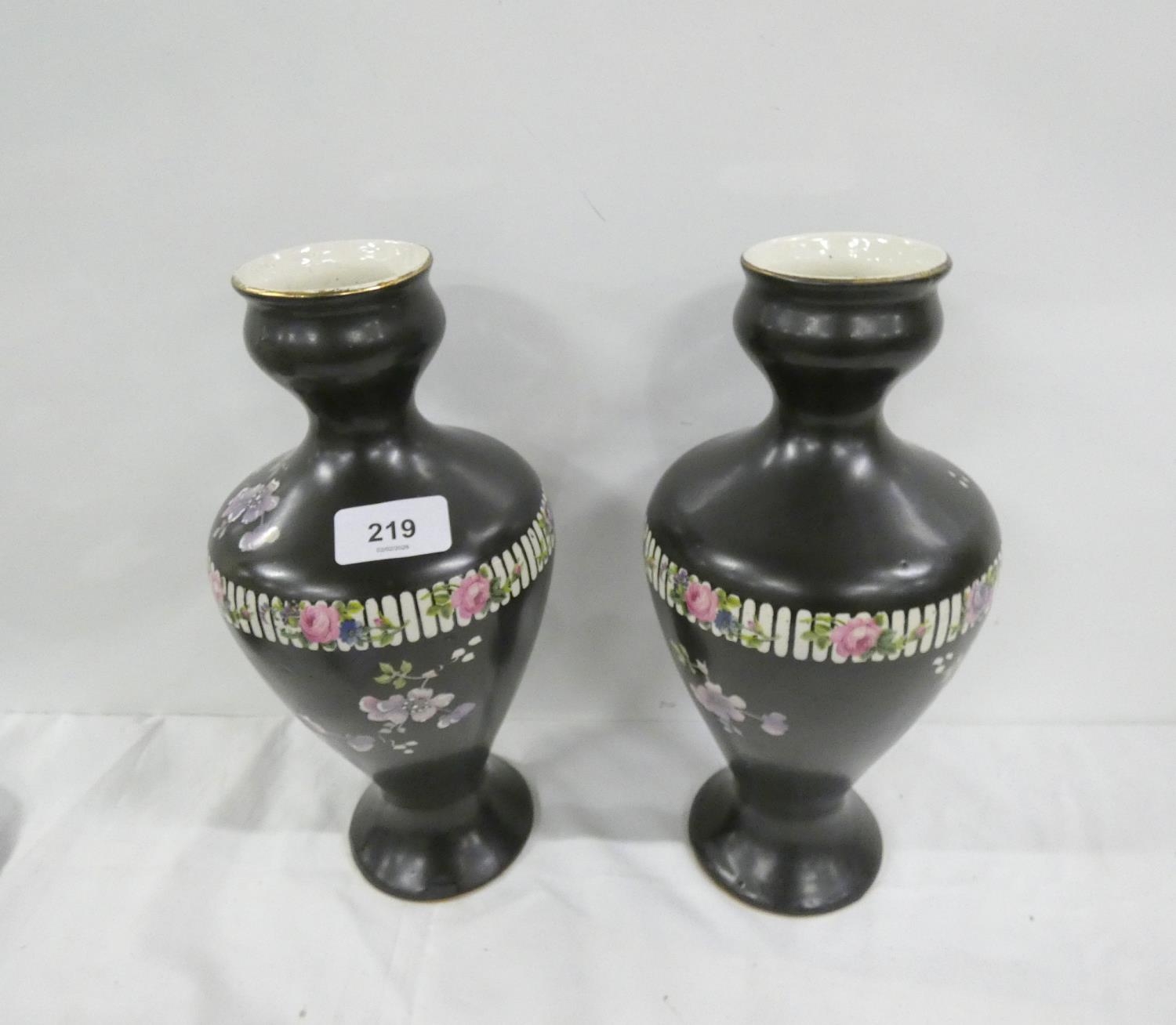 Pair of black and floral pattern large vases. 29cm high