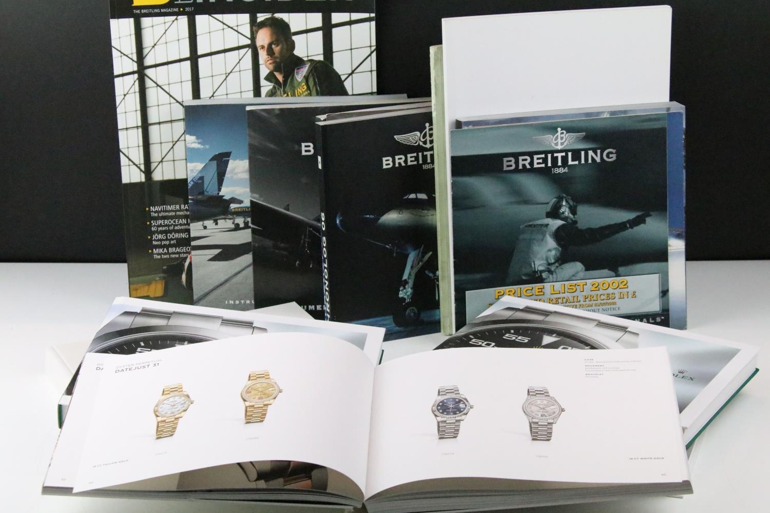 Collection of 13 Rolex & Breitling watch catalogues, plus Breitling price lists, etc