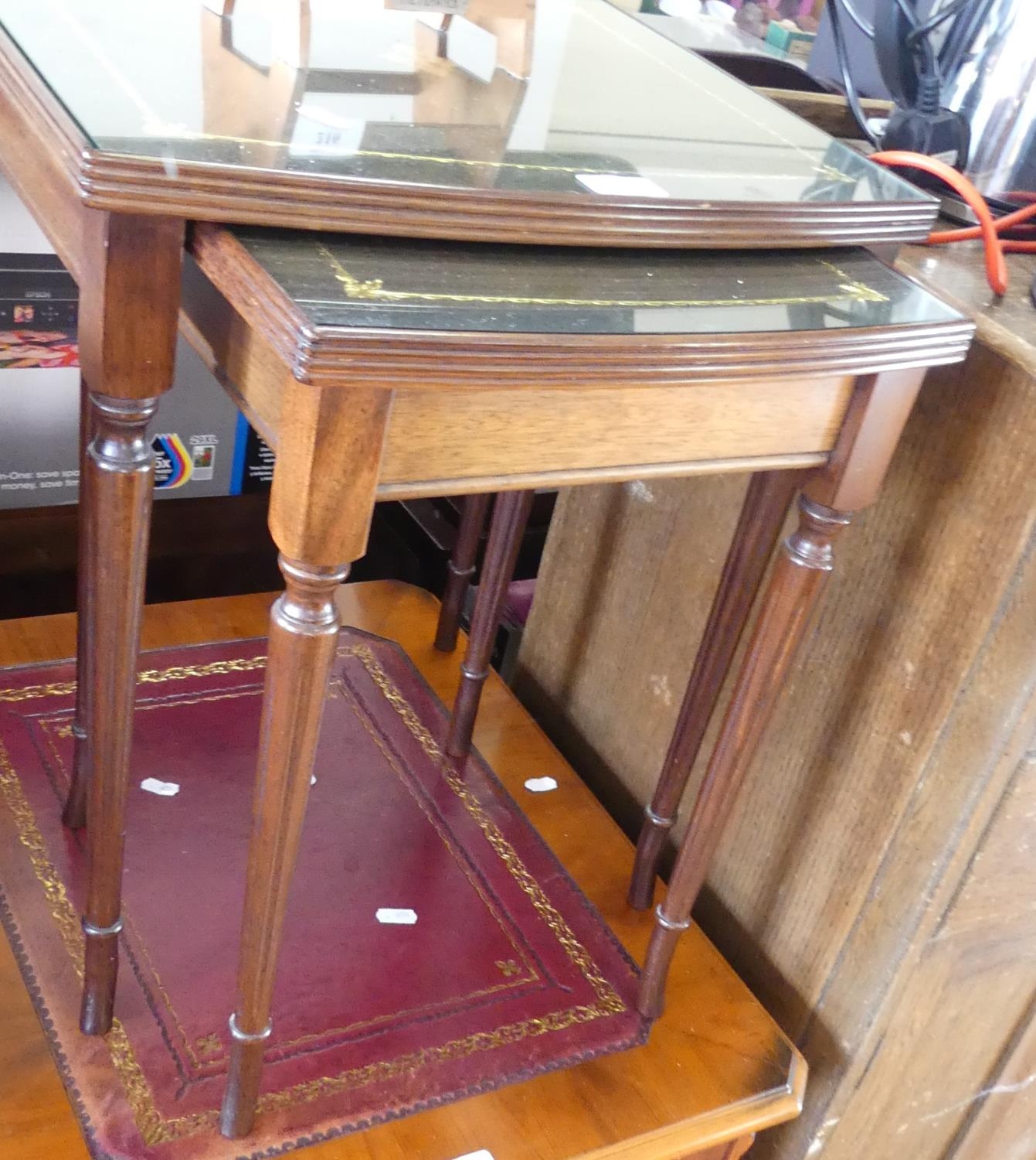 Mahogany Leather Top Nest of 2 Tables