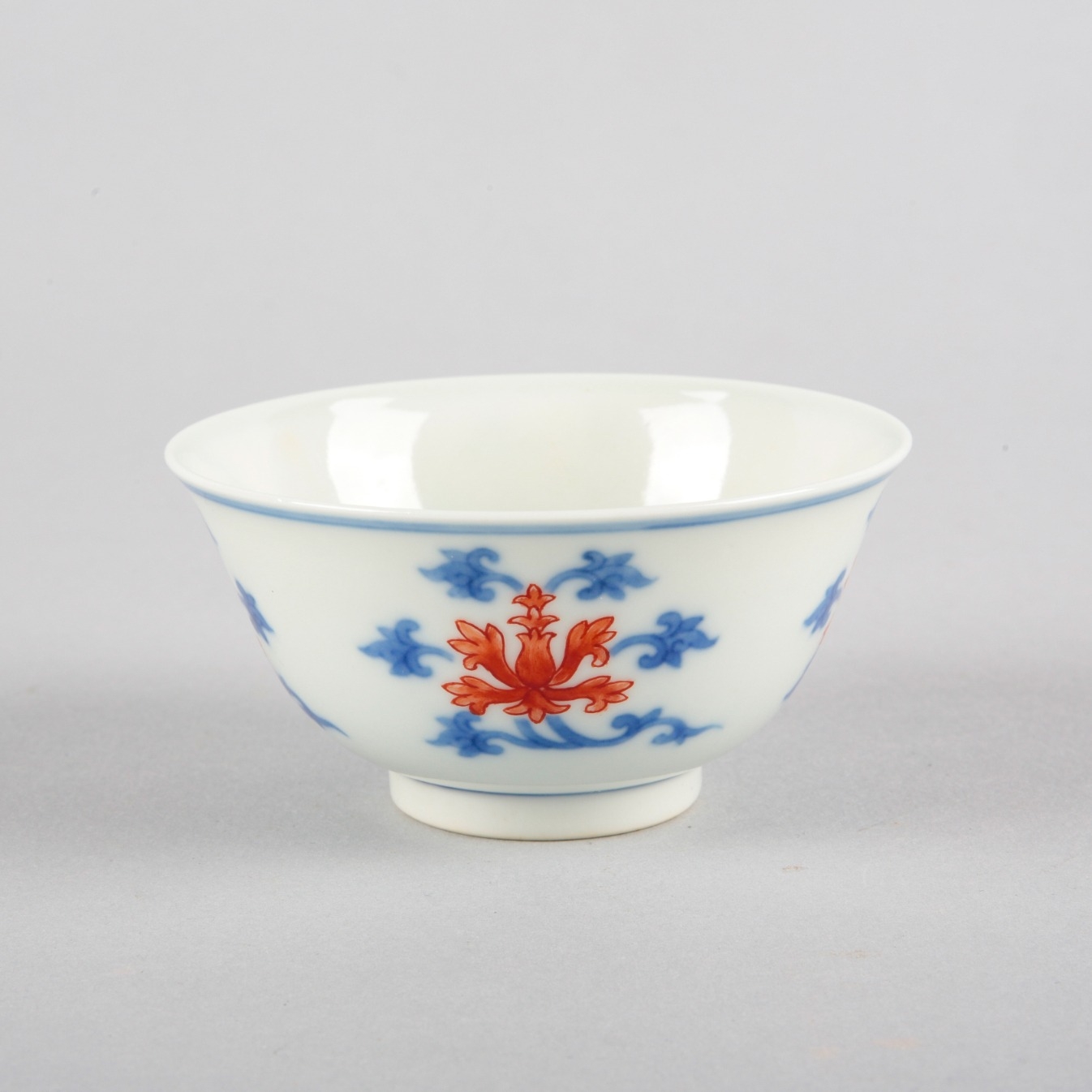 A CHINESE PORCELAIN BLUE, WHITE AND RED 'LOTUS' BOWL