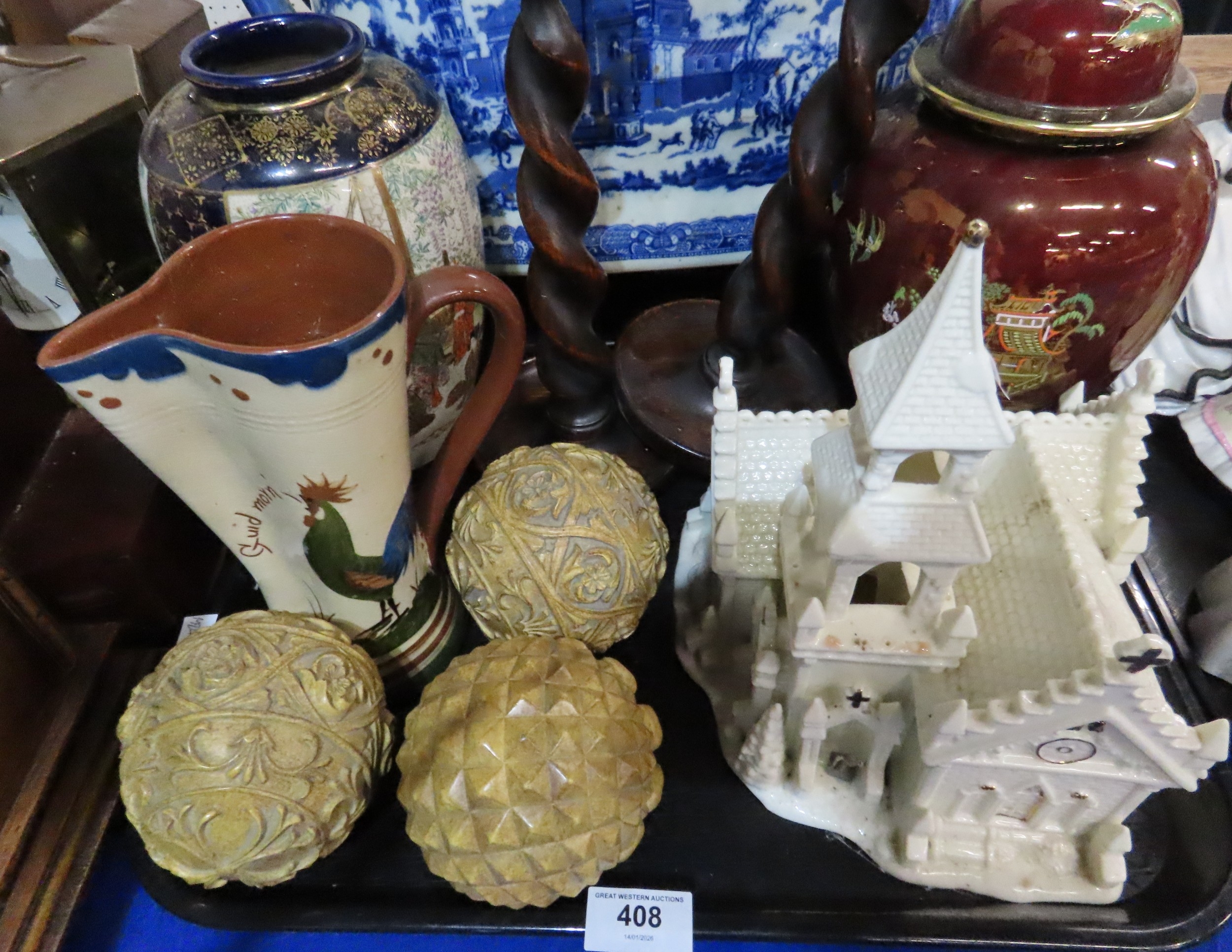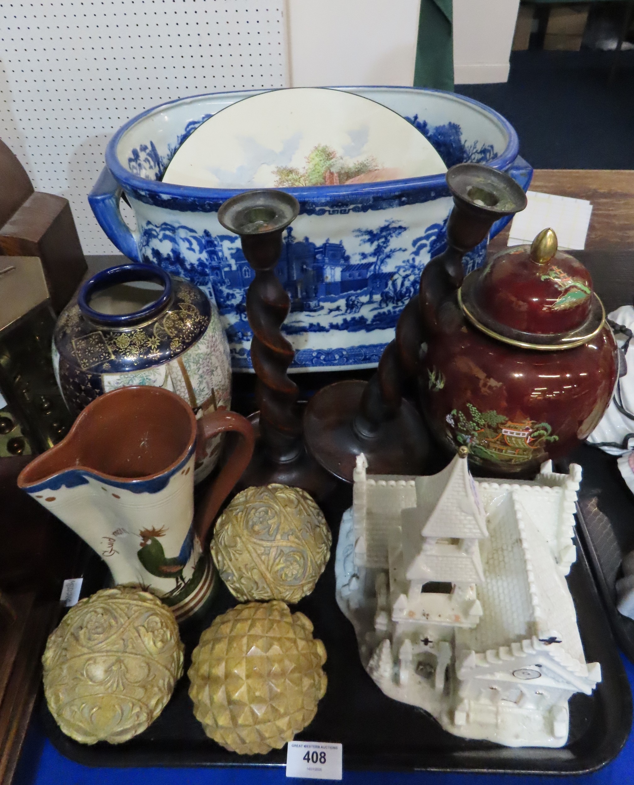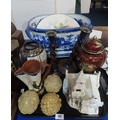 A satsuma vase, a Carlton Ware jar and cover, a reproduction foot bath etc