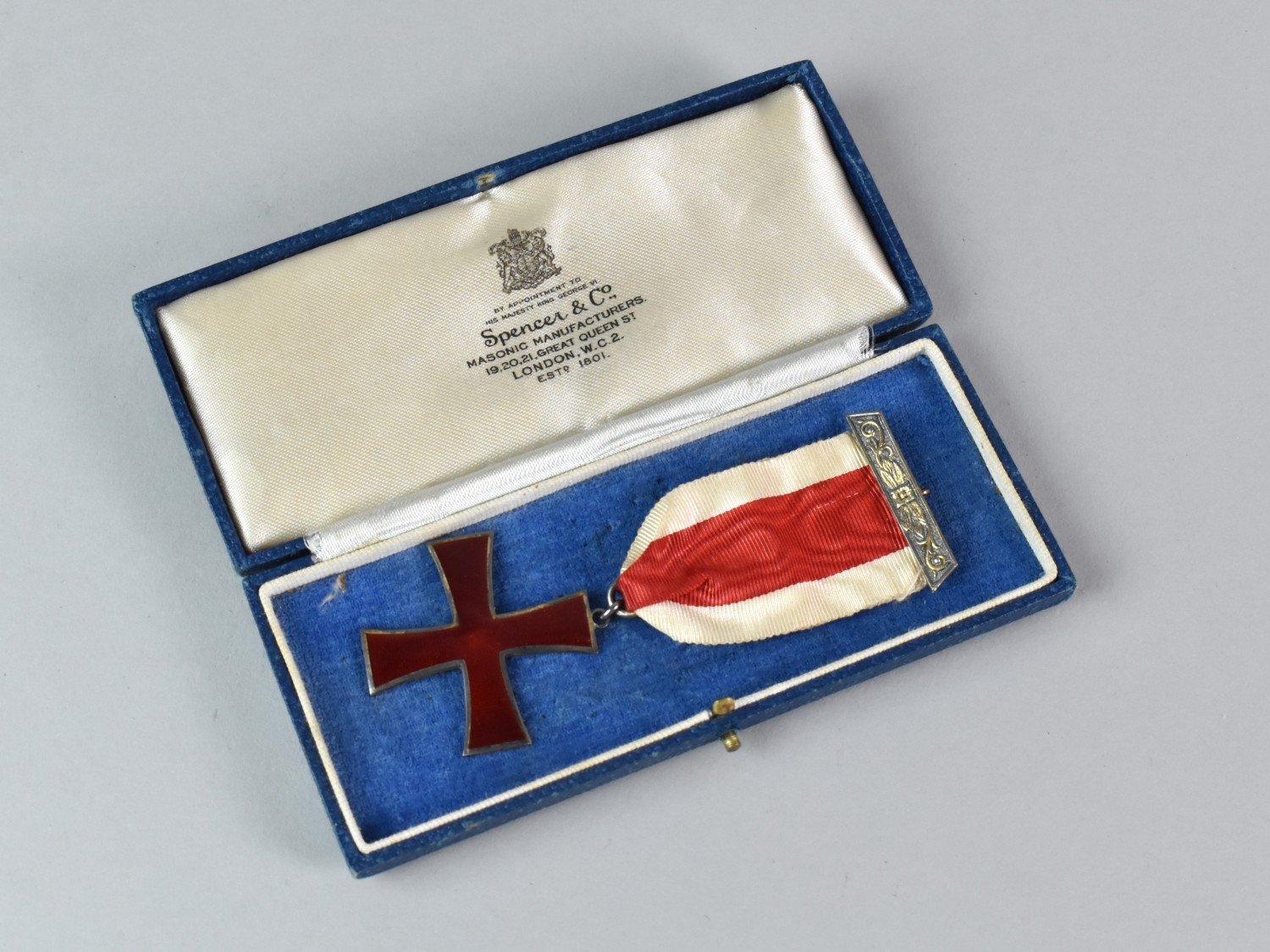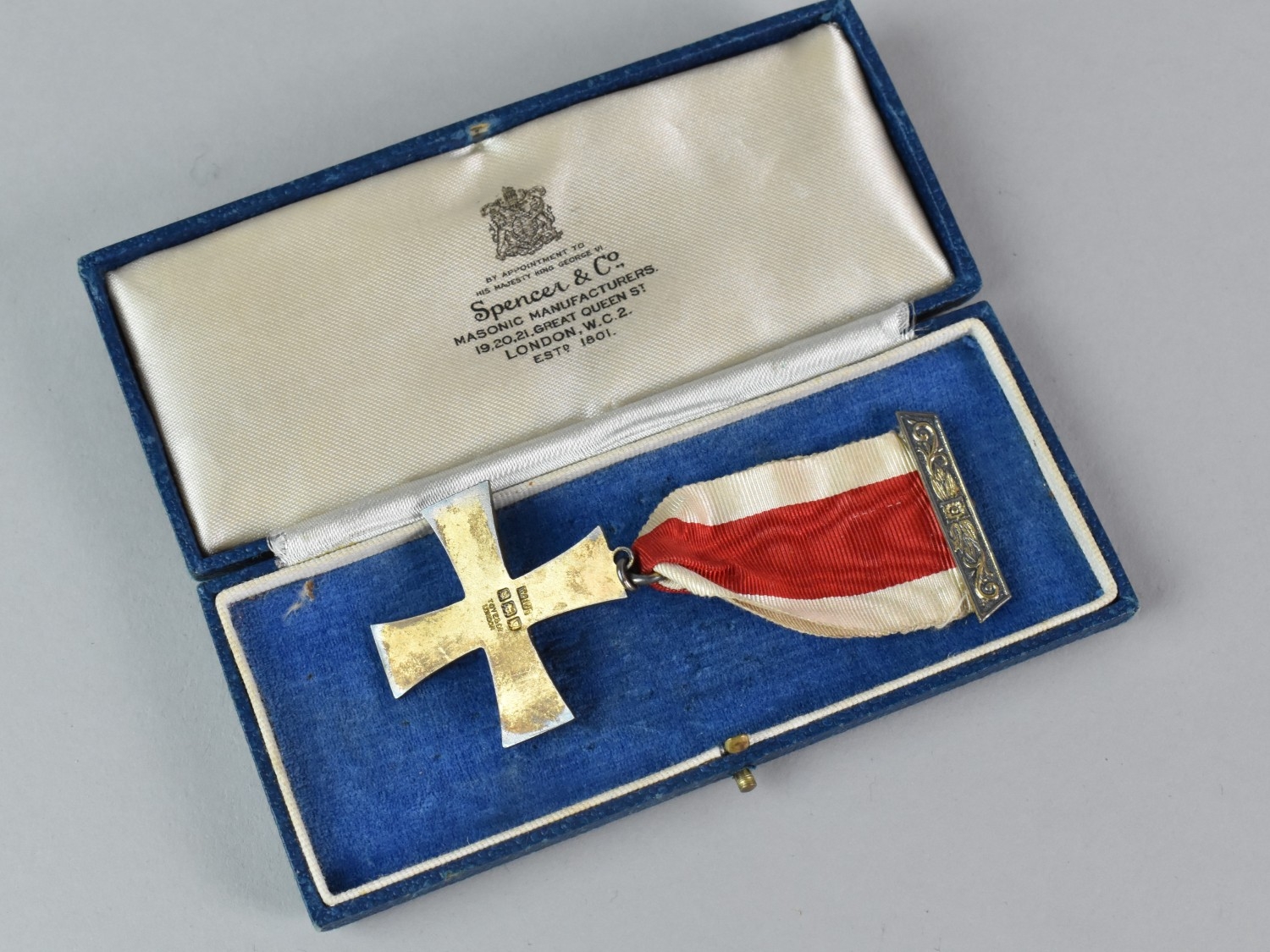 A Gilt Silver Masonic Breast Jewel, Knights Order of The Red Cross Type, Hallmarked for London 1917 and Makers Mark for Toye and Co, In Fitted Box for Spencer and Co