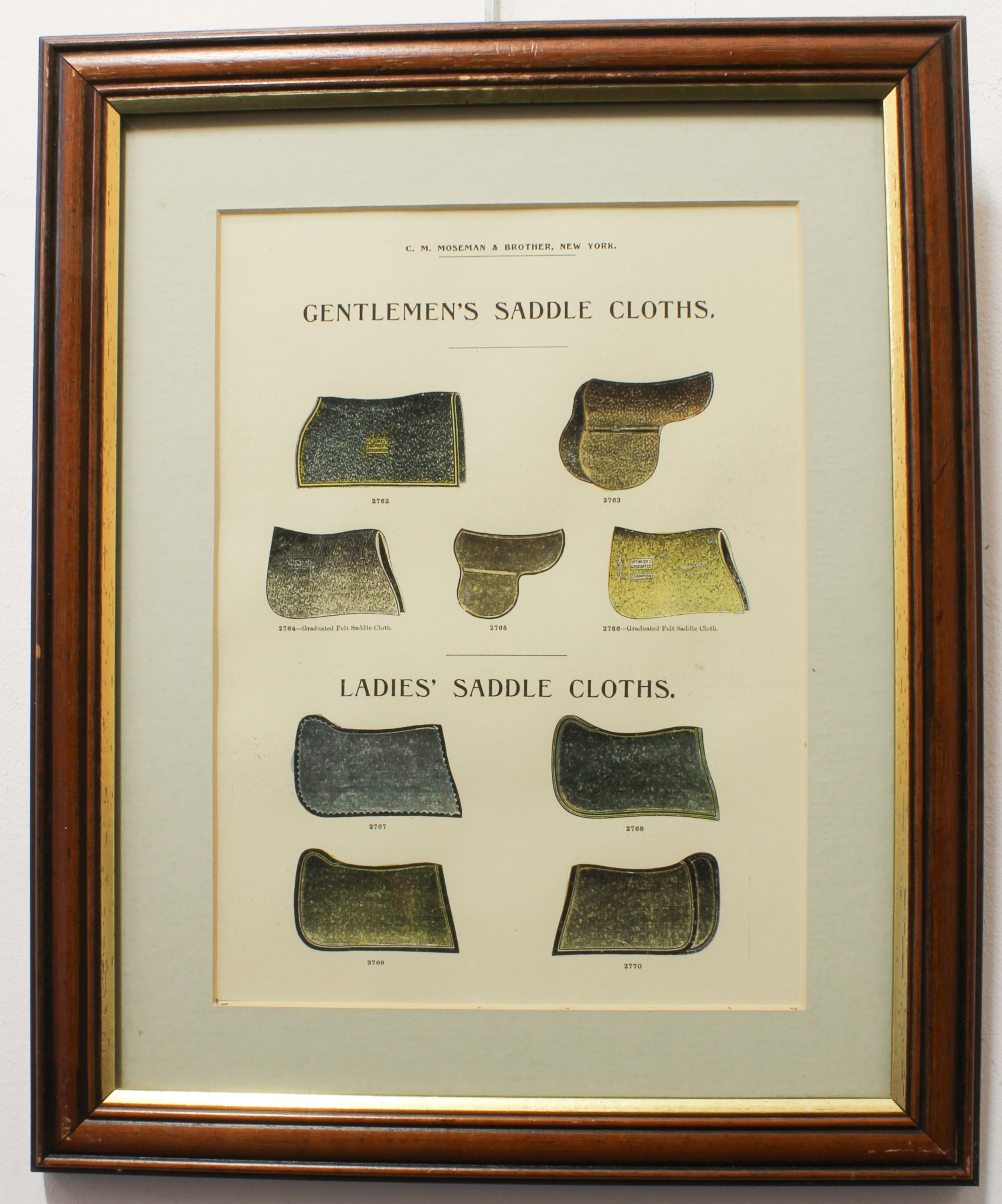 2. a C.M. Moseman advertising poster, 'Gentlemen's Saddle Cloths' (frames 43.25 x 31.5 cm)