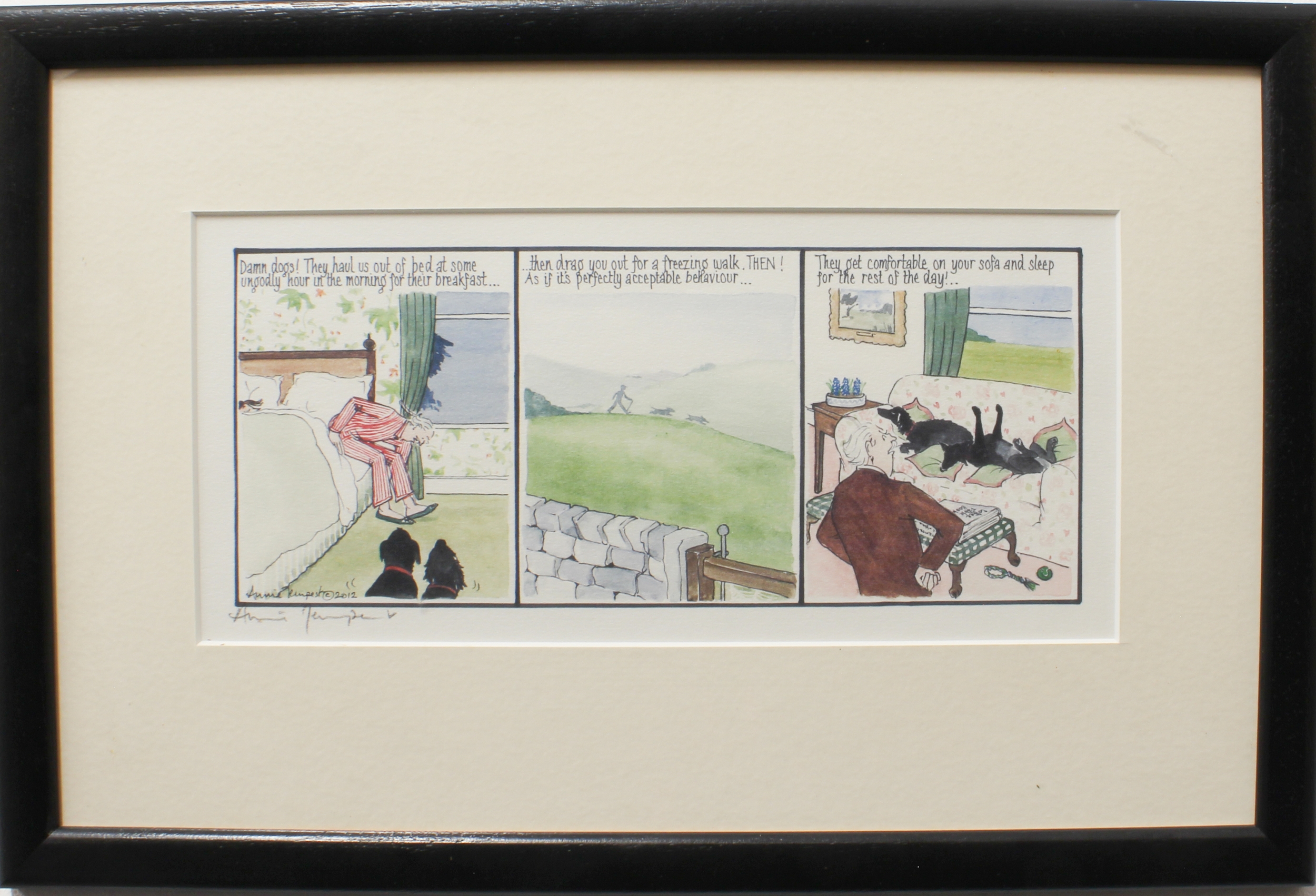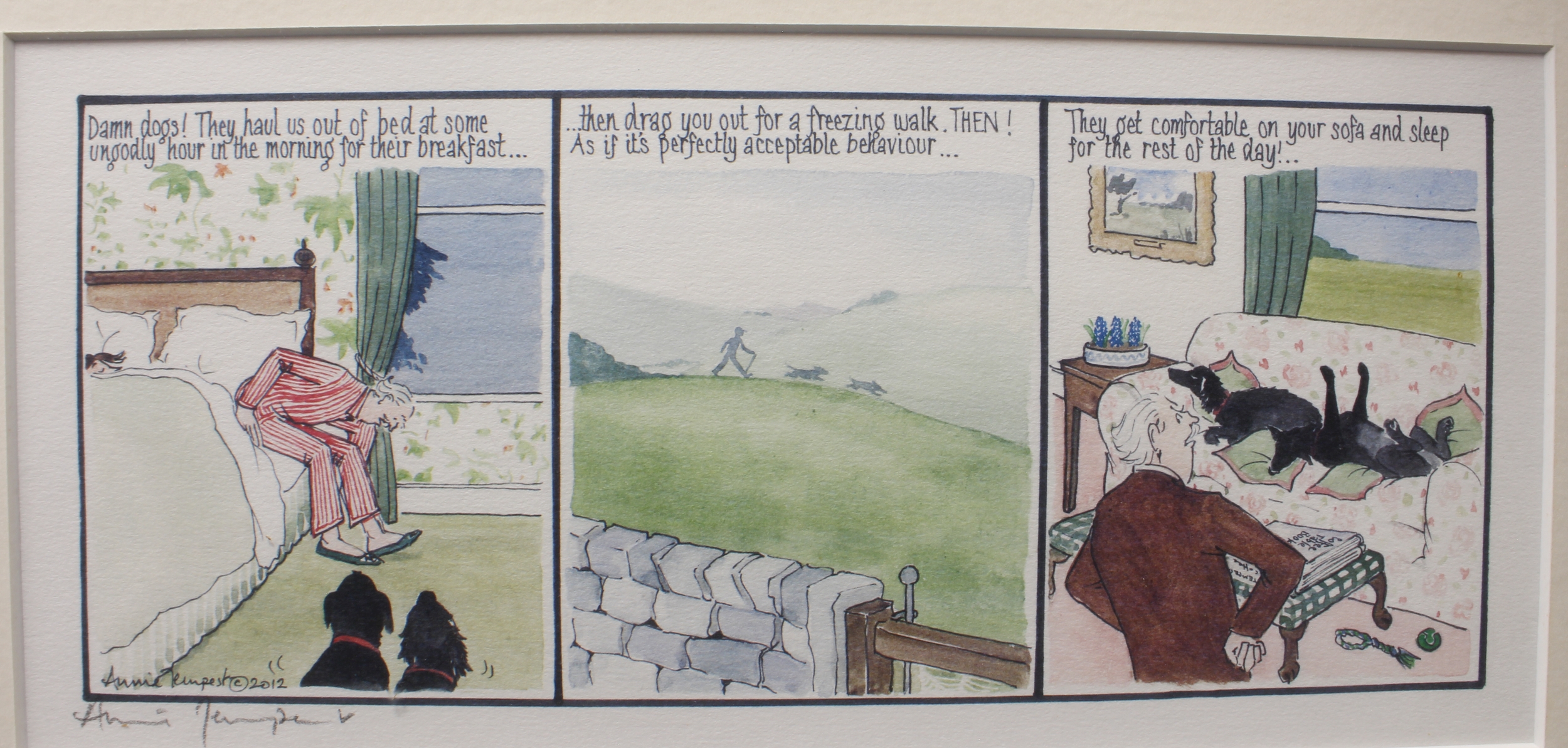 3. After ANNIE TEMPEST - 'Tottering by Gently - Damned dogs!', signed in pencil. (Frame 29 x 43 cm).