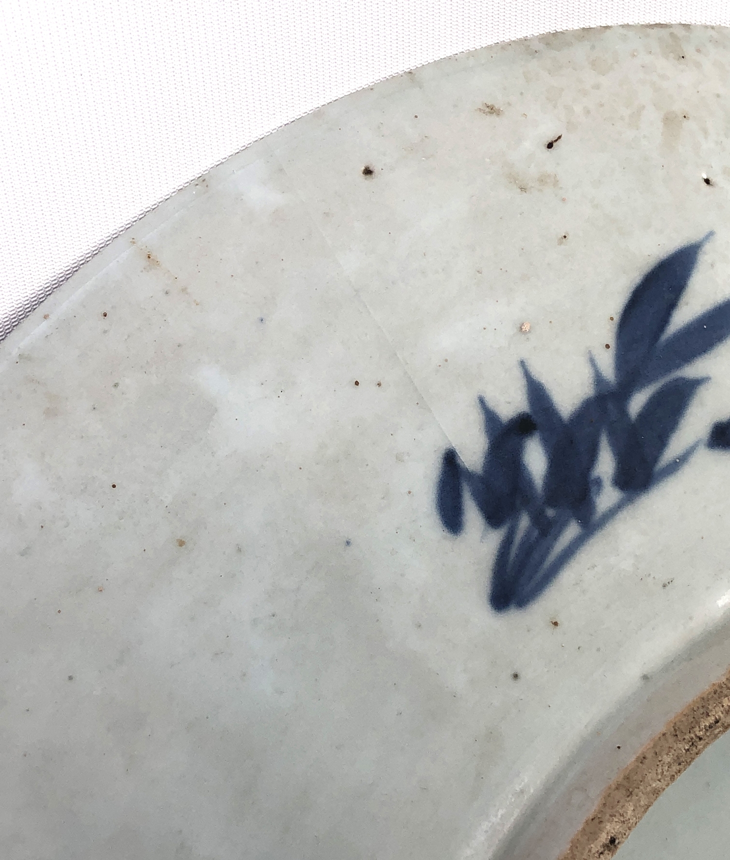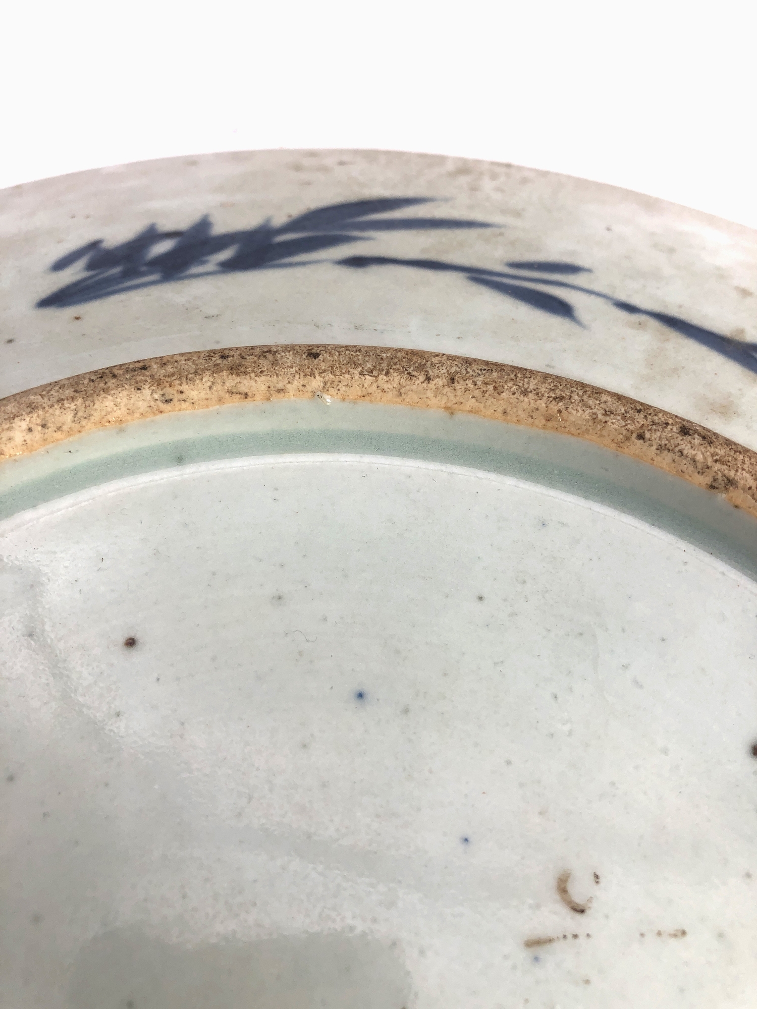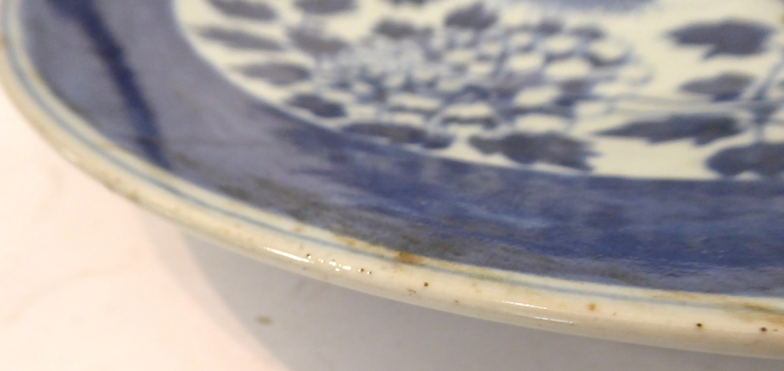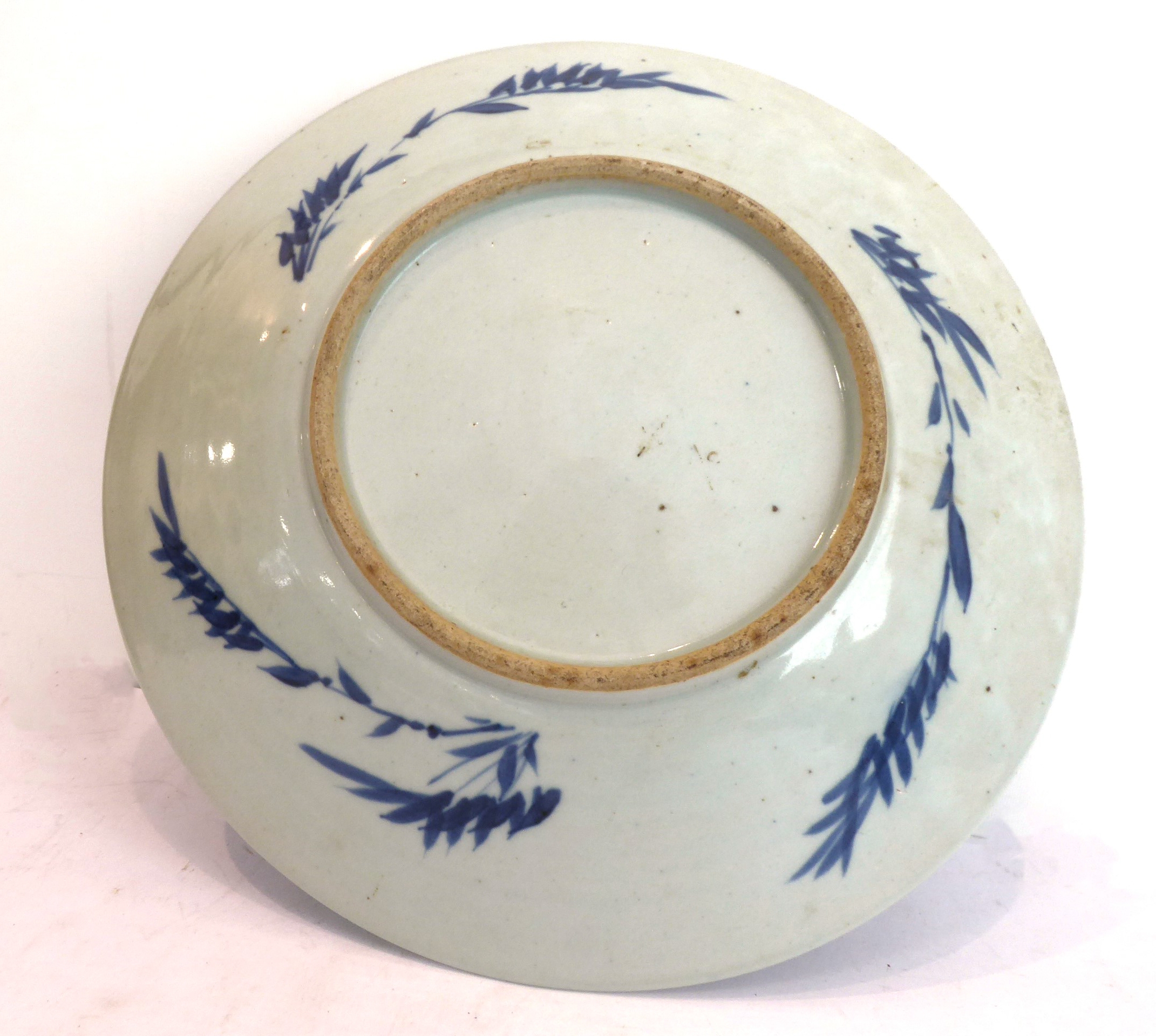 1. a 19th century Chinese blue-and-white porcelain charger decorated with exotic birds amongst peony and leaves (37.75 cm in diameter). * Condition: 3in. hairline to rim - visible to both upper and lower surface of the dish. Tiny iron oxide coloured glaze flaw to rim. No other faults or damage. No restoration.