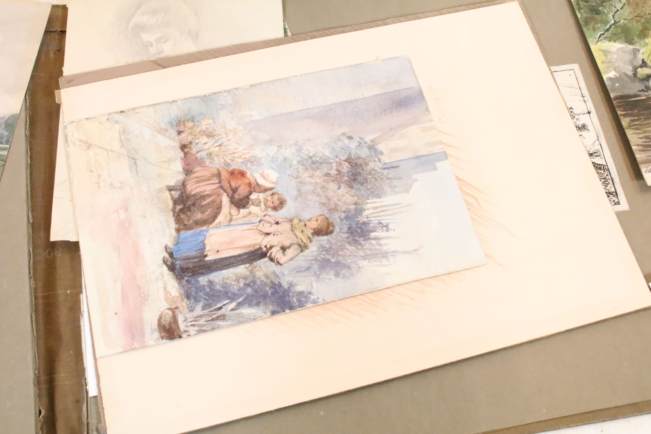 Portfolio of watercolours by various artists, within 61 Silverdale 1900 folio