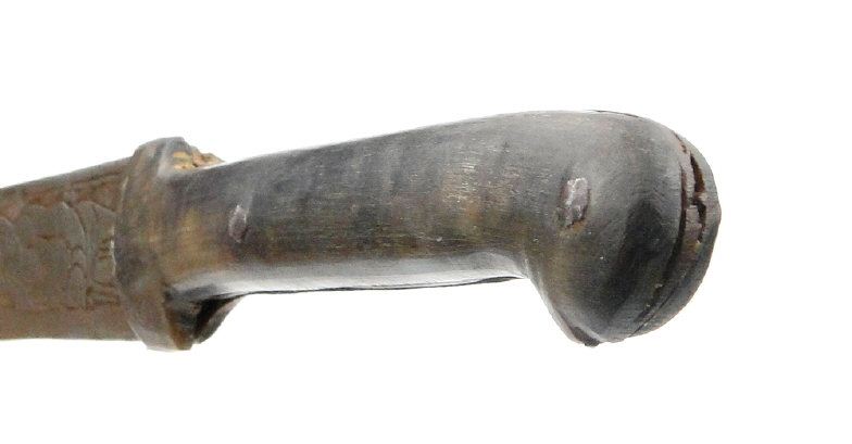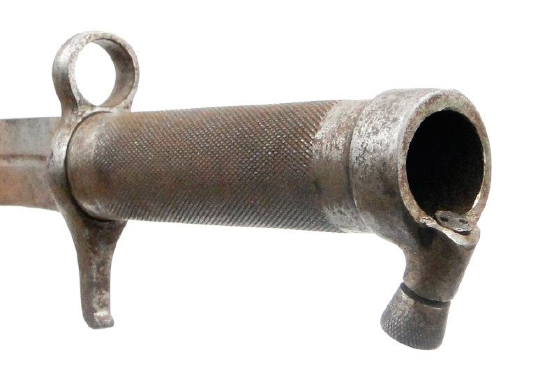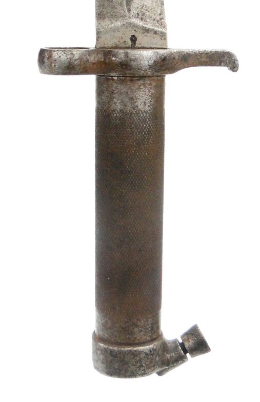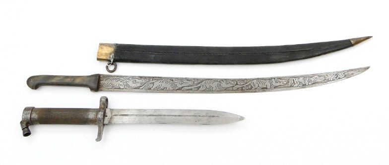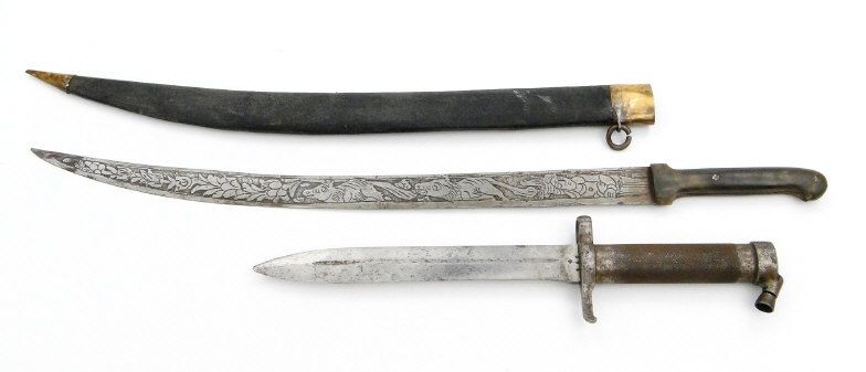 Steel bladed bayonet numbered 946, together with a Far Eastern horn handled hunting knife and sheath, the larger 52cm in length