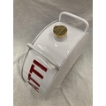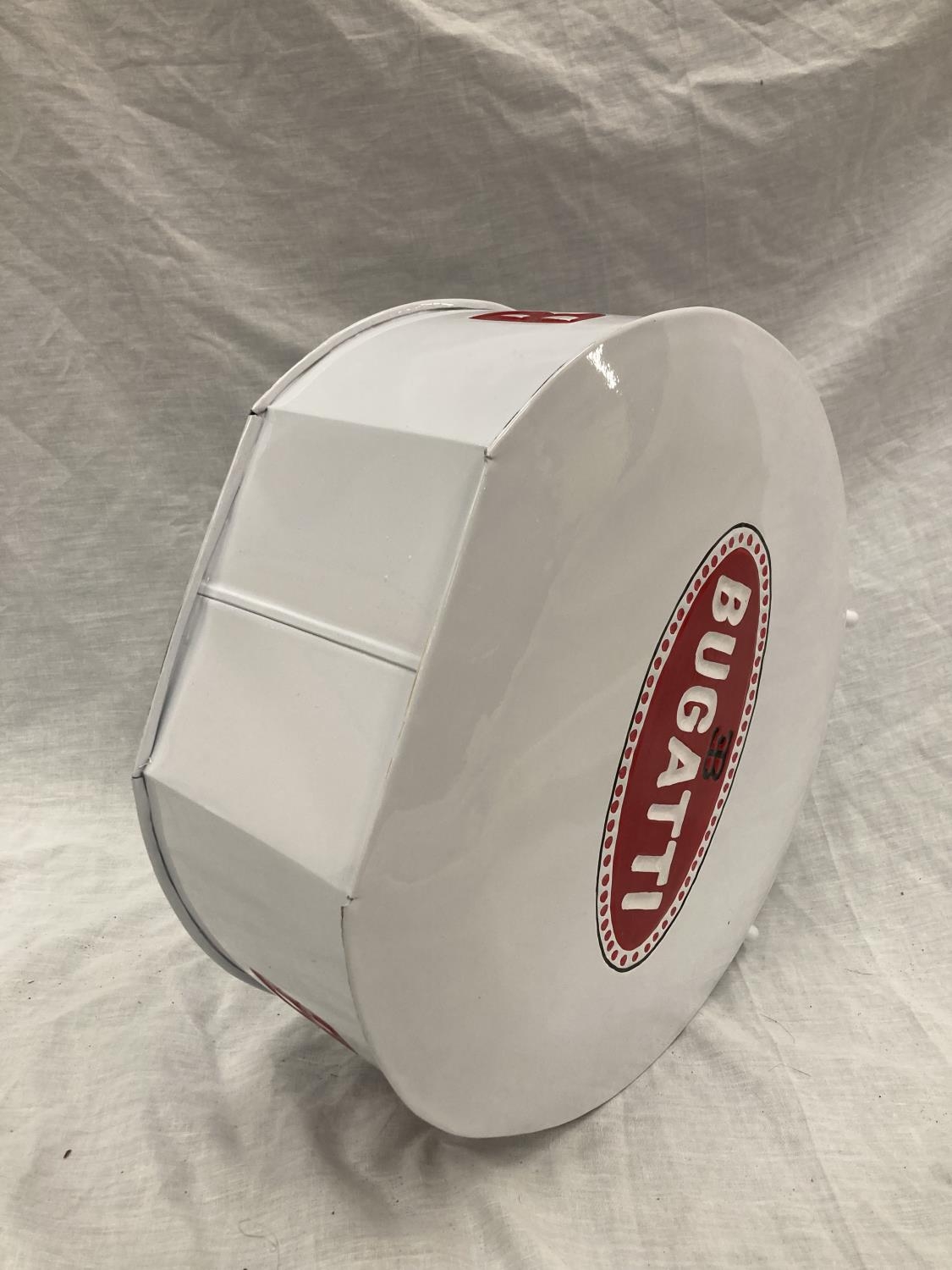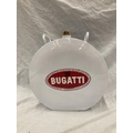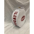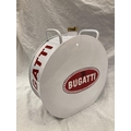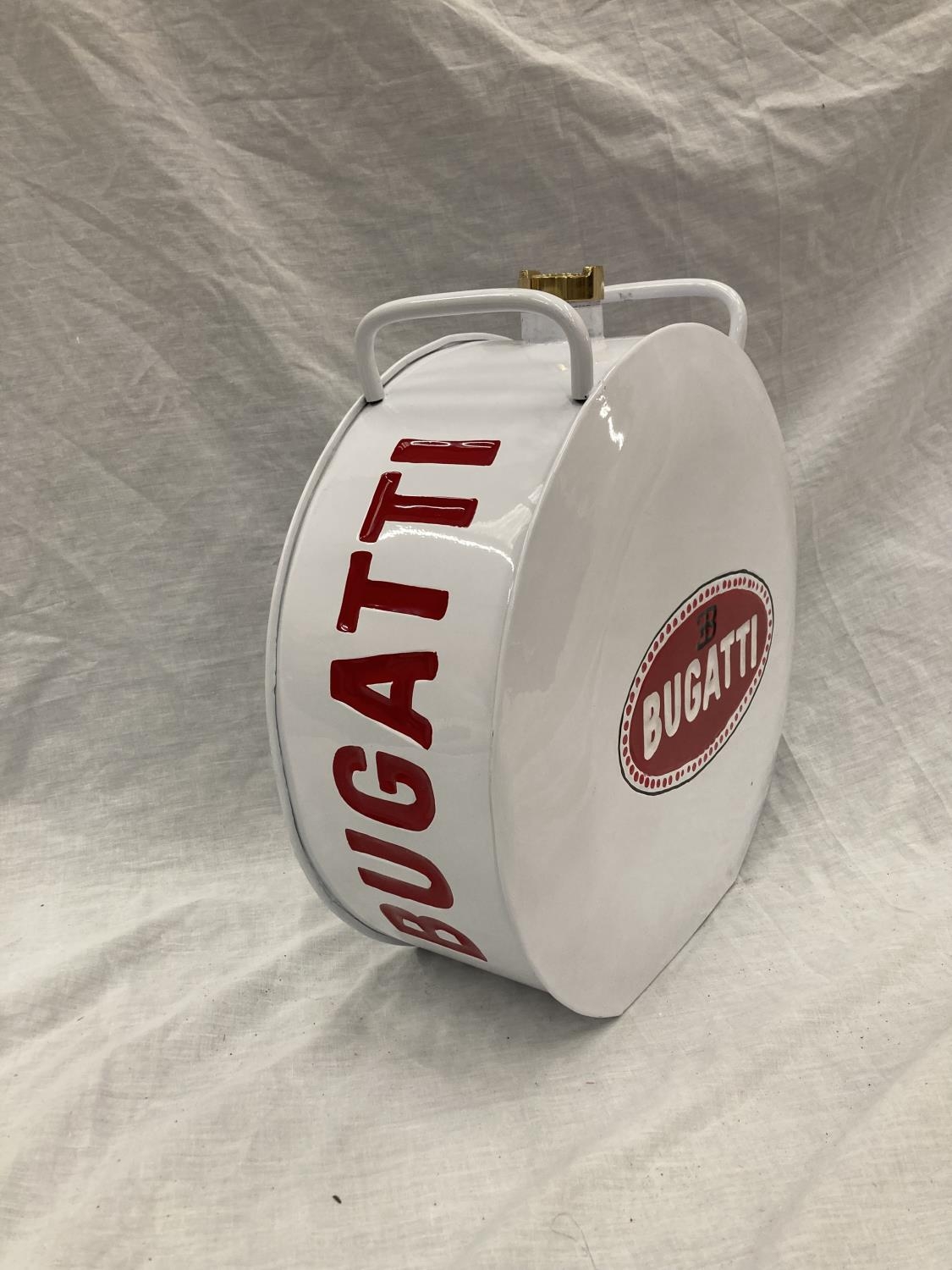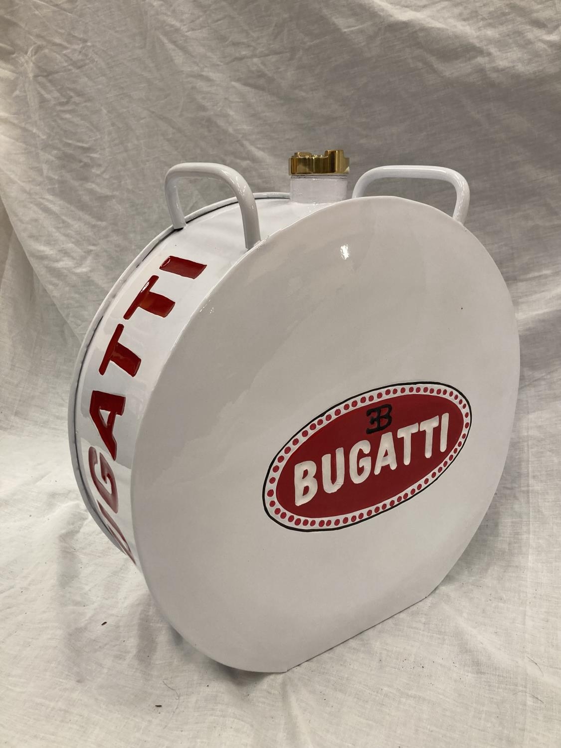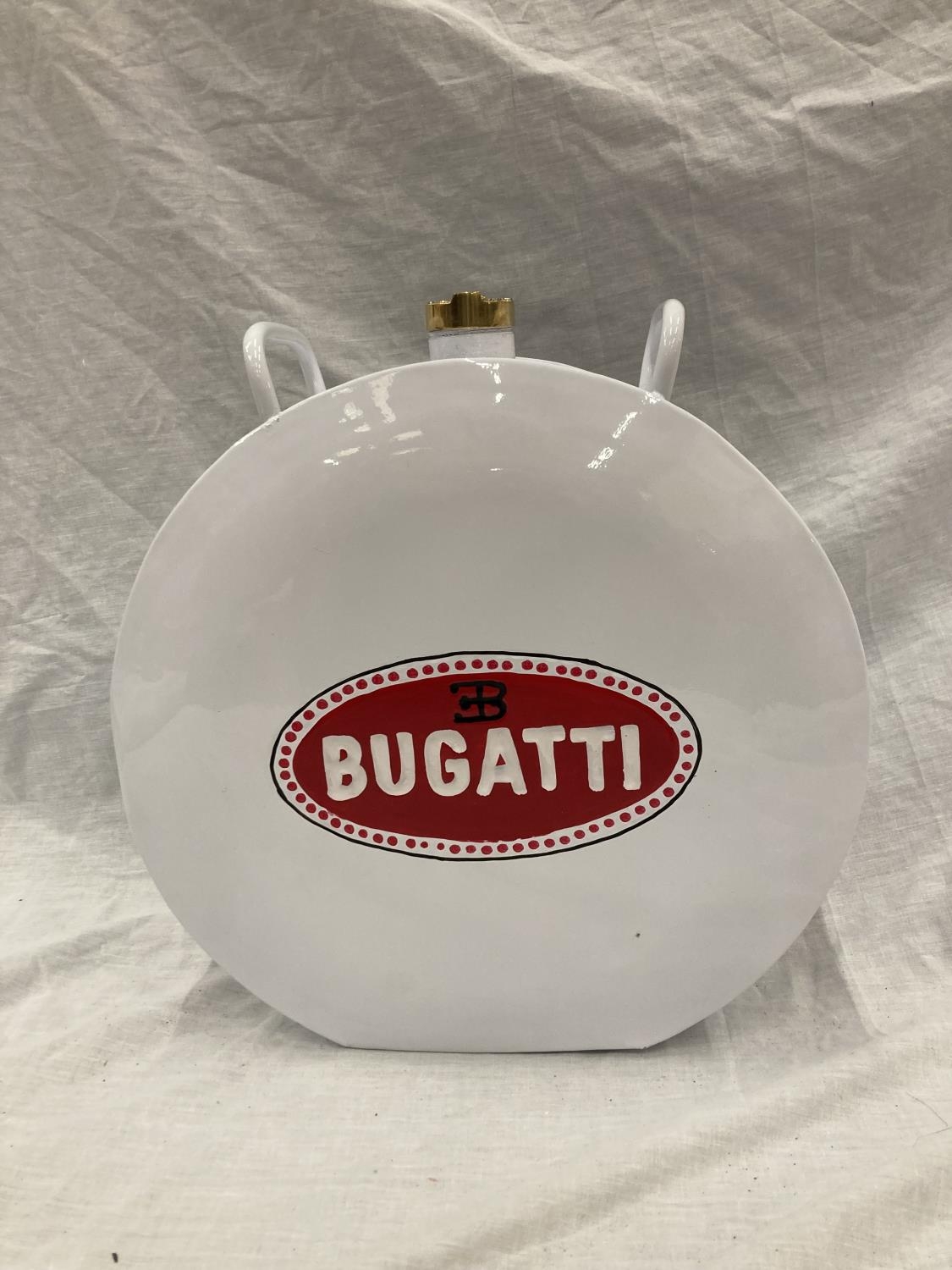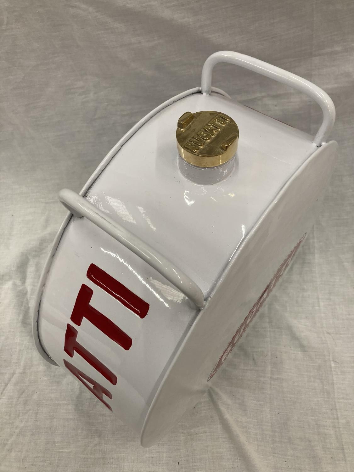 A WHITE BUGATTI PETROL CAN - HEIGHT 37CM