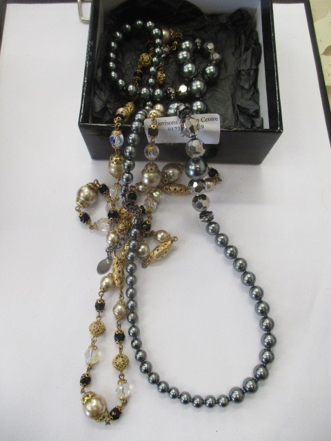 2 LOVELY COSTUME NECKLACES, ONE WITH PEARLS AND GLASS BEADS, THE OTHER BLACK PEARLS
