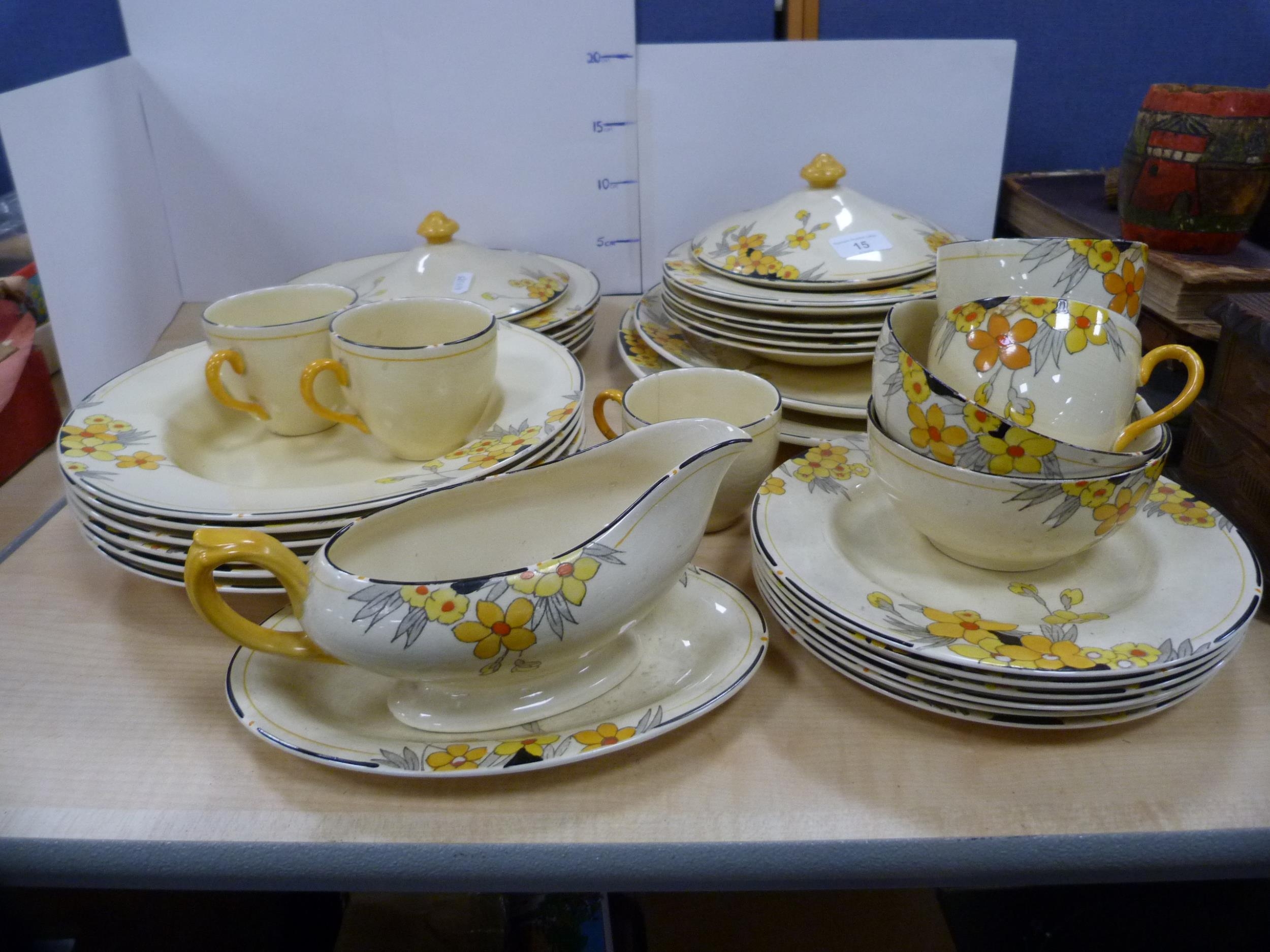 Crown Ducal 'Sunburst' pattern part tea and dinner service.