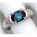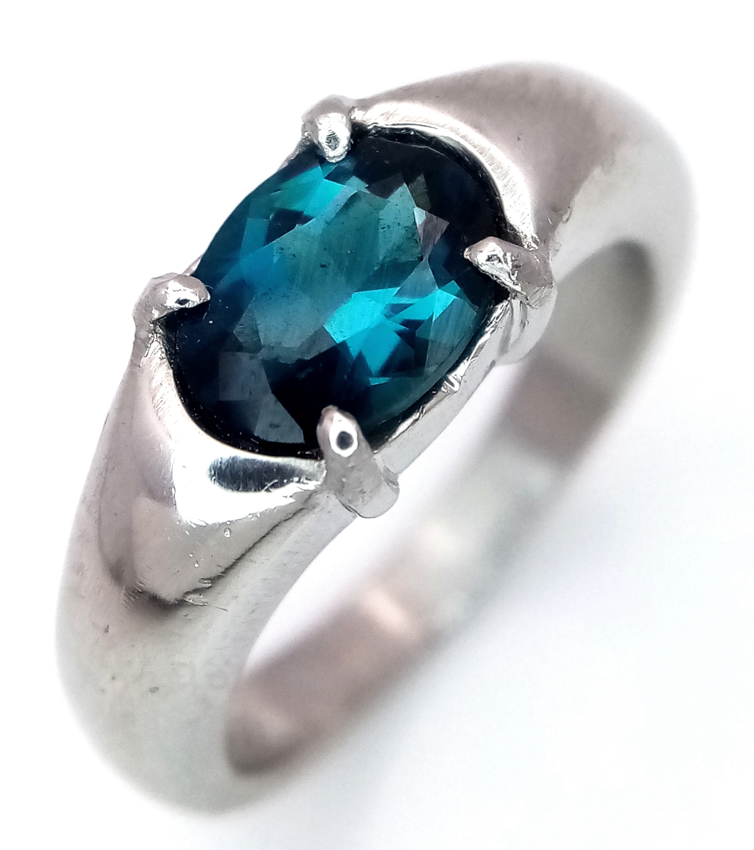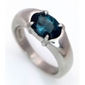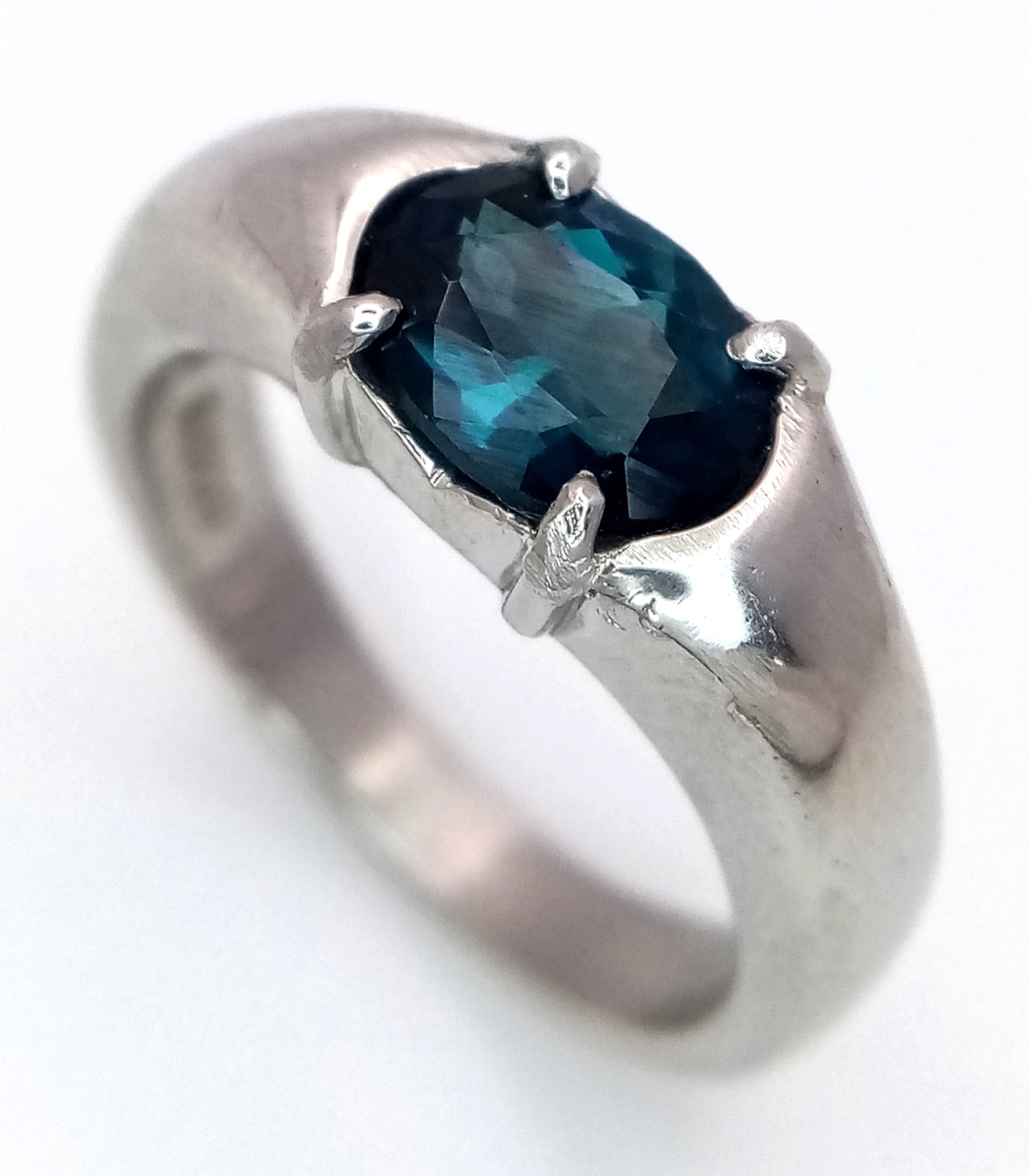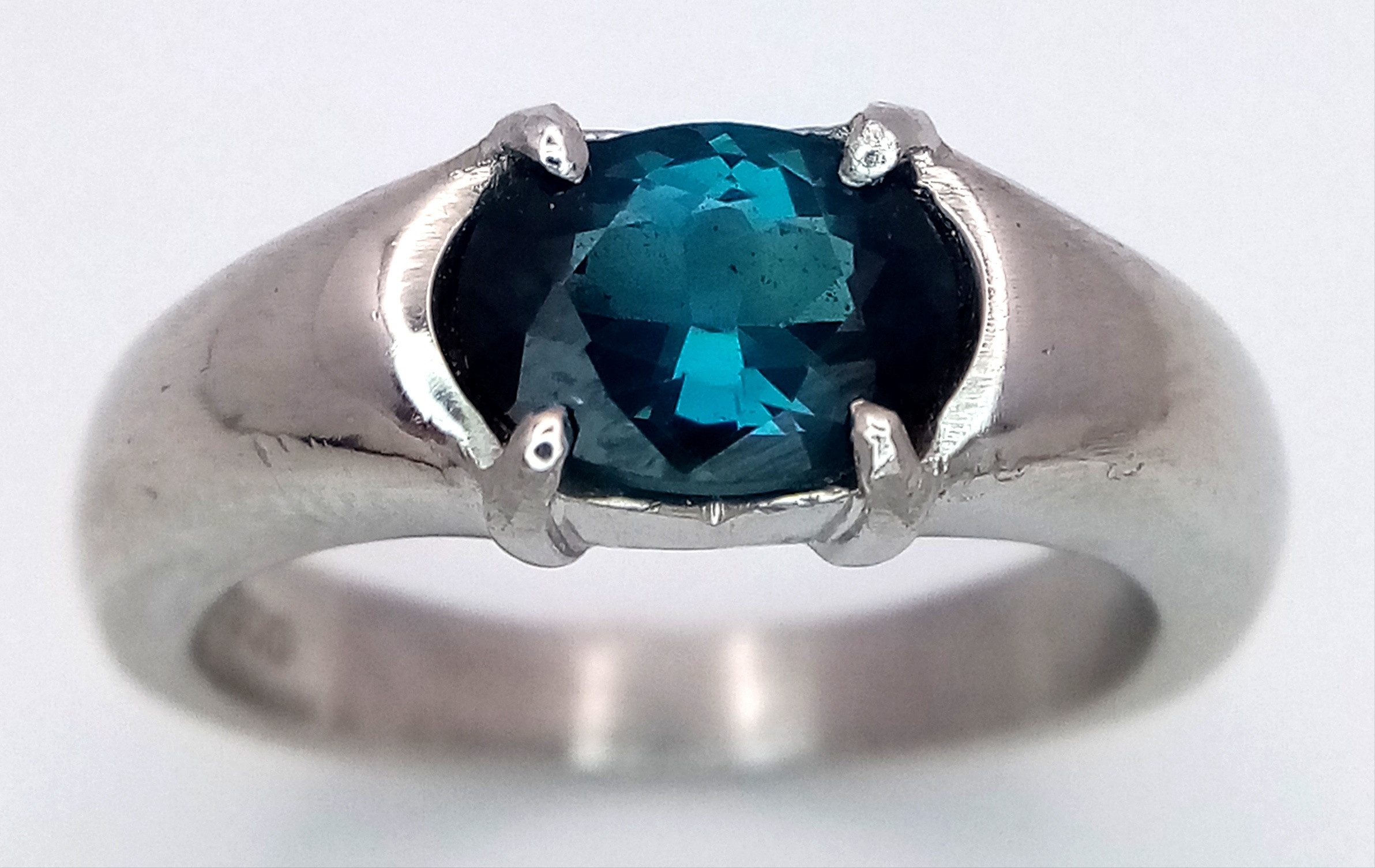 A 900 Platinum, Teal Sapphire Ring. 1.5ct oval cut sapphire.