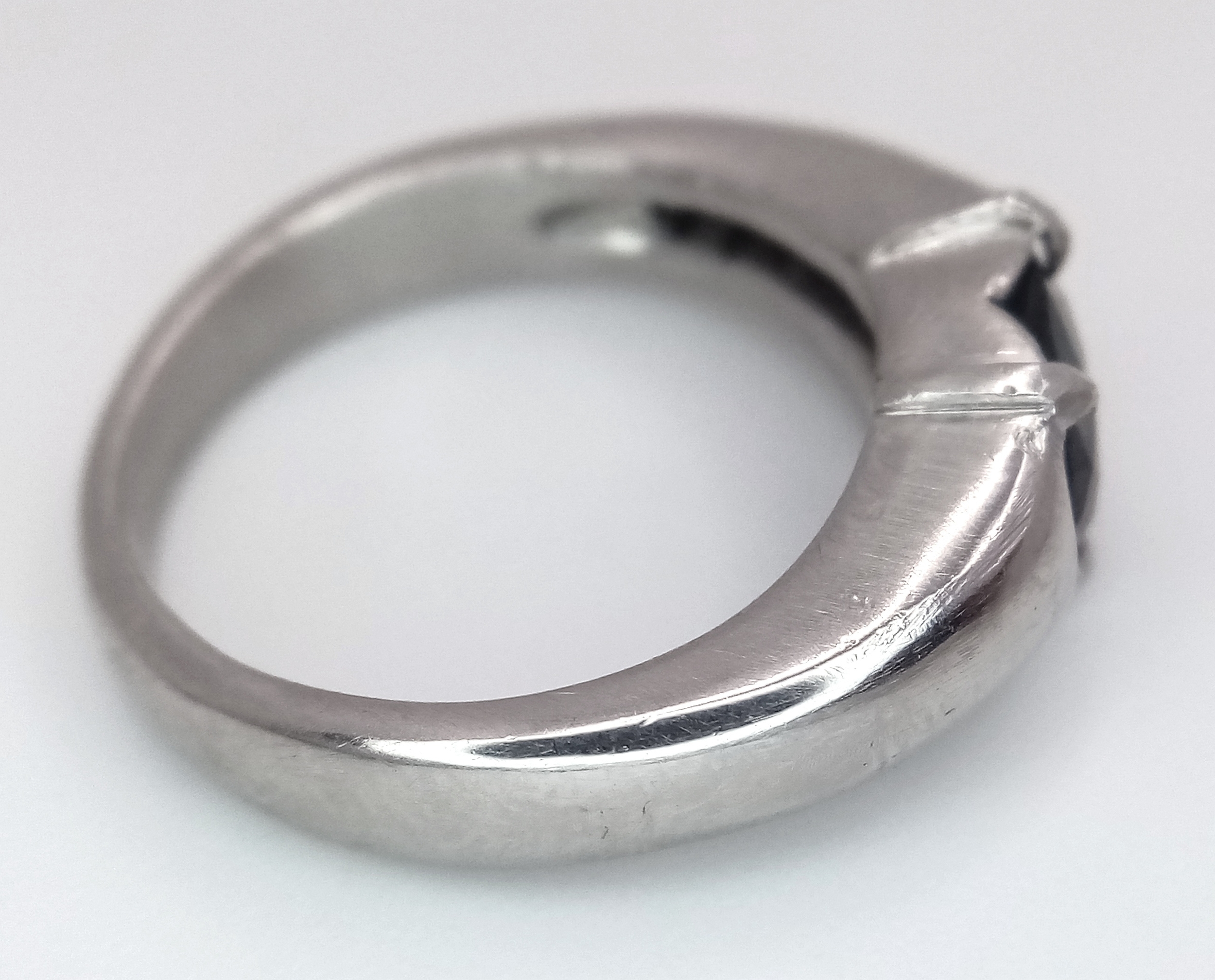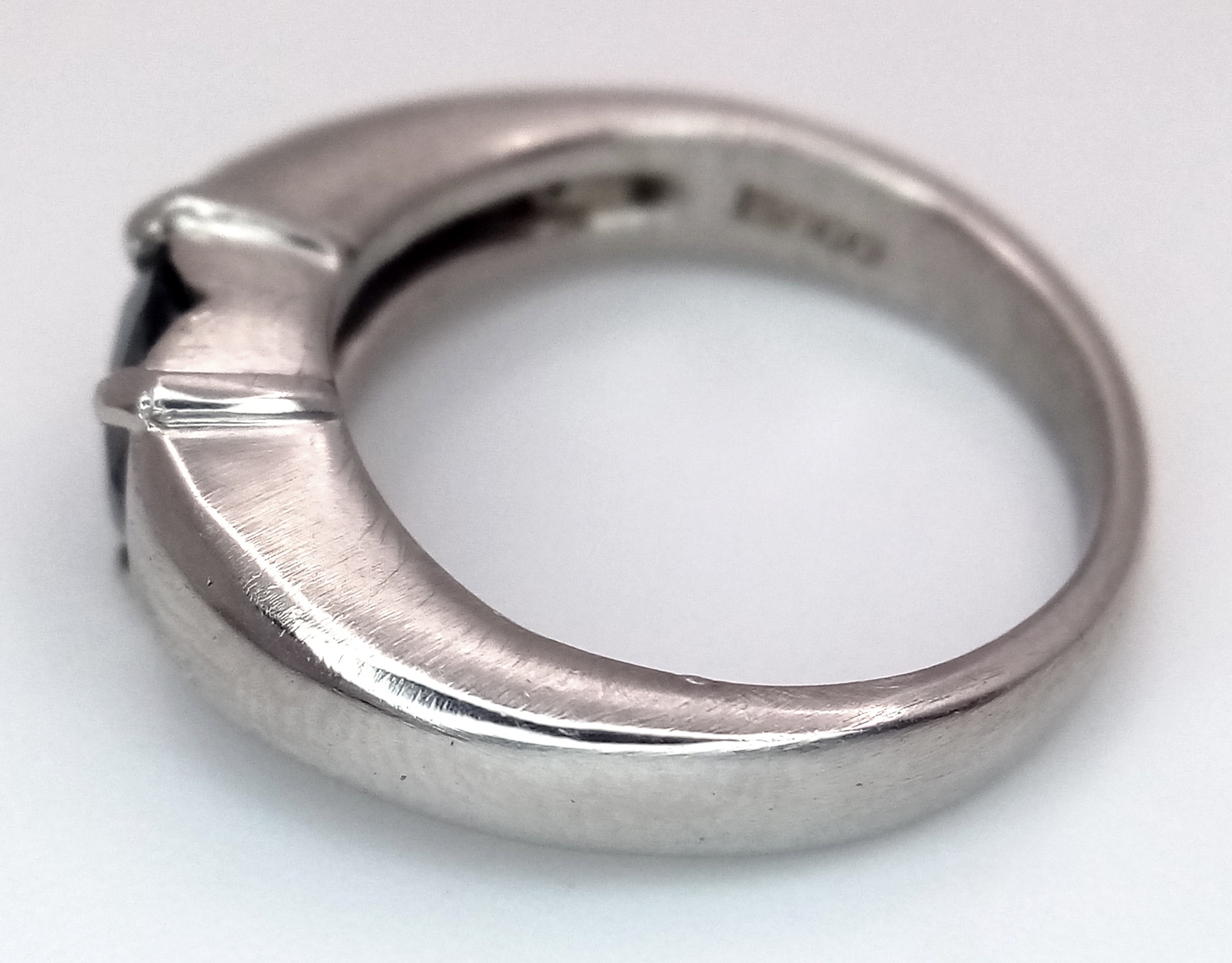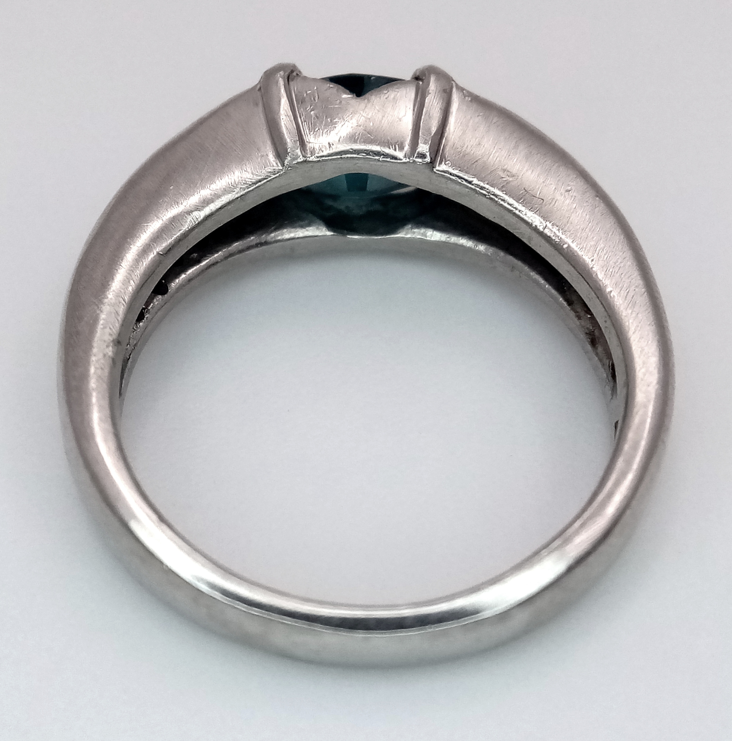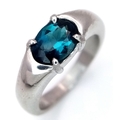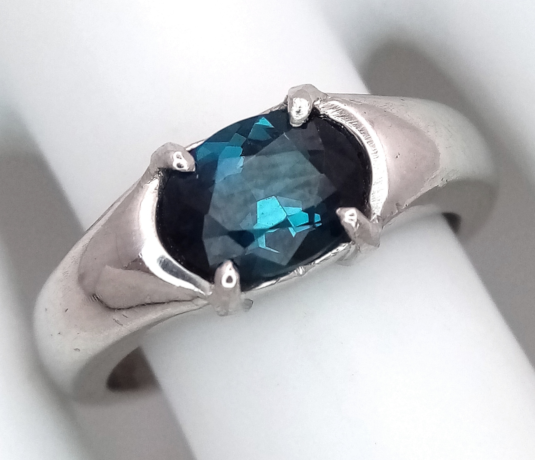 A 900 Platinum, Teal Sapphire Ring. 1.5ct oval cut sapphire.