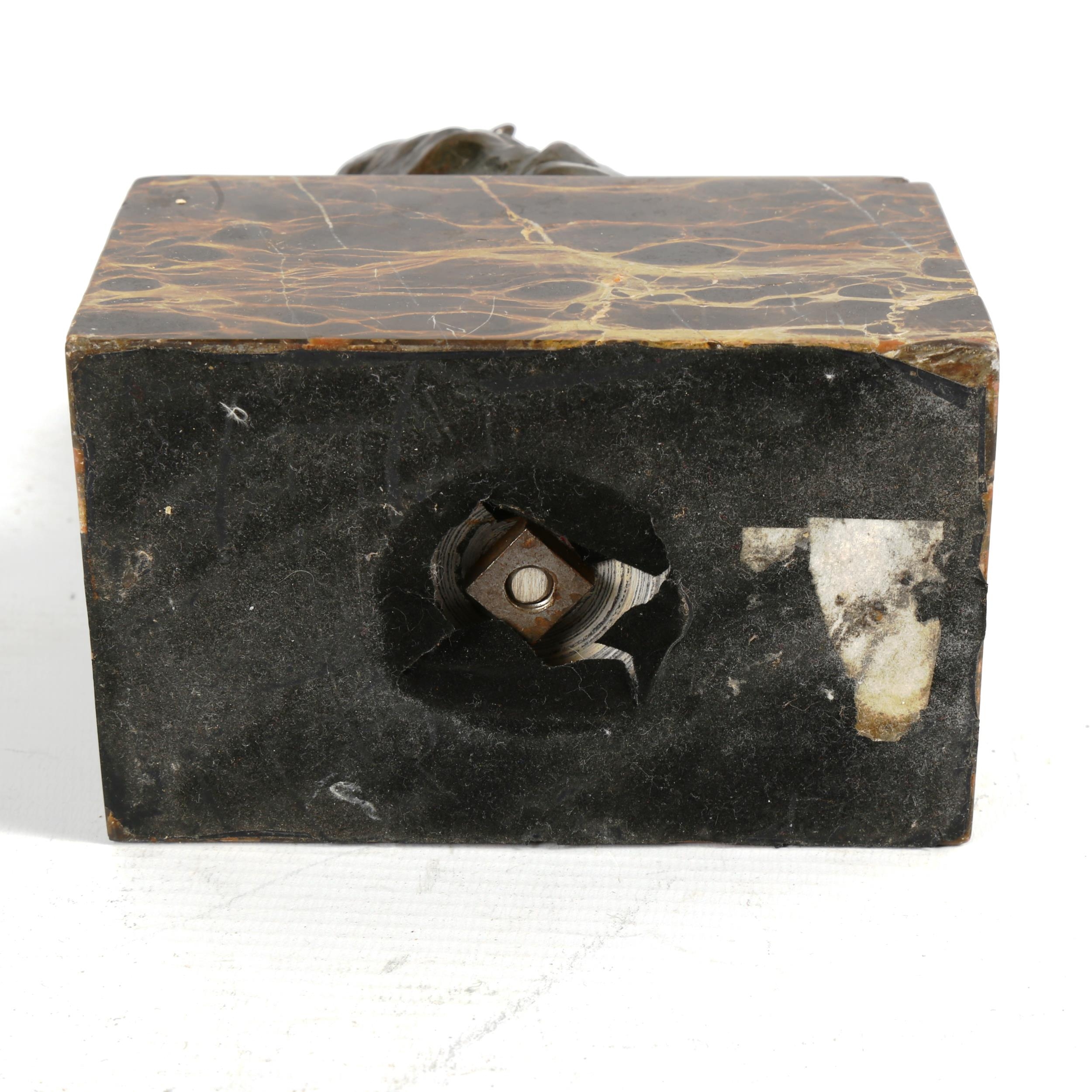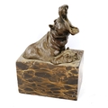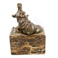 A patinated bronze sculpture of 2 hippos on marble base, unsigned, height 19cm