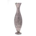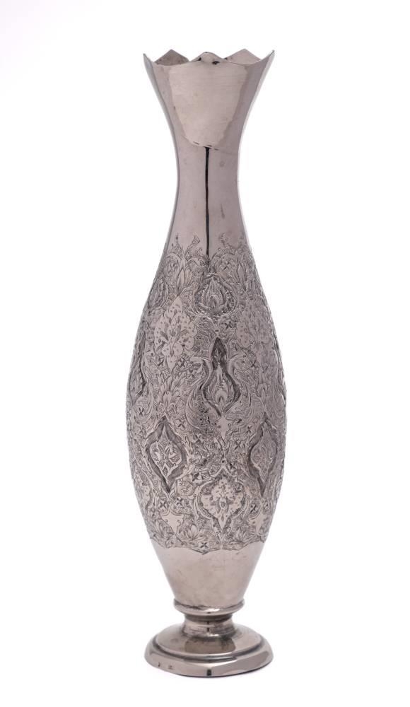 A Middle Eastern silver vase: with flared rim and slender ovoid body with floral decoration raised on a circular foot, 22cm high, 171gms, 5.50ozs