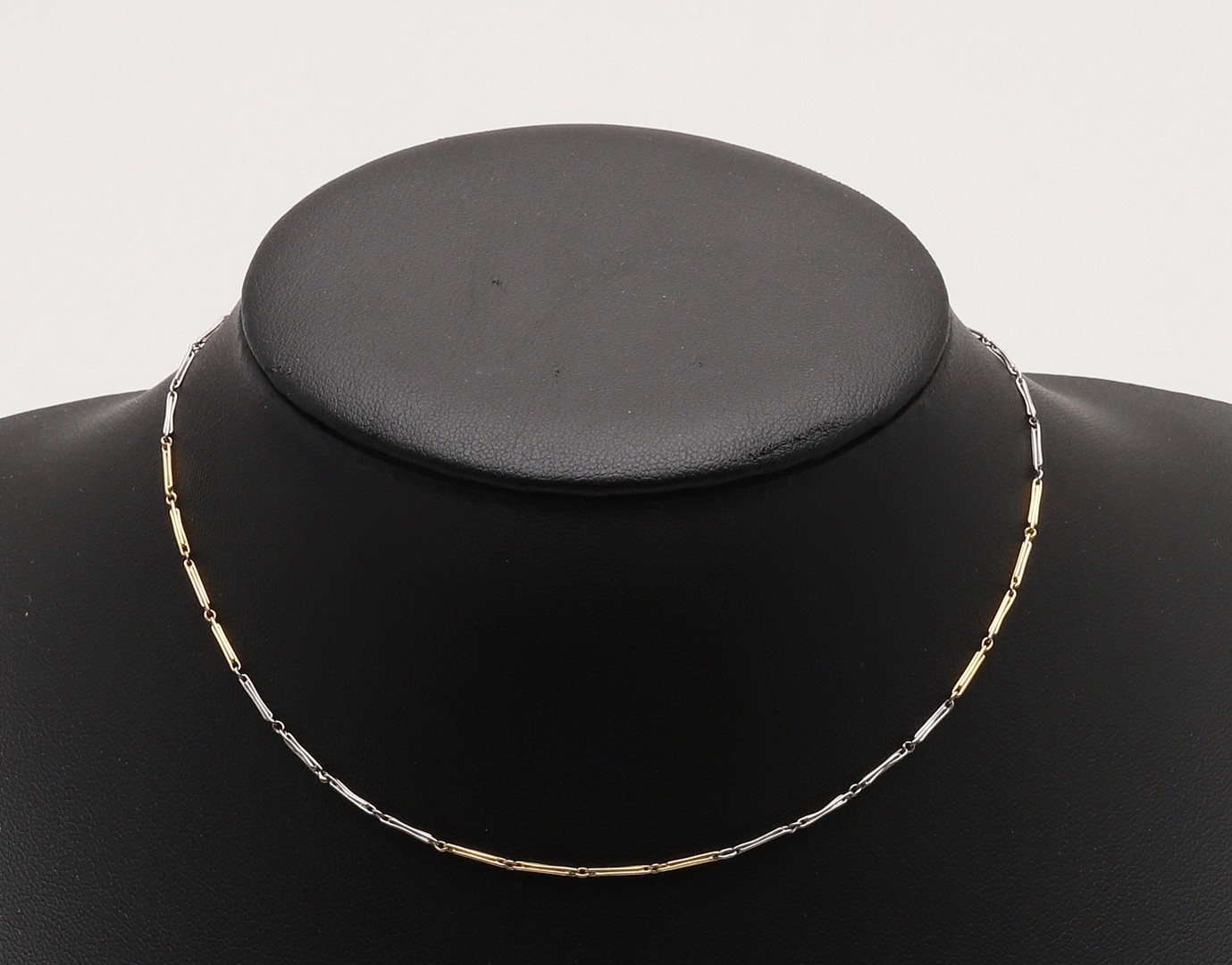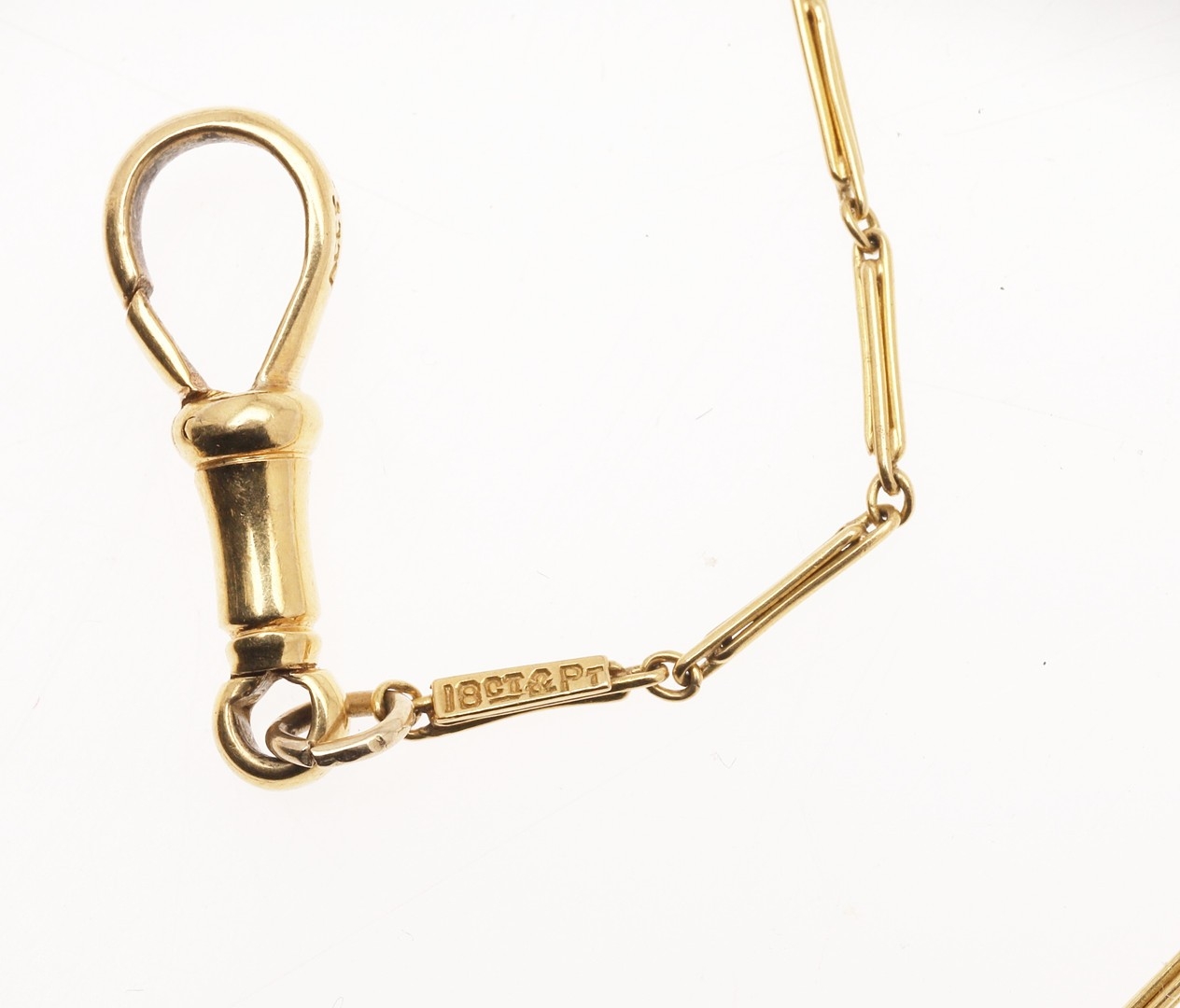 AN 18CT GOLD AND PLATINUM WATCH CHAIN. with claw and bolt clasp, 32cm long, 5.1 grams.