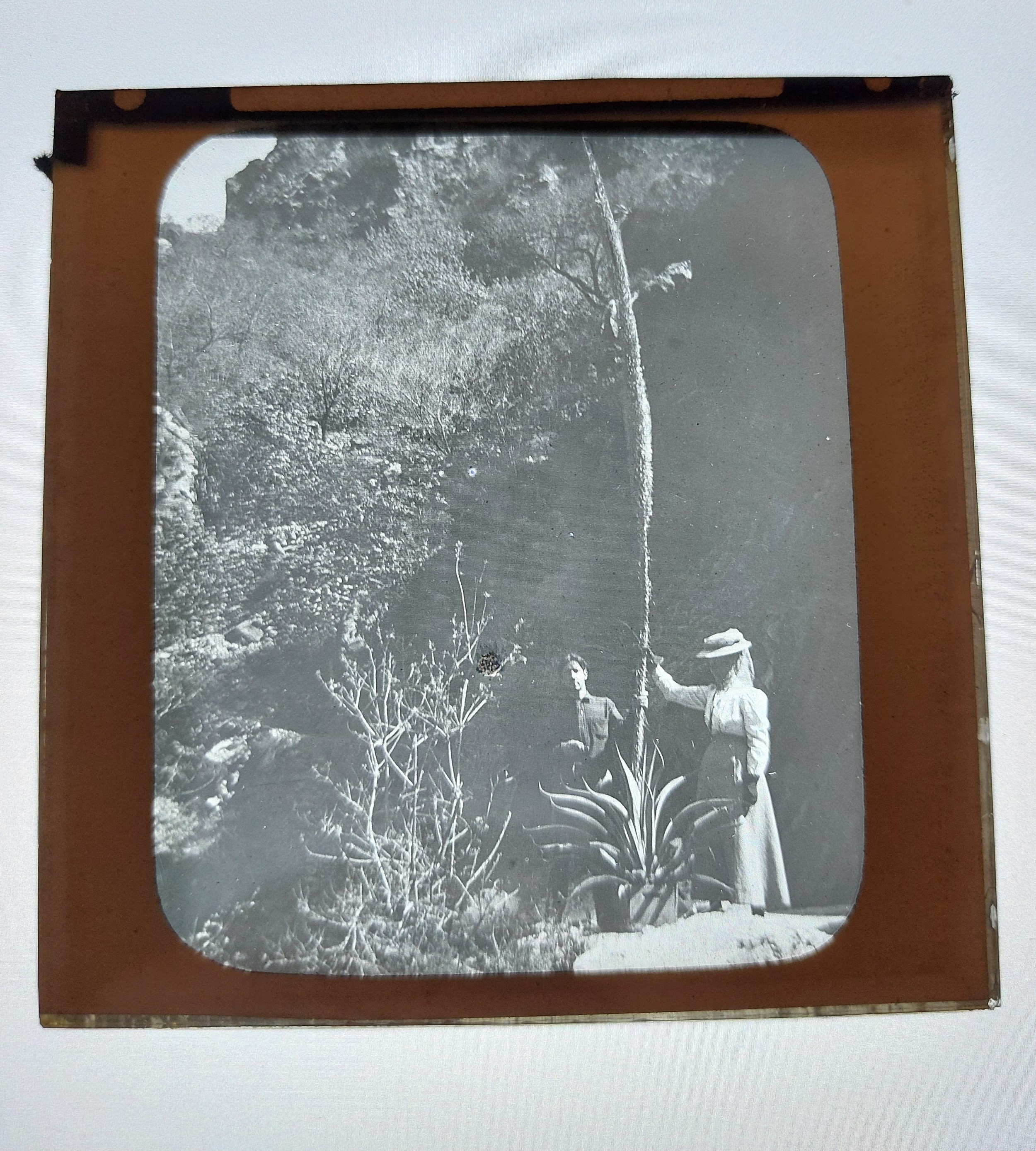 The magic lantern slides in this collection are mostly labelled in her handwriting and a comparable is offered within this National Geographic article;