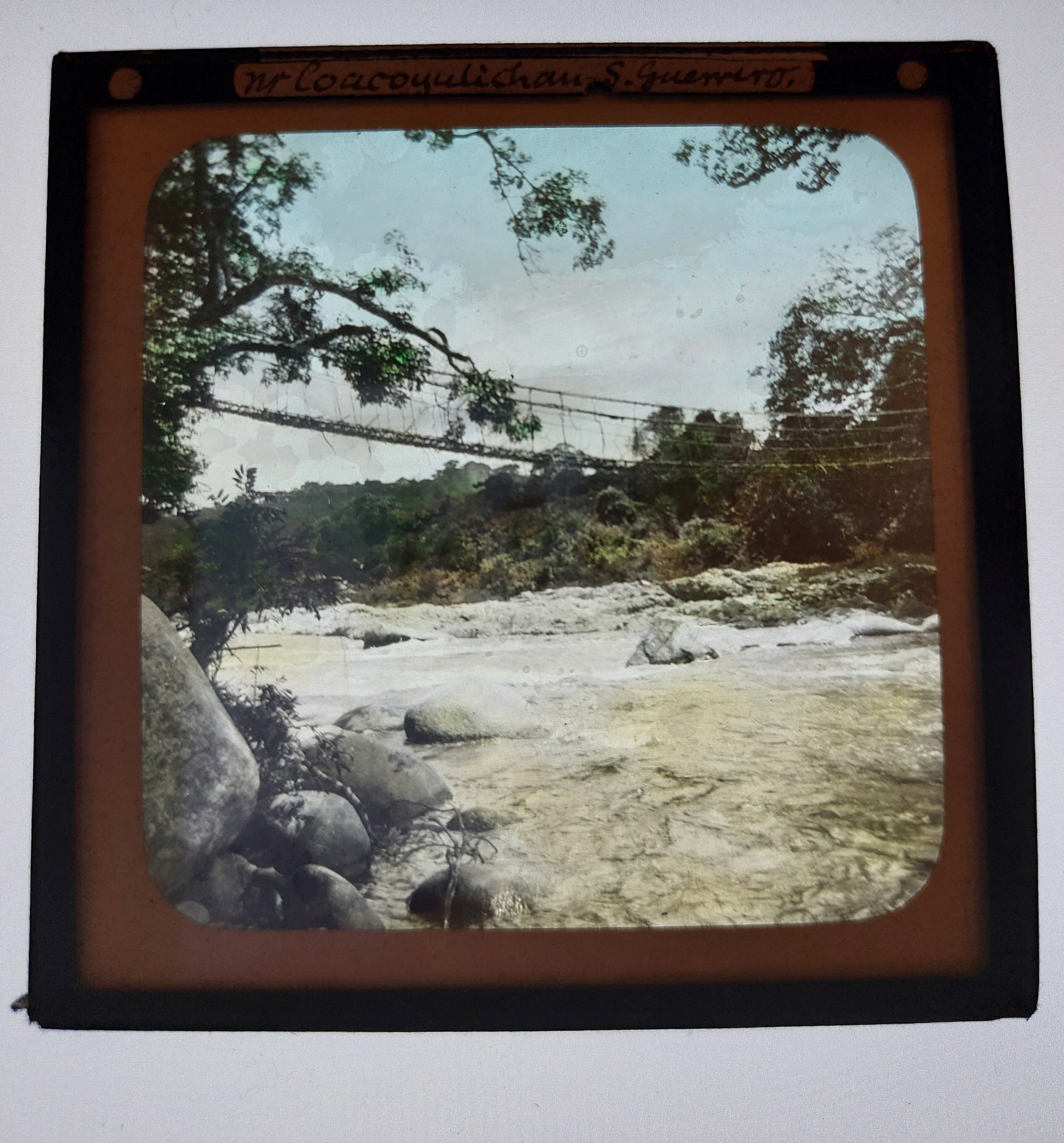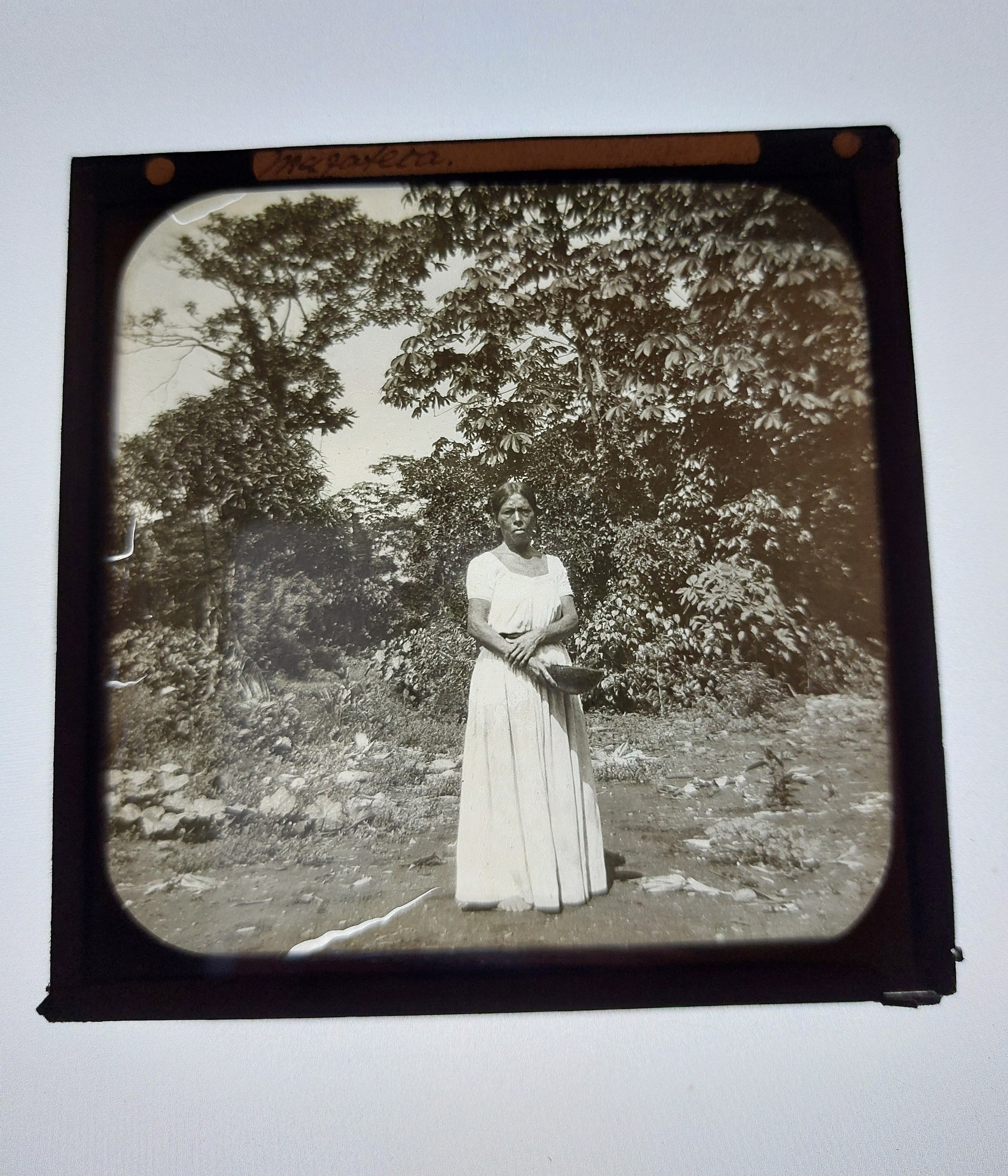Harriet Chalmers Adams was an American explorer, journalist and photographer who broke down gender barriers and norms surrounding exploration. Her first major expedition was a 40,000 mile journey across South America. These particular slides are likely to have been taken on this journey and were most probably used during lectures by Chalmers Adams. The majority of her photographic collection resides in the National Geographic archives.