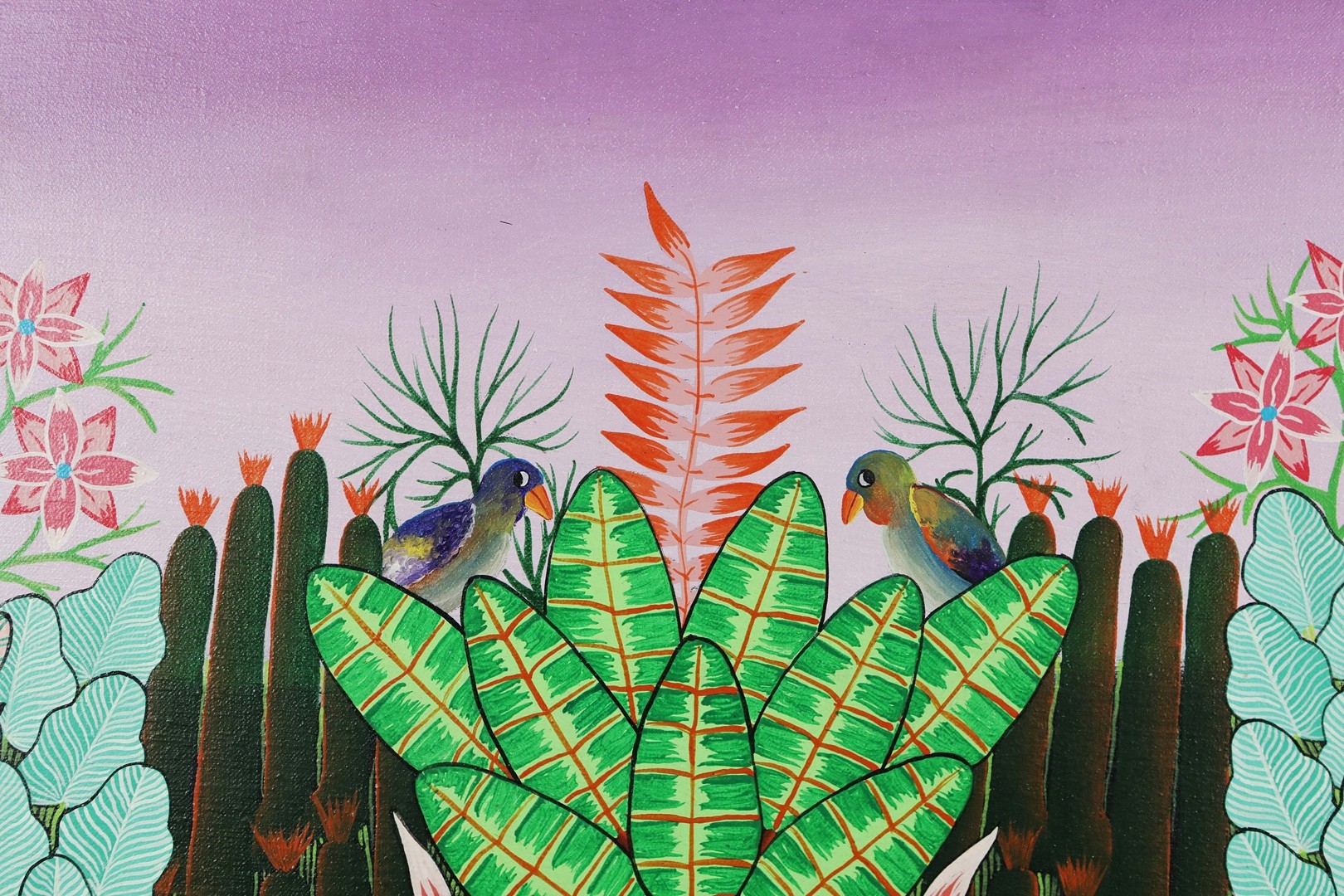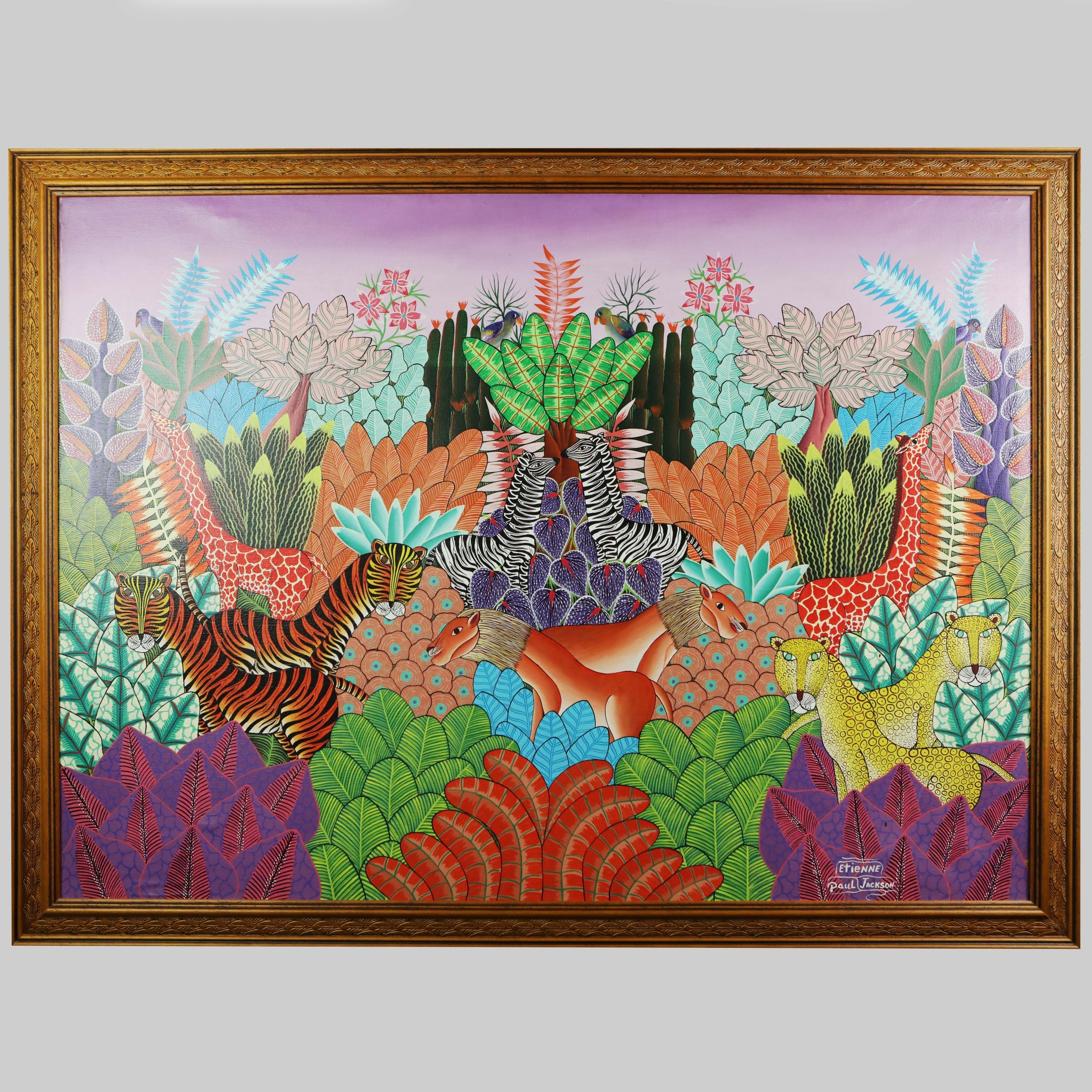 ETIENNE PAUL JACKSON (HAITIAN SCHOOL). JUNGLE LANDSCAPE. oil on canvas, 75cm x 99cm, framed.