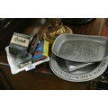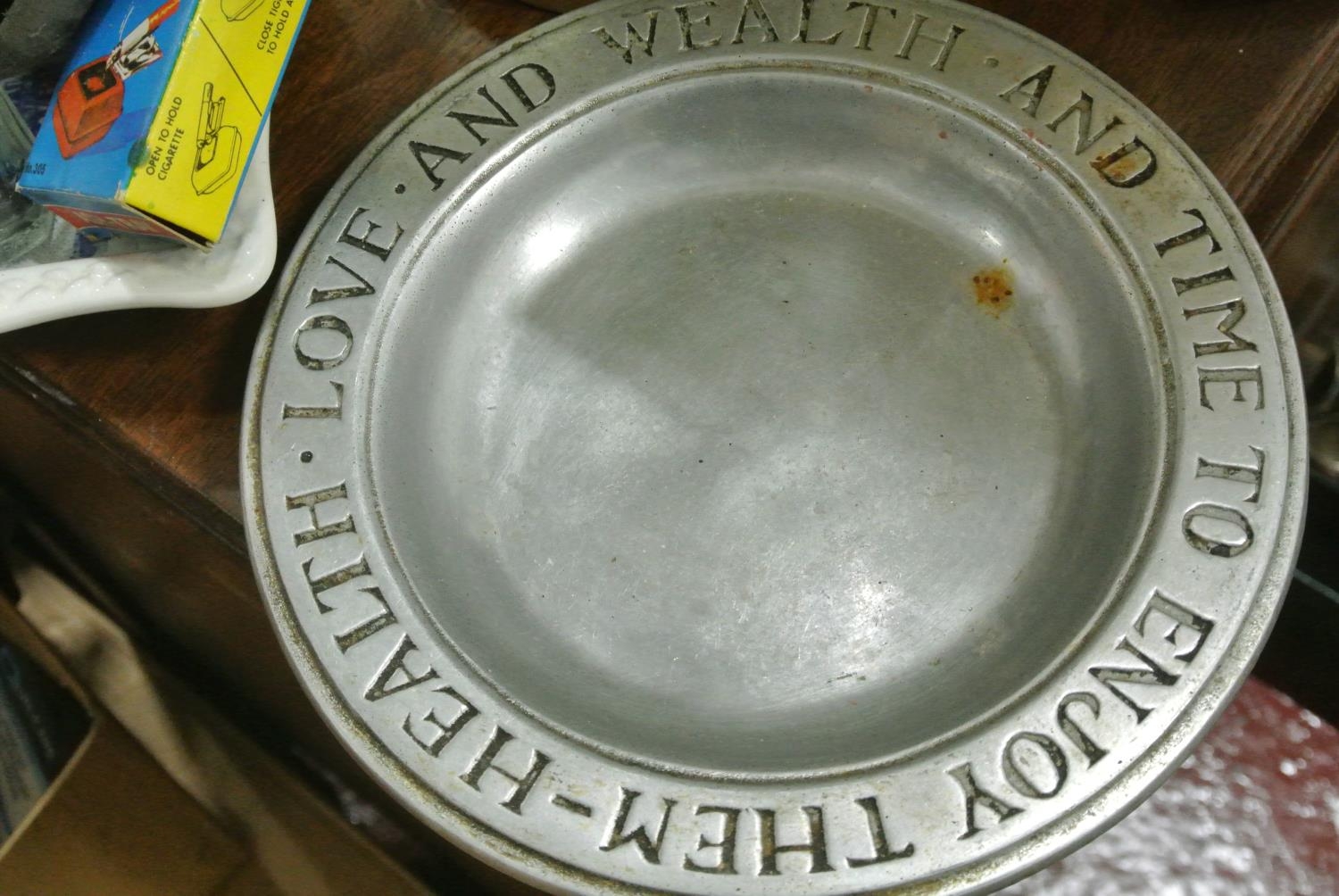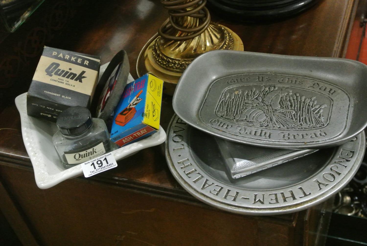 A Small Lot of Collectibles to include Two Pewter Plates stamped Wilton Columbia USA and other Ink Bottles