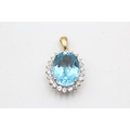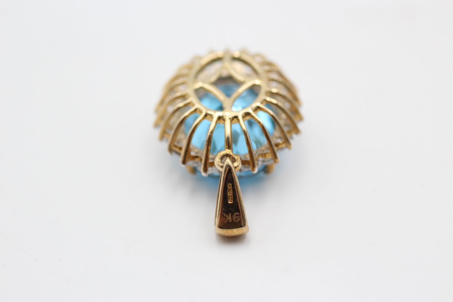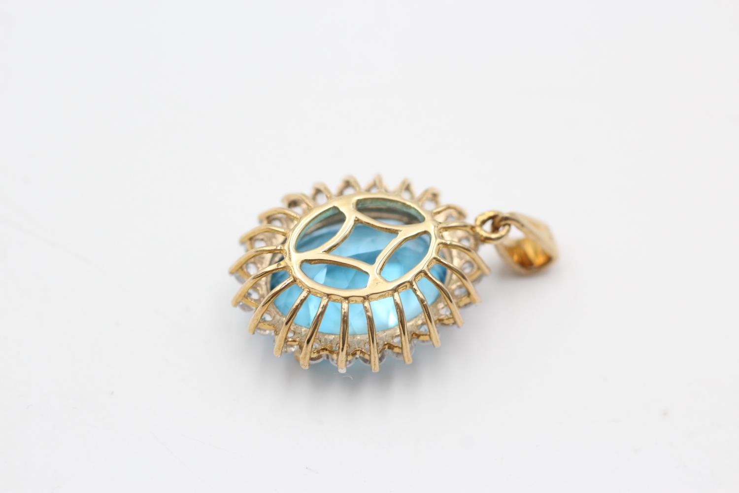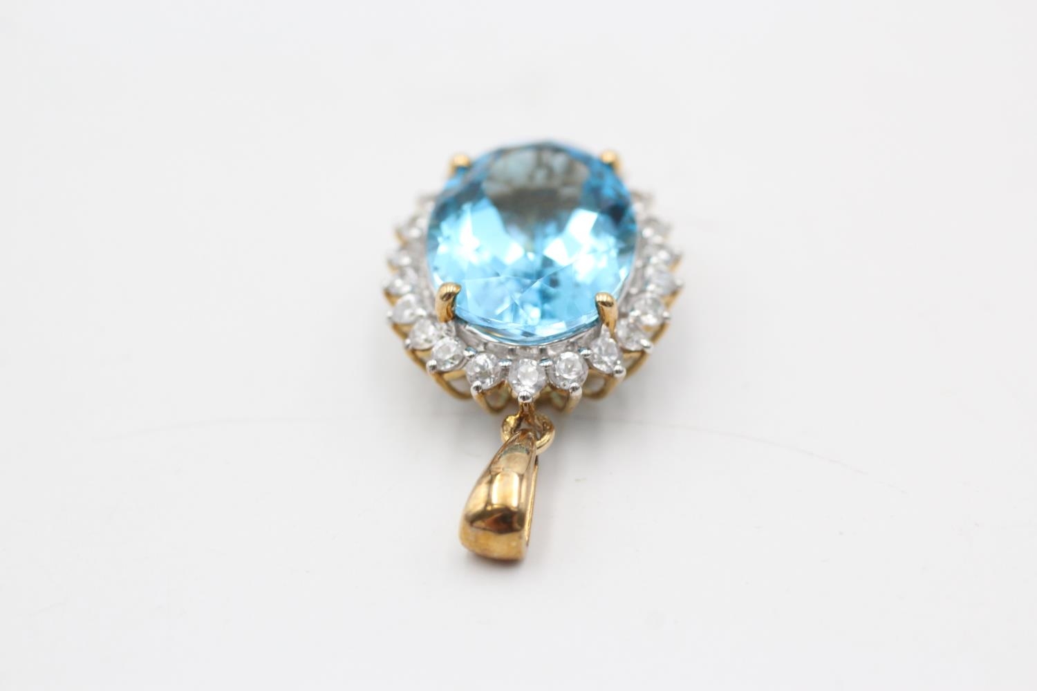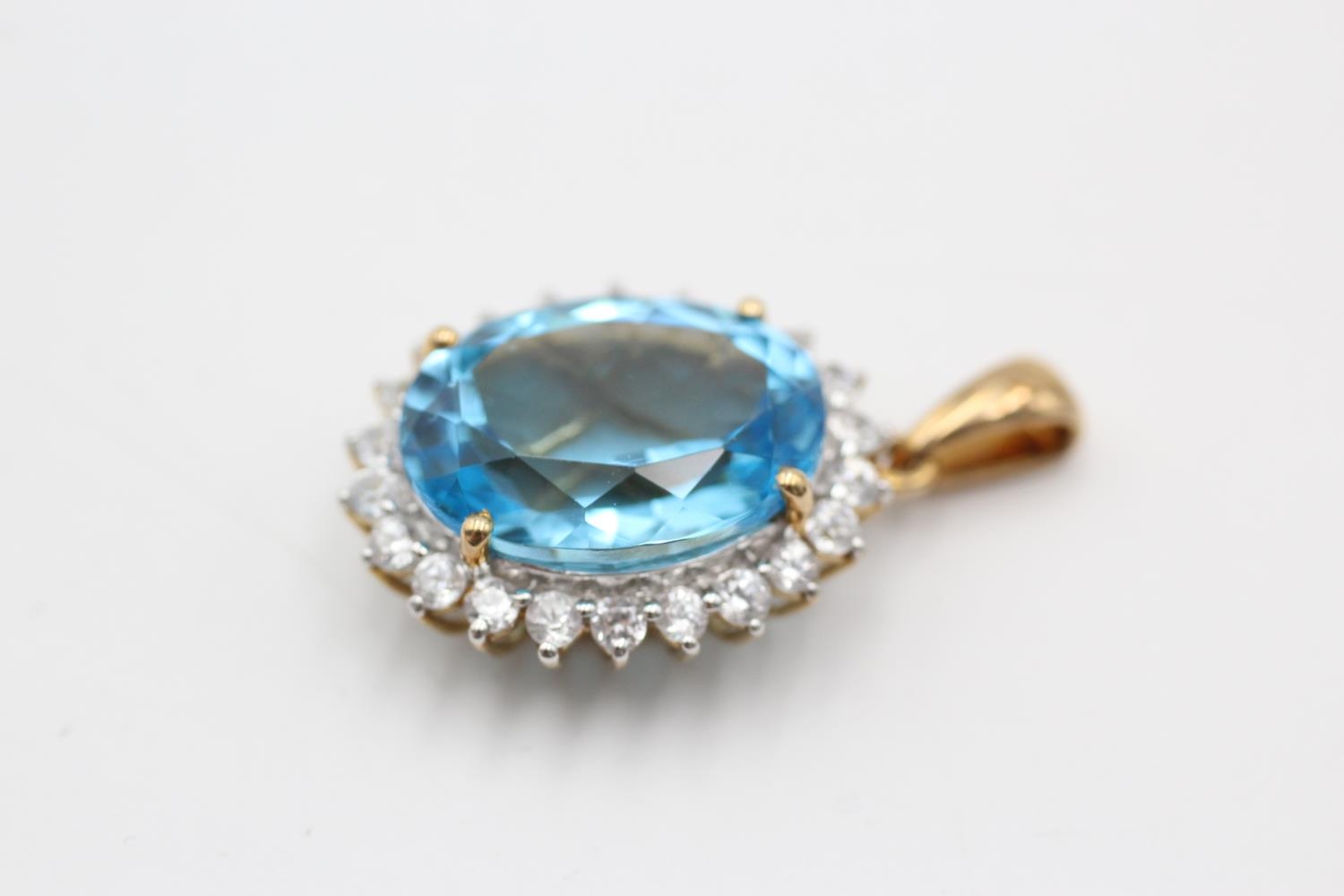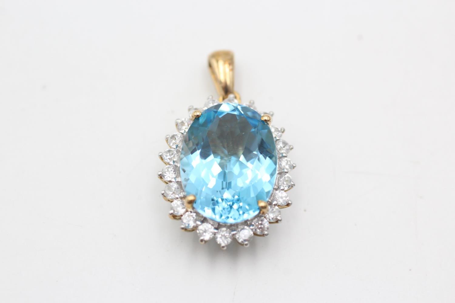 A 9ct gold blue topaz and clear gemstone halo pendant - approx. gross weight 4.7 grams