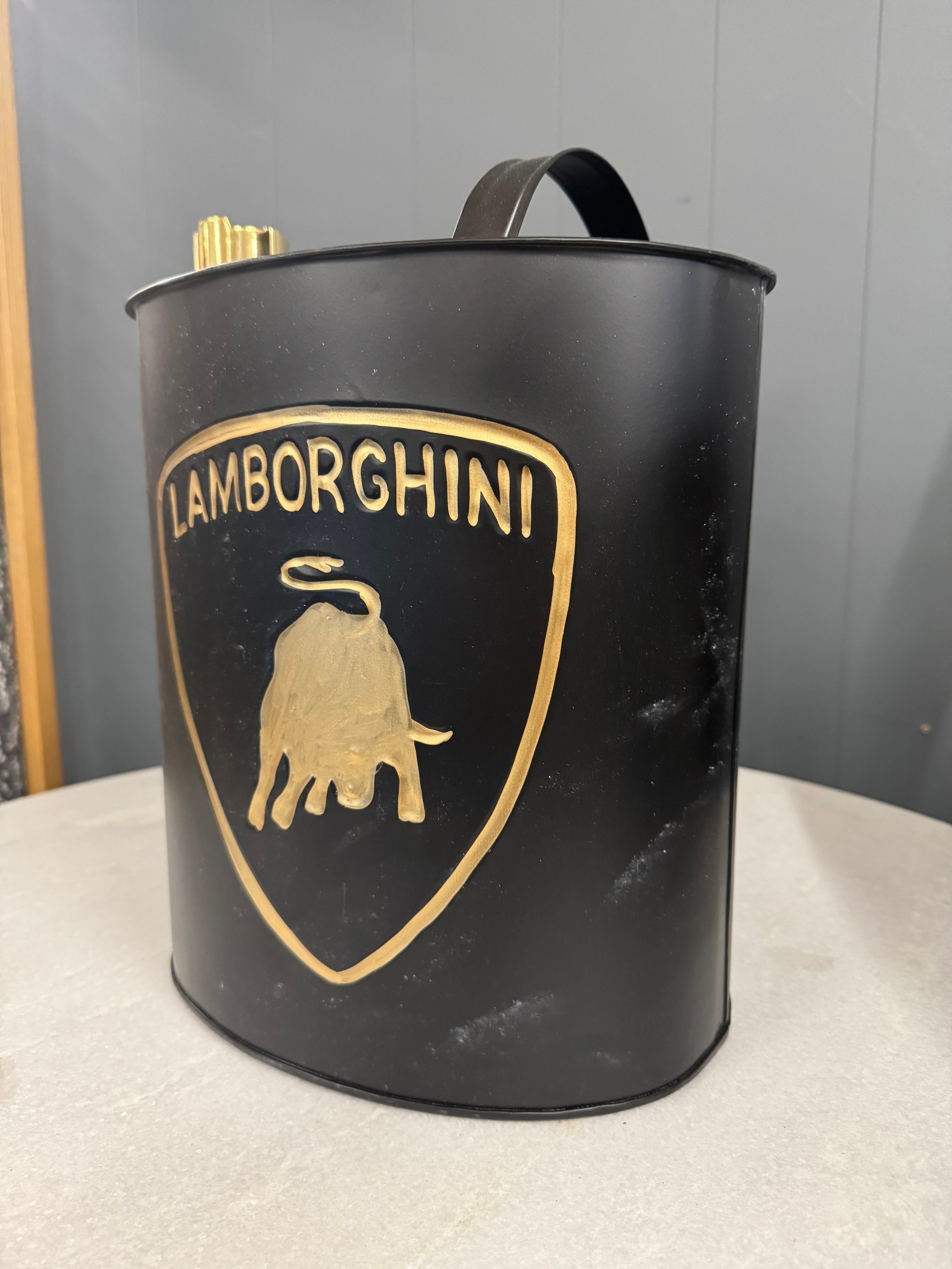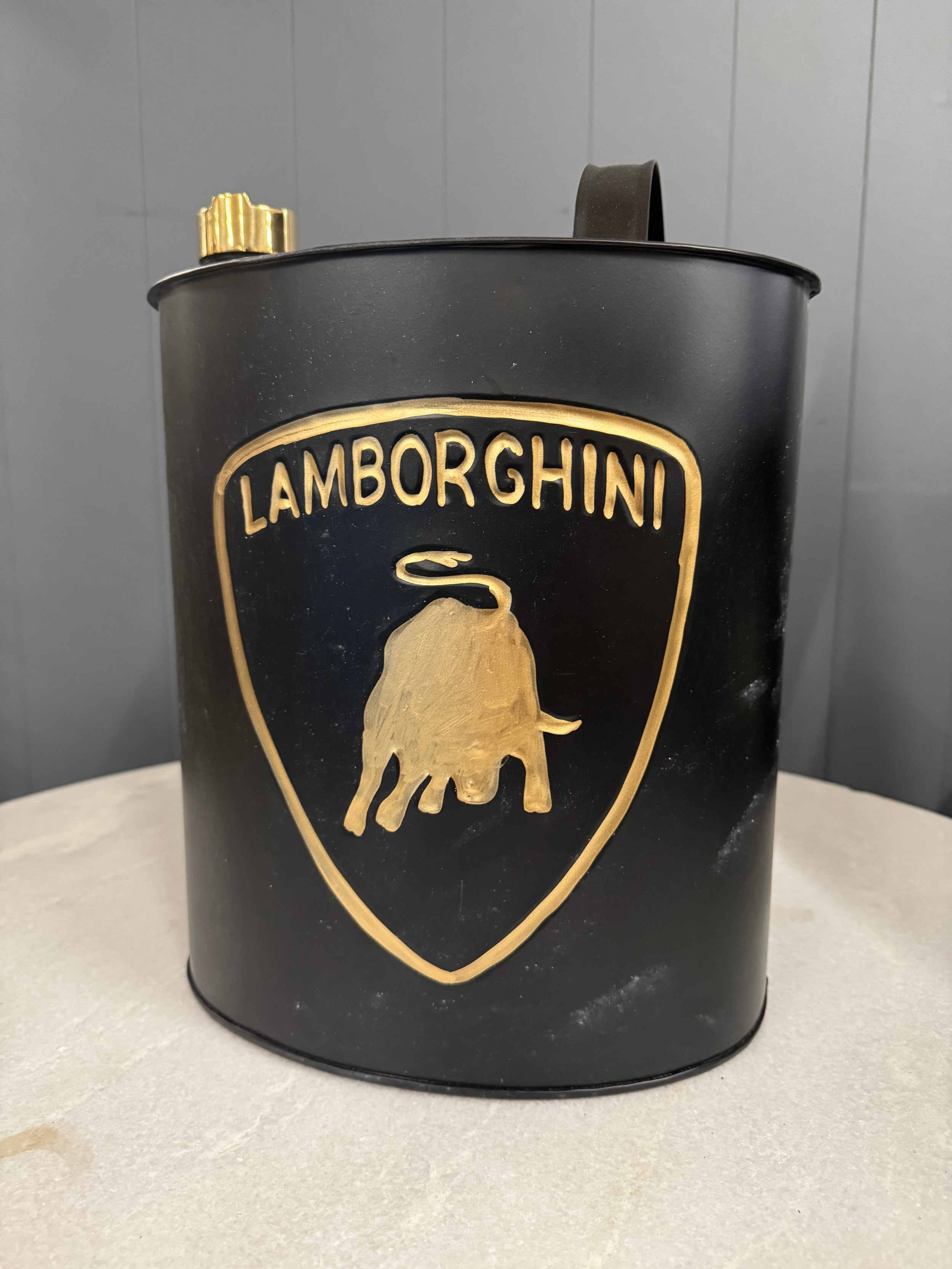 An oil can bearing the Lamborghini inscription