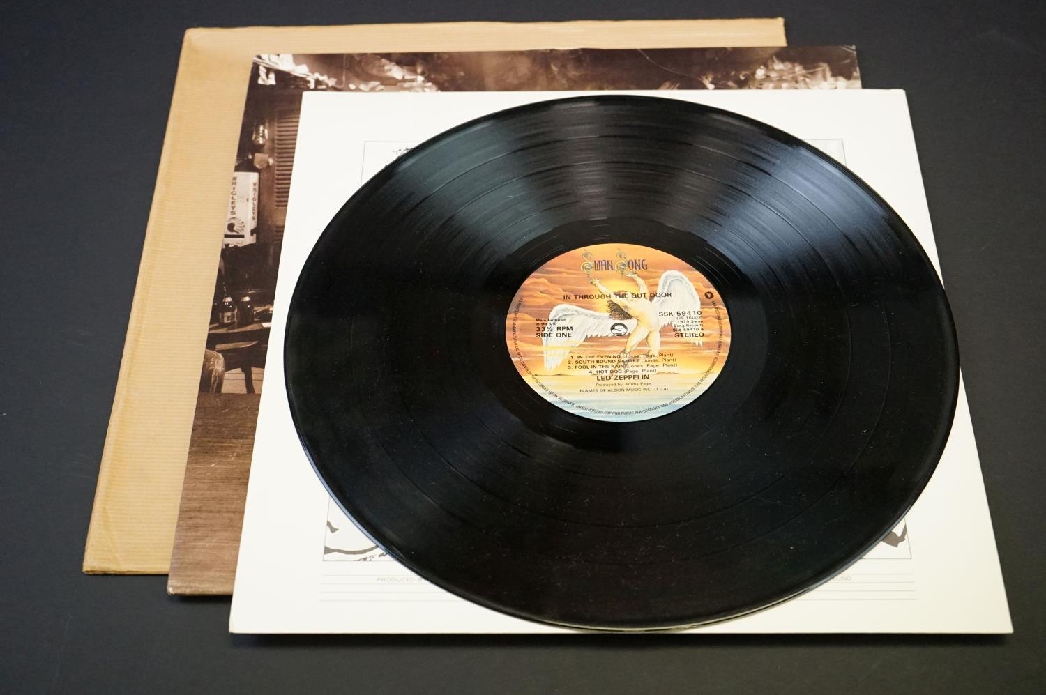 Vinyl – 4 variations of Led Zeppelin In Through The Out Door to include Variation A, EX / VG++, Brown paper sleeve VG++ (No tears). Variation A, EX / VG++, Printed Inner EX, Brown paper sleeve VG++ (No tears), Variation C, VG / VG, Printed Inner EX, Brown paper sleeve VG+ (No tears), Variation E, VG+ / EX, Printed Inner EX, Brown paper sleeve VG++ (No tears), Variation F, EX / VG++, Printed Inner EX, Brown paper sleeve VG++ (No tears).